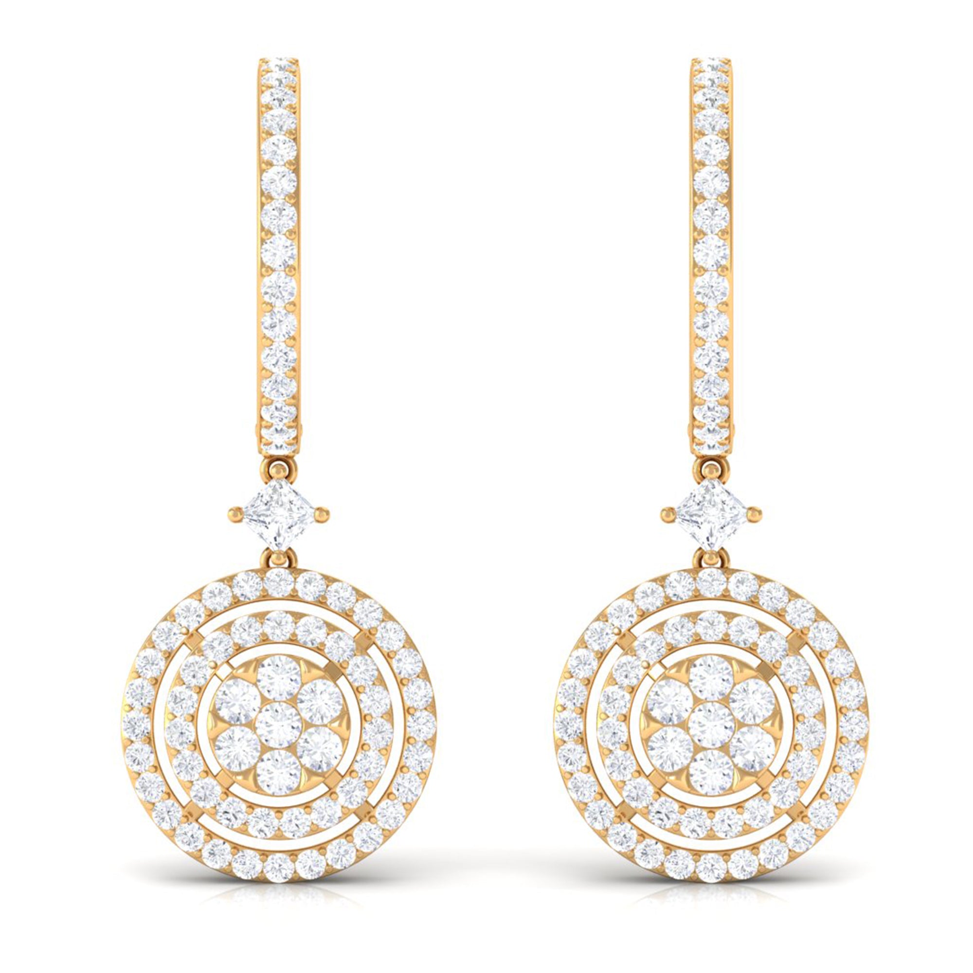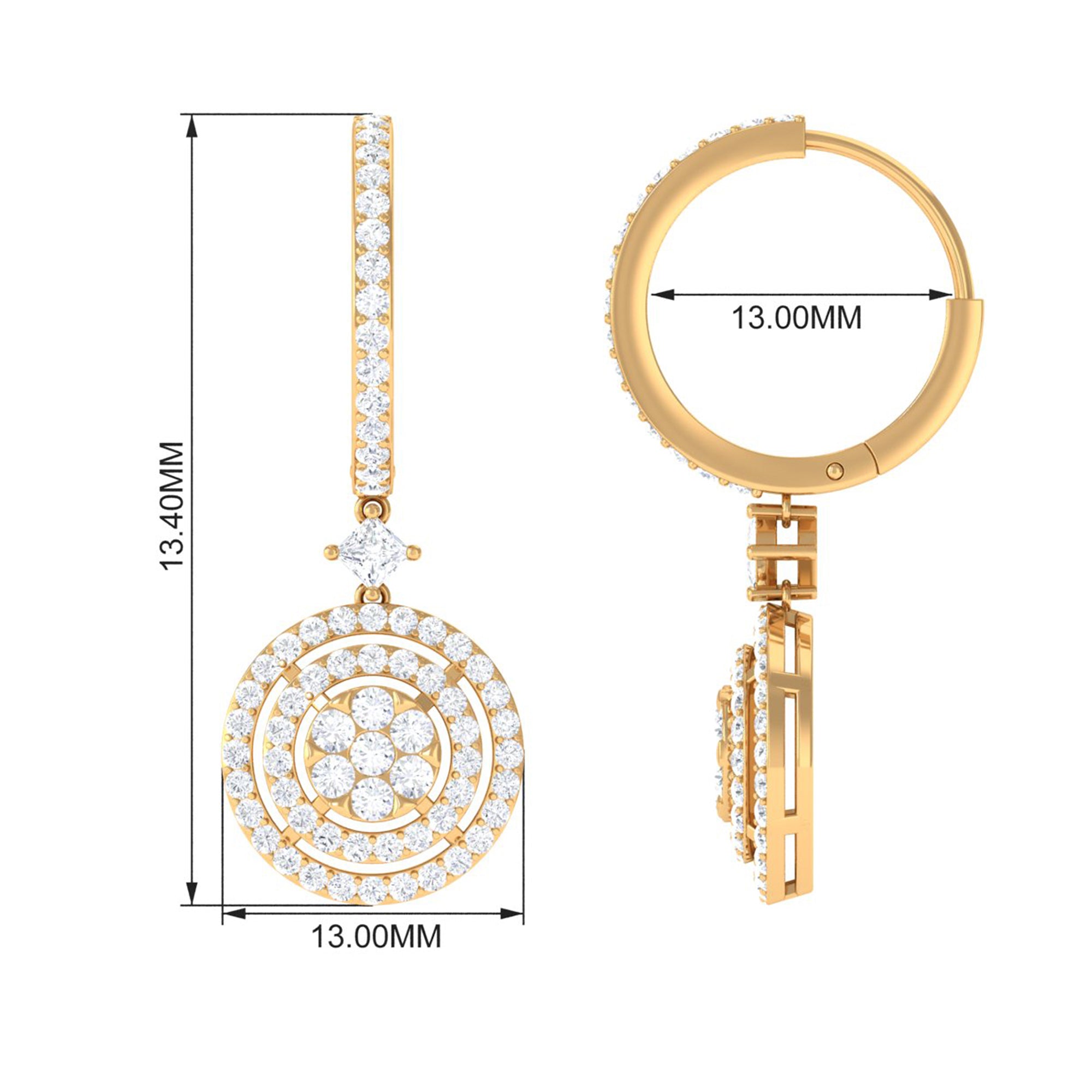Update je avondlooks met deze bruidsoorbellen. Elke druppel is voorzien van lichtgevende Princess en Round Cut Moissanites, wat de charme van de Hoop Drop Earrings versterkt. Zet een elegante toon op uw evenementen met deze Moissanite-druppeloorbellen die comfortabel vastzitten met een scharnierende sluiting aan de achterkant. Geef dit prachtige paar oorringen cadeau aan uw wederhelft en laat haar schitteren op al haar evenementen.