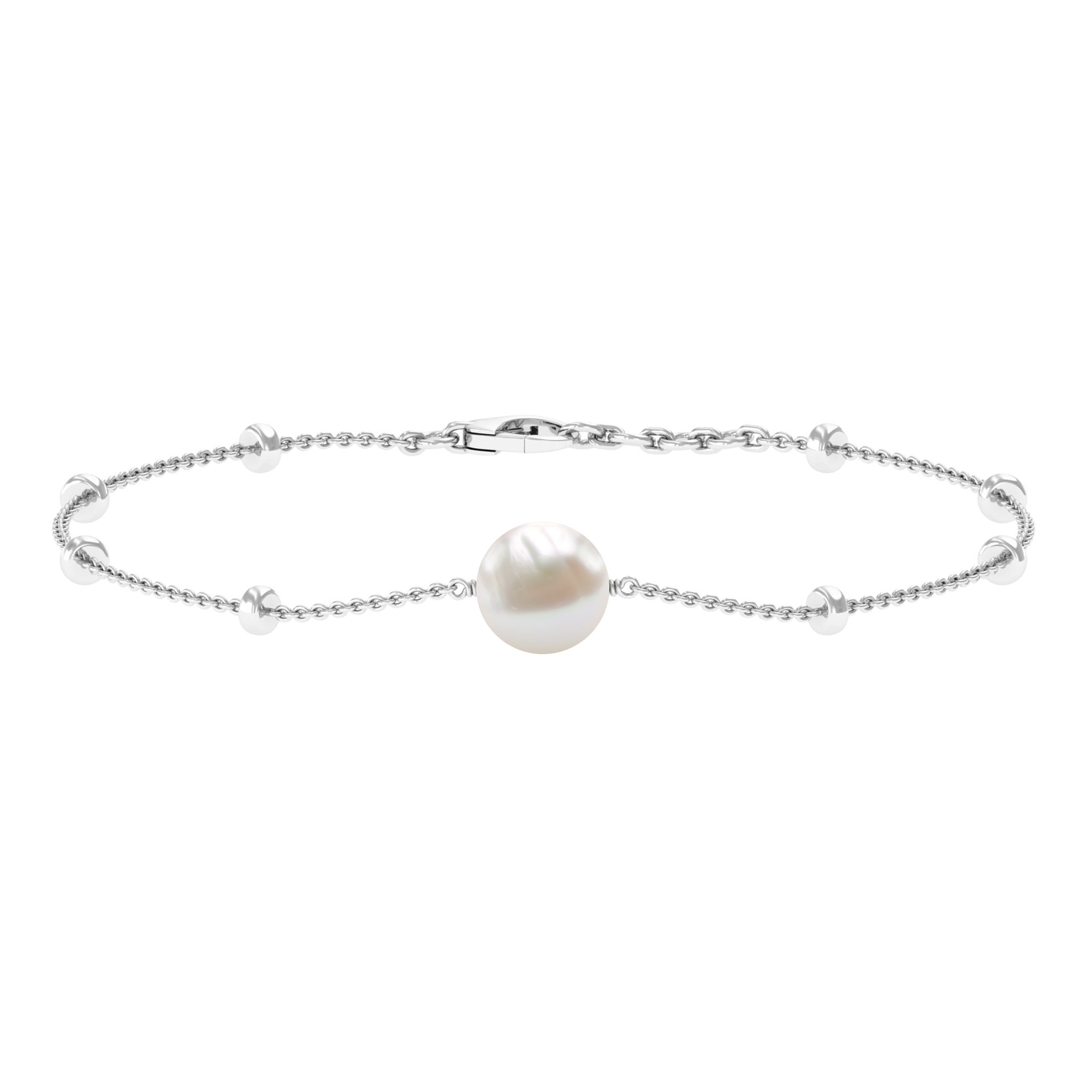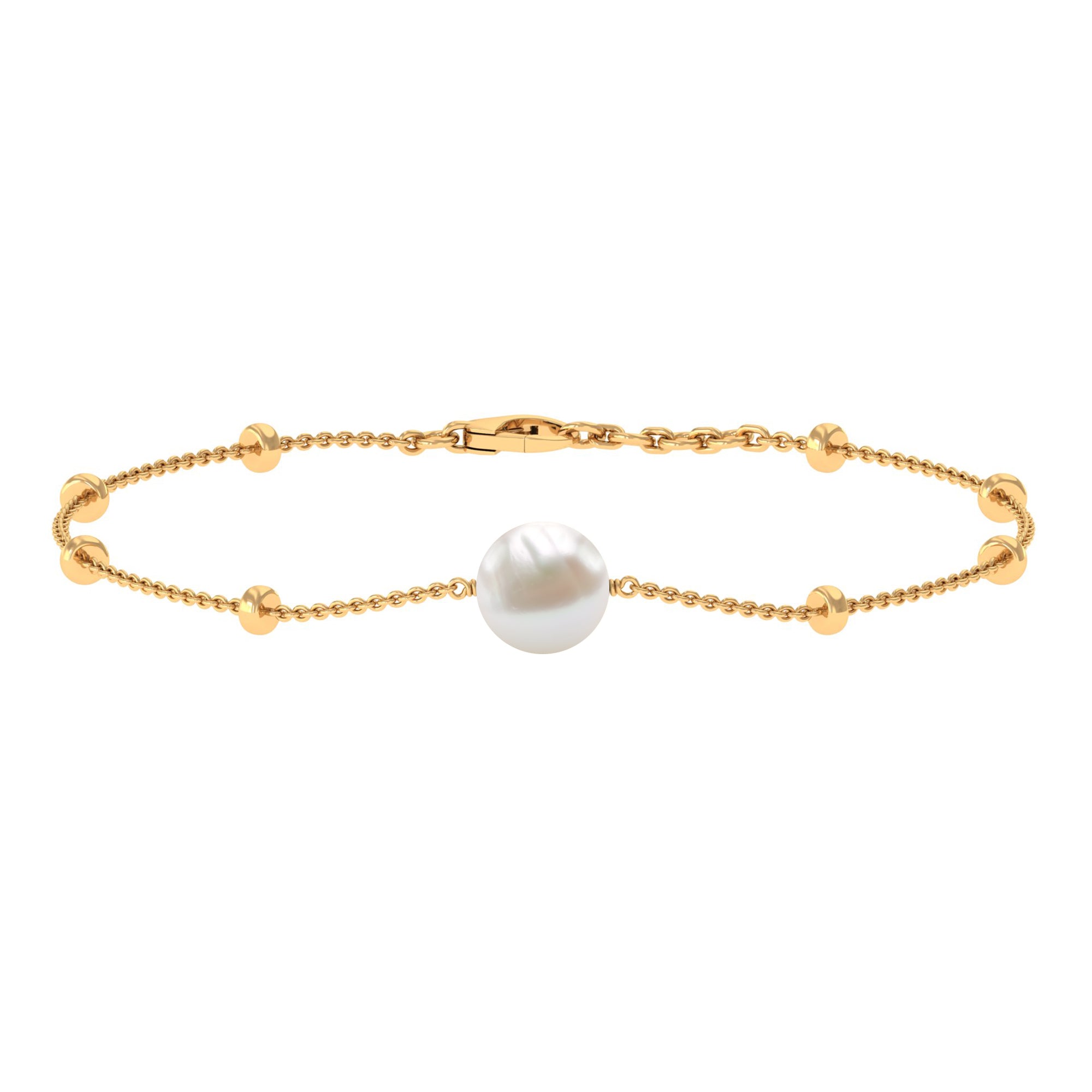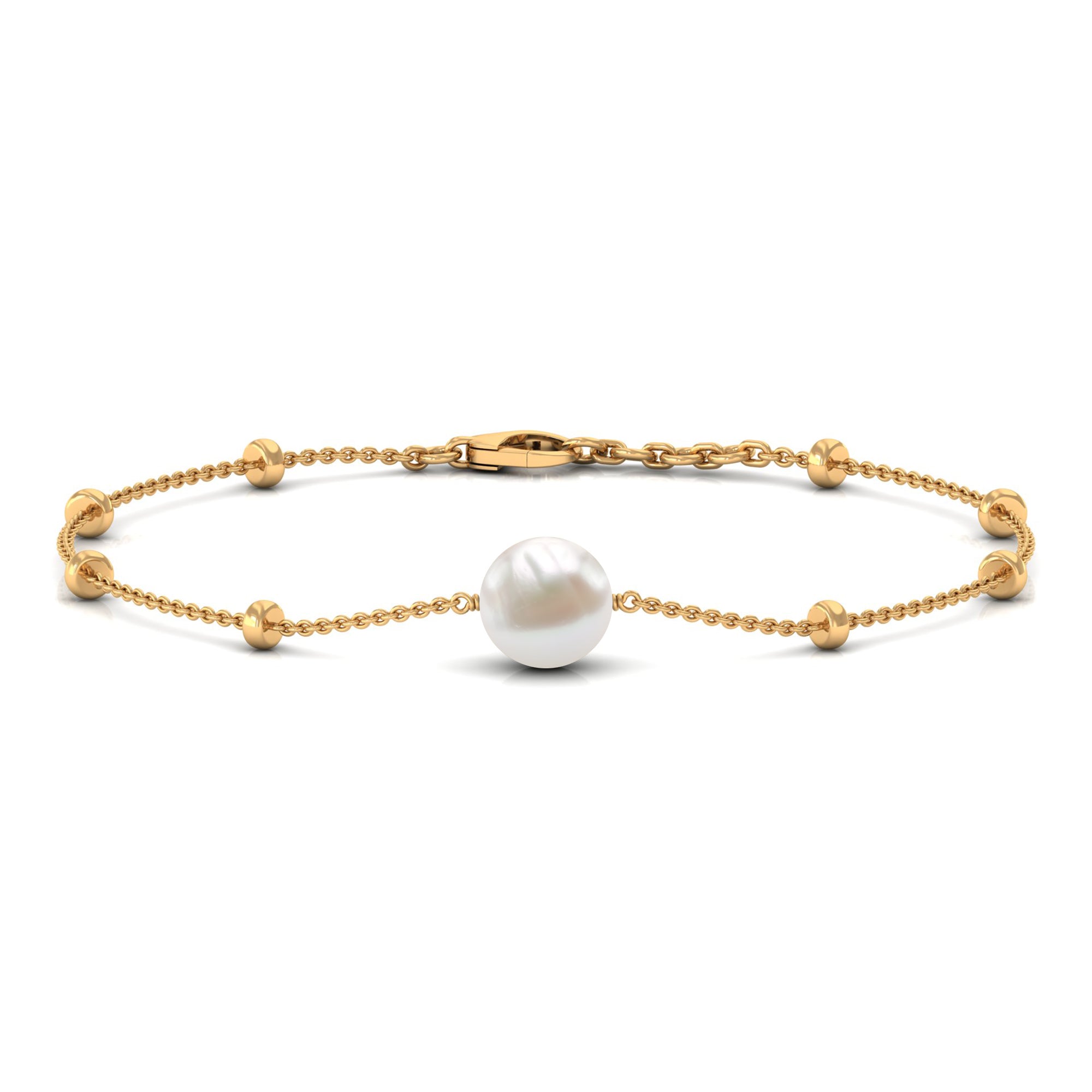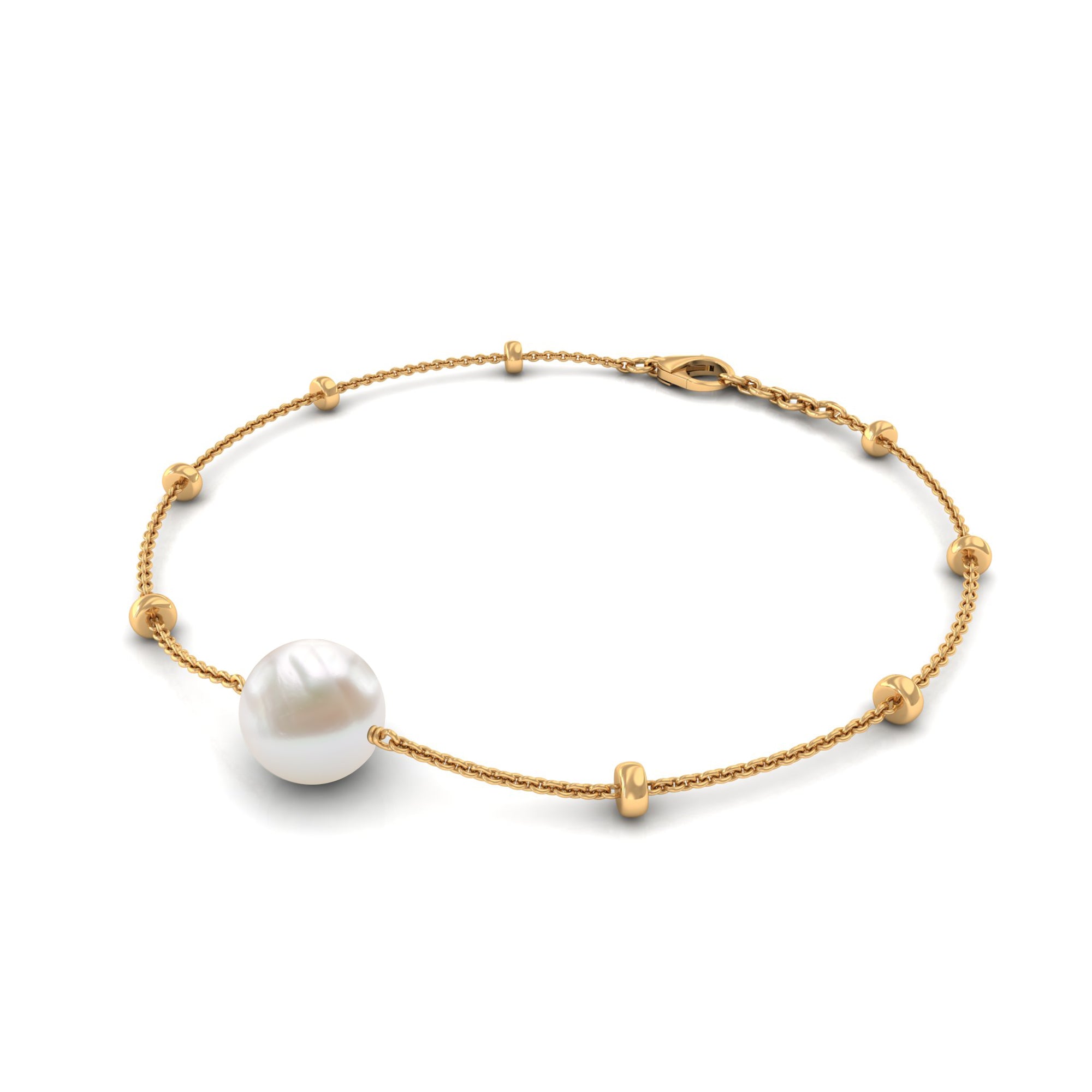 Solitaire zoetwaterparel kettingarmband met goudkleurige kralen