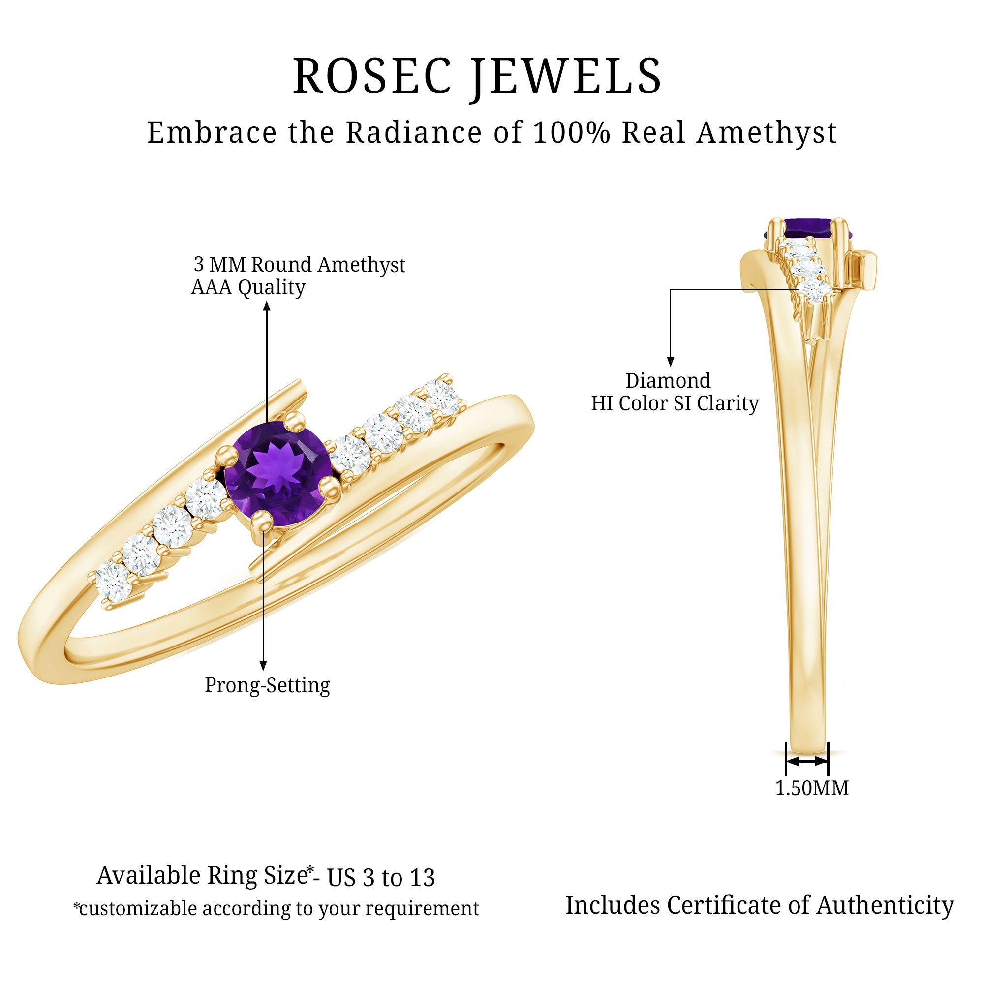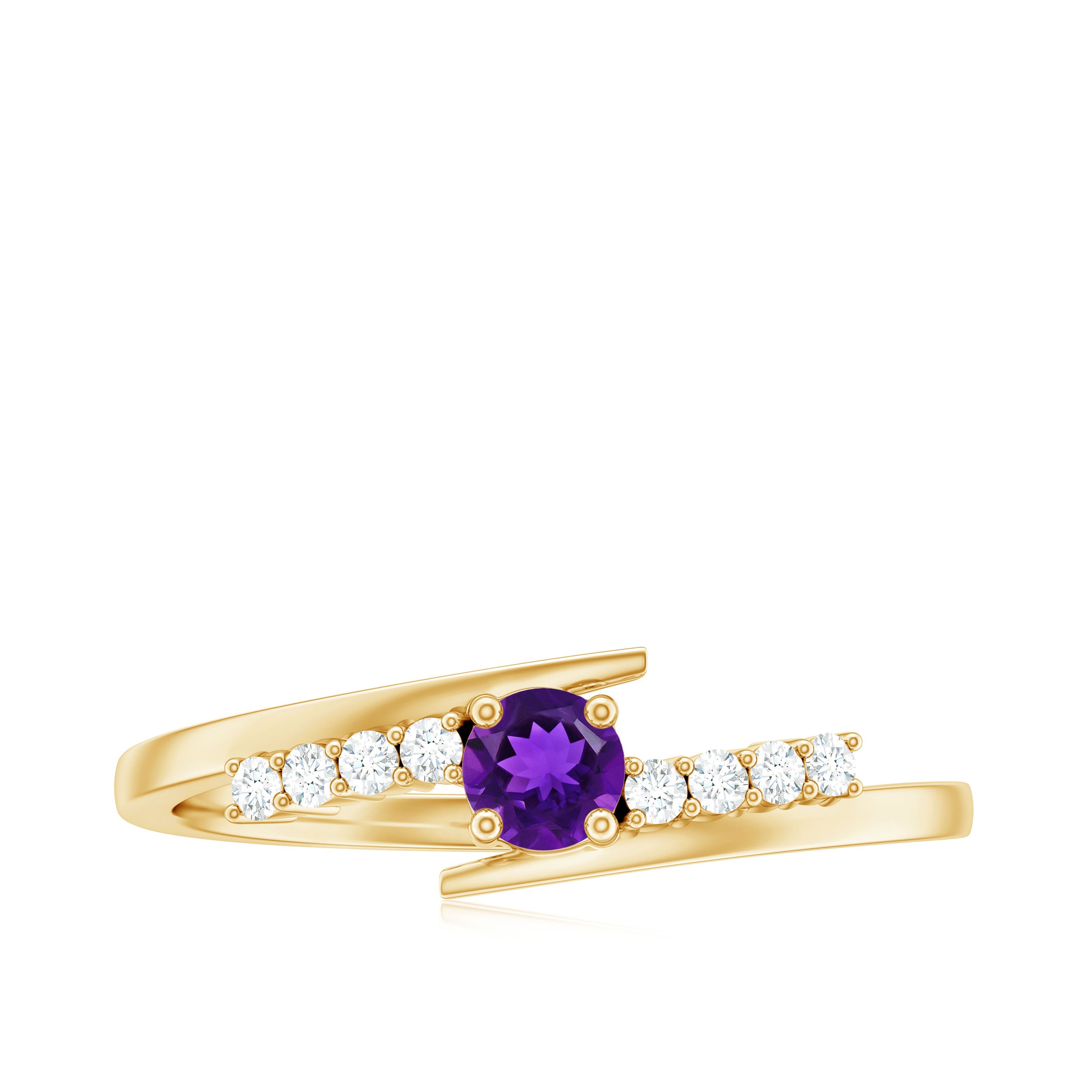 Upgrade your look with this gorgeous Minimal Engagement Ring. A Round Shape Amethyst gemstone sits at the center in a Prong Setting, surrounded by a Diamond Bypass Shank for added sparkle. This Engagement Ring is sure to make a statement with its simple yet elegant design.