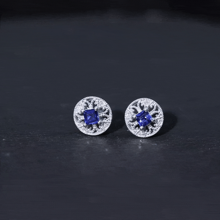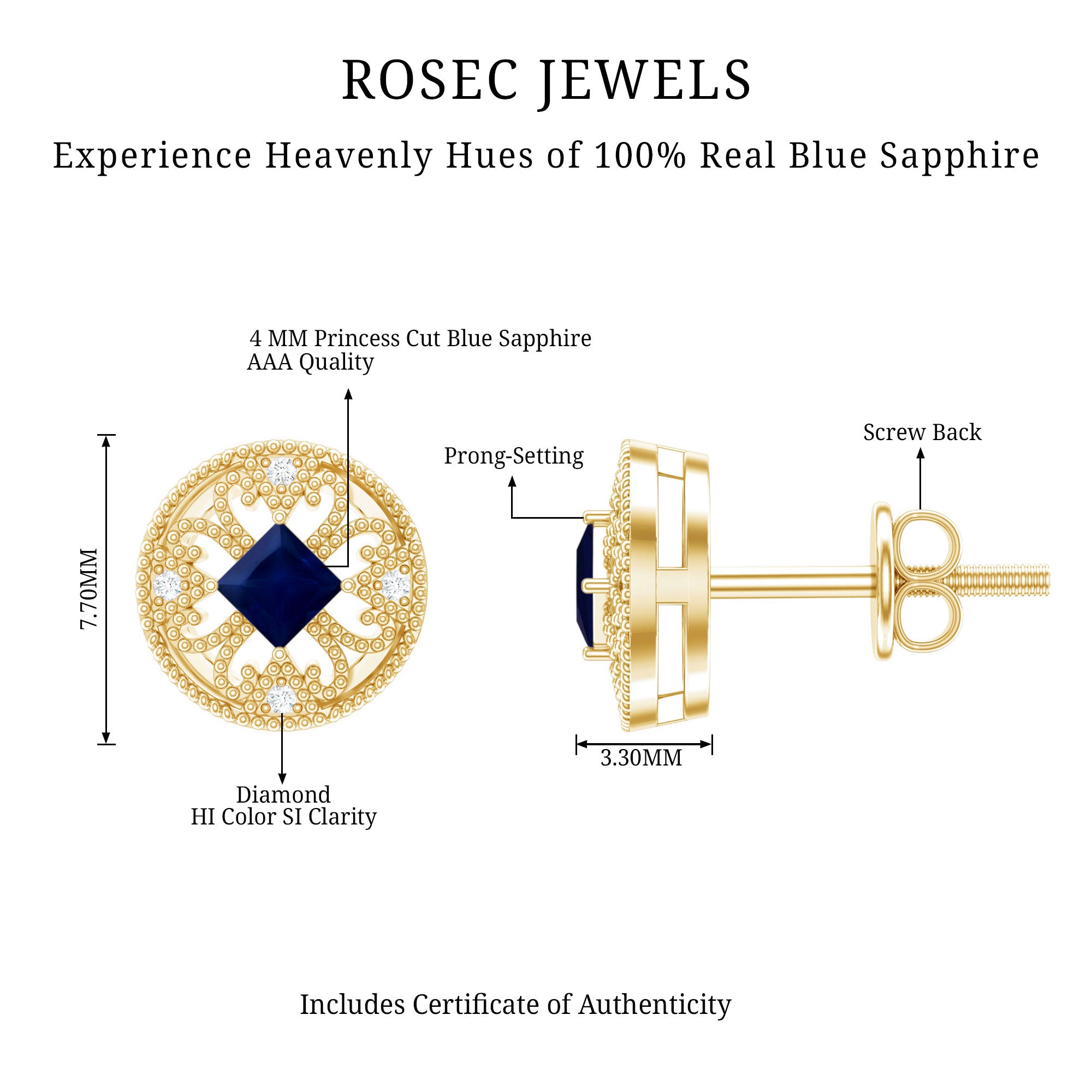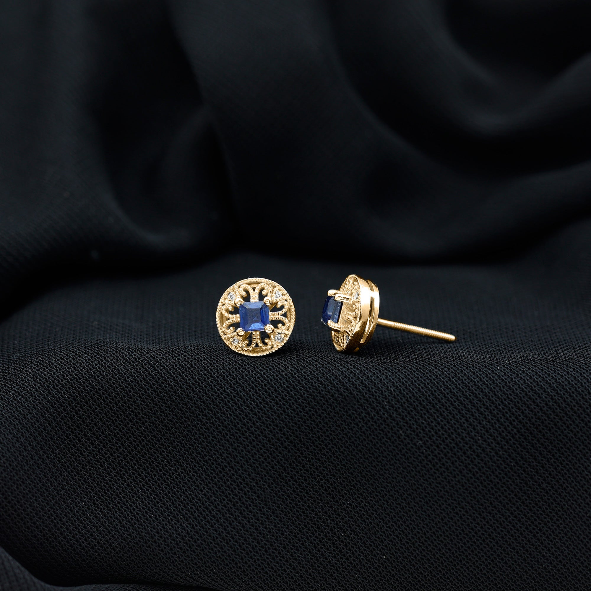 Make a style statement with the Antique Beaded Stud Earring. Featuring a dazzling Princess Cut Blue Sapphire and Round Shape Diamond gemstones, this earring is a truly exceptional piece. The antique beading adds a touch of vintage charm, making this Blue Sapphire Stud Earring a one-of-a-kind accessory. Perfect for any woman who loves to stand out, this earring is sure to become a cherished part of her jewelry collection.