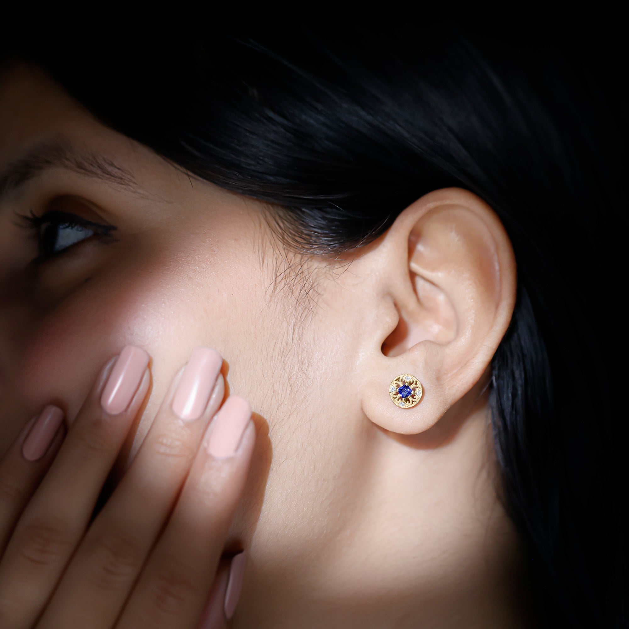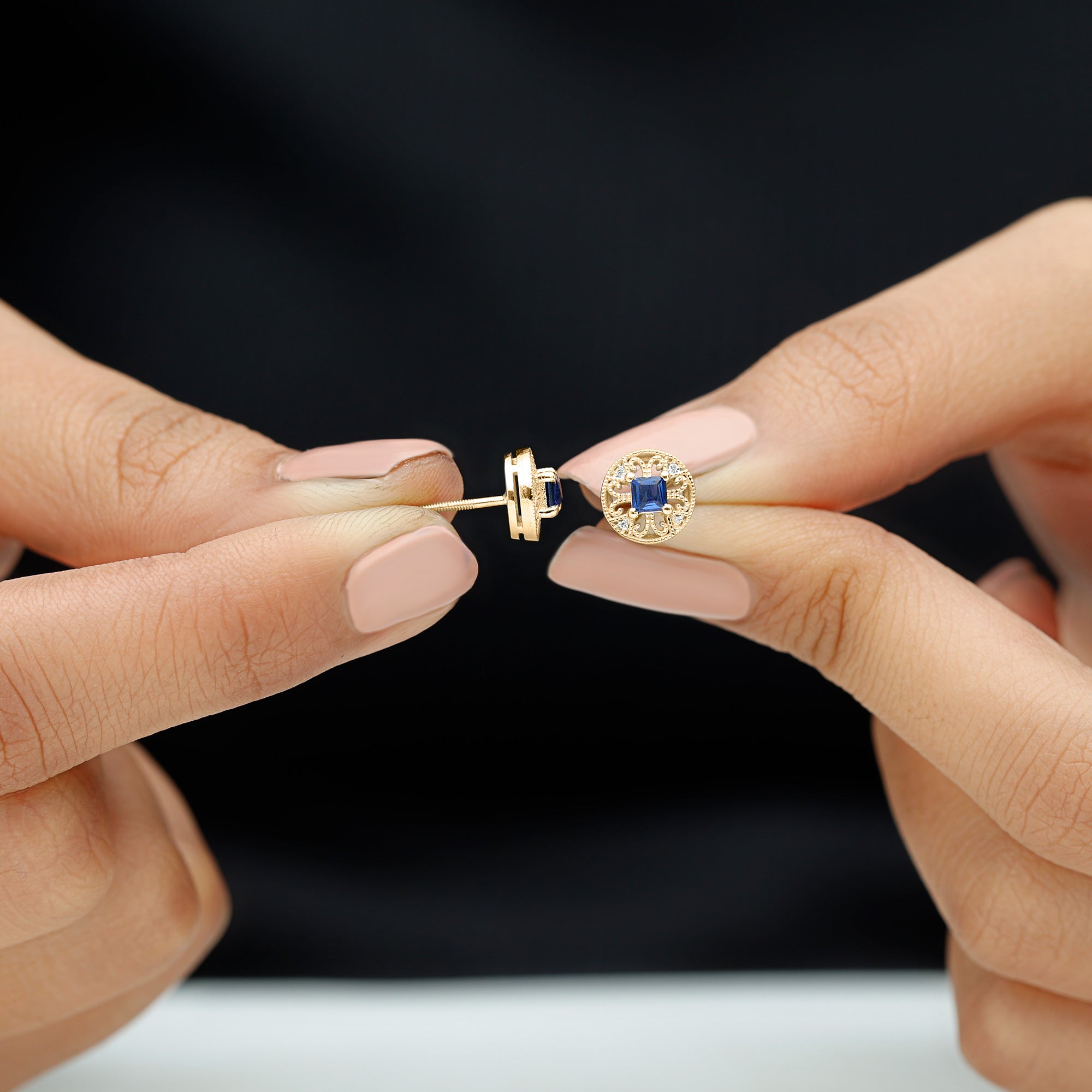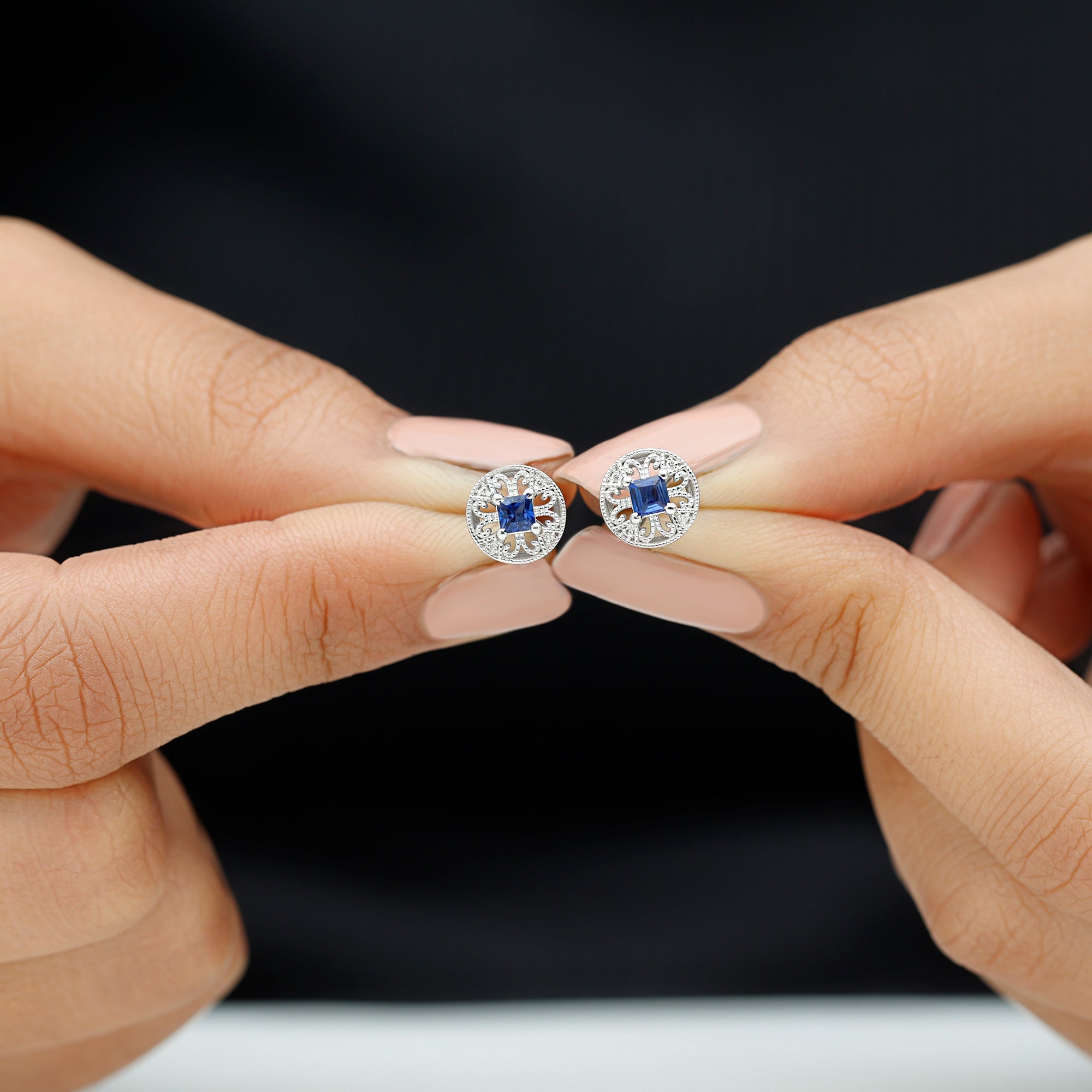 0.25 CT Antique Blue Sapphire and Diamond Beaded Stud Earrings