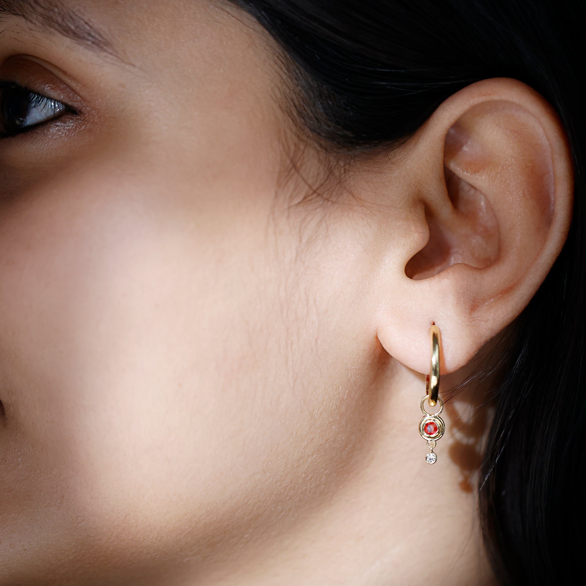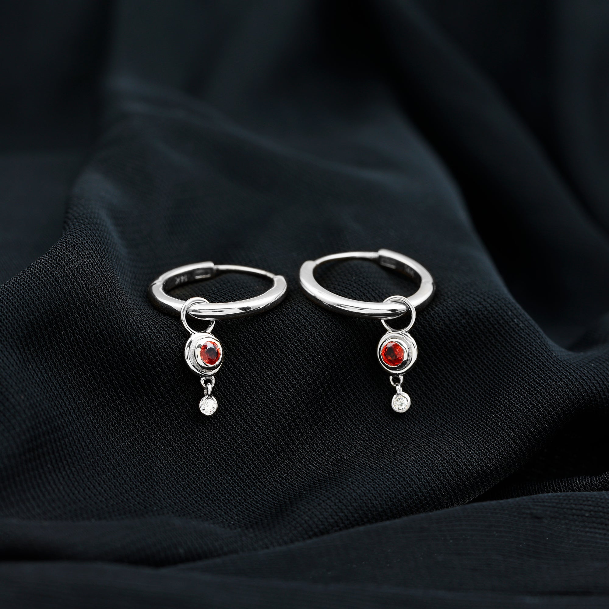 0.25 CT Bezel Set Orange Sapphire and Diamond Simple Hoop Drop Earrings