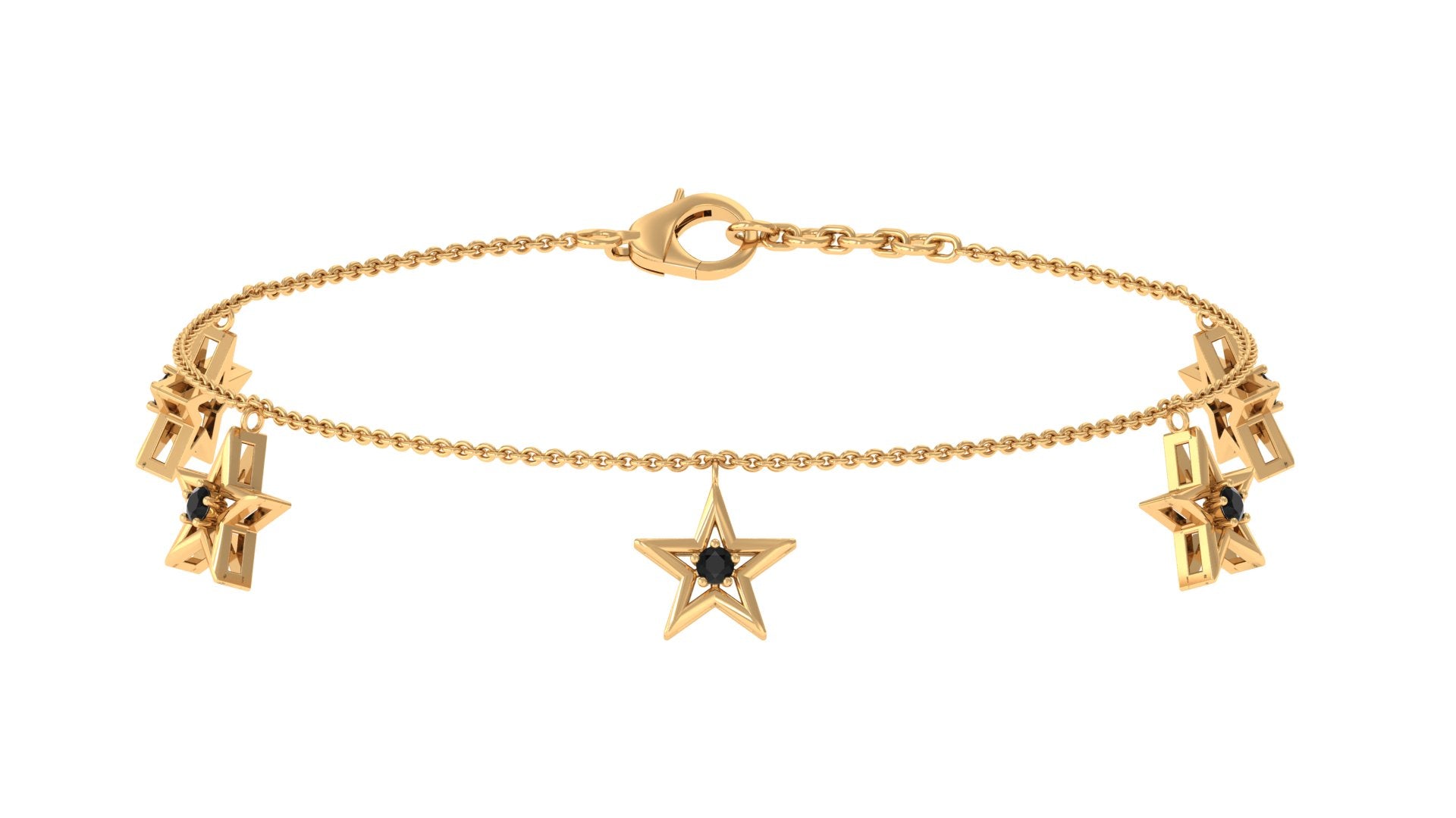 Illuminate your style with the mysterious allure of this Black Diamond Bracelet, where timeless sophistication meets celestial charm. Each star charm is adorned with brilliant round black diamond set in secure prongs, creating a captivating contrast that evokes the depth and mystery of the night sky. The mesmerizing sparkle of the black diamonds reflects light in the most enchanting way, embodying elegance and individuality. Designed for both comfort and durability, this Black Diamond Chain Bracelet features a delicate yet resilient construction that drapes gracefully around your wrist, offering a light and luxurious feel. The adjustable lobster clasp ensures a perfect fit, making it ideal for wearing alone as a refined statement or layering with other bracelet for a contemporary, stacked look. This Celestial Bracelet is perfect for those who are drawn to the magic of the stars, the mystery of the universe, and the beauty found in darkness and light. Whether it’s a birthday, anniversary, or a special gift of inspiration, this bracelet carries a message of dreams, strength, and eternal elegance. With its timeless design and the bold sophistication of black diamonds, this Star Shaped Stackable Bracelet will be a treasured keepsake, symbolizing confidence, mystery, and enduring beauty for years to come.