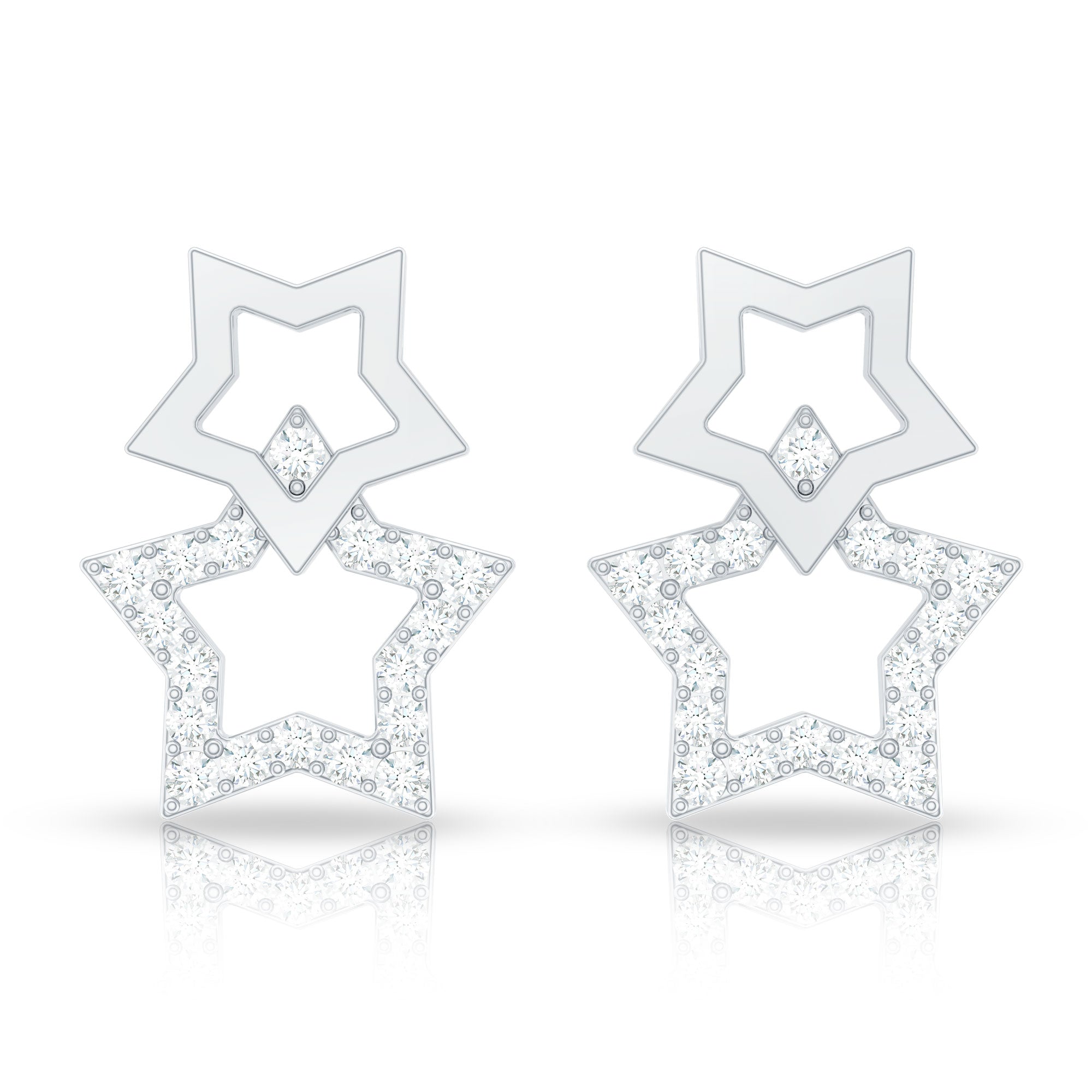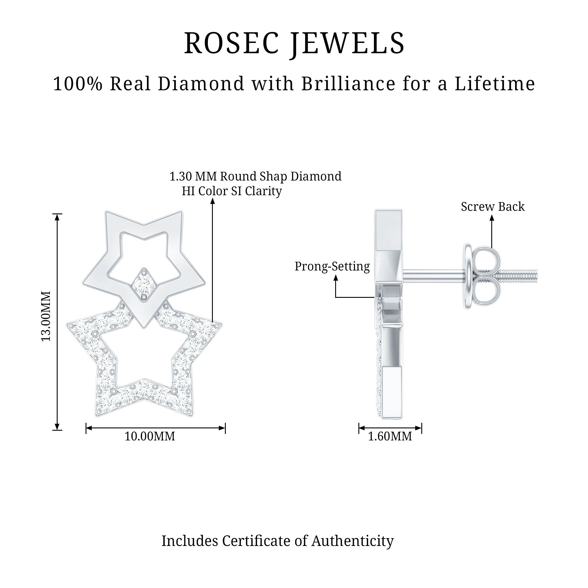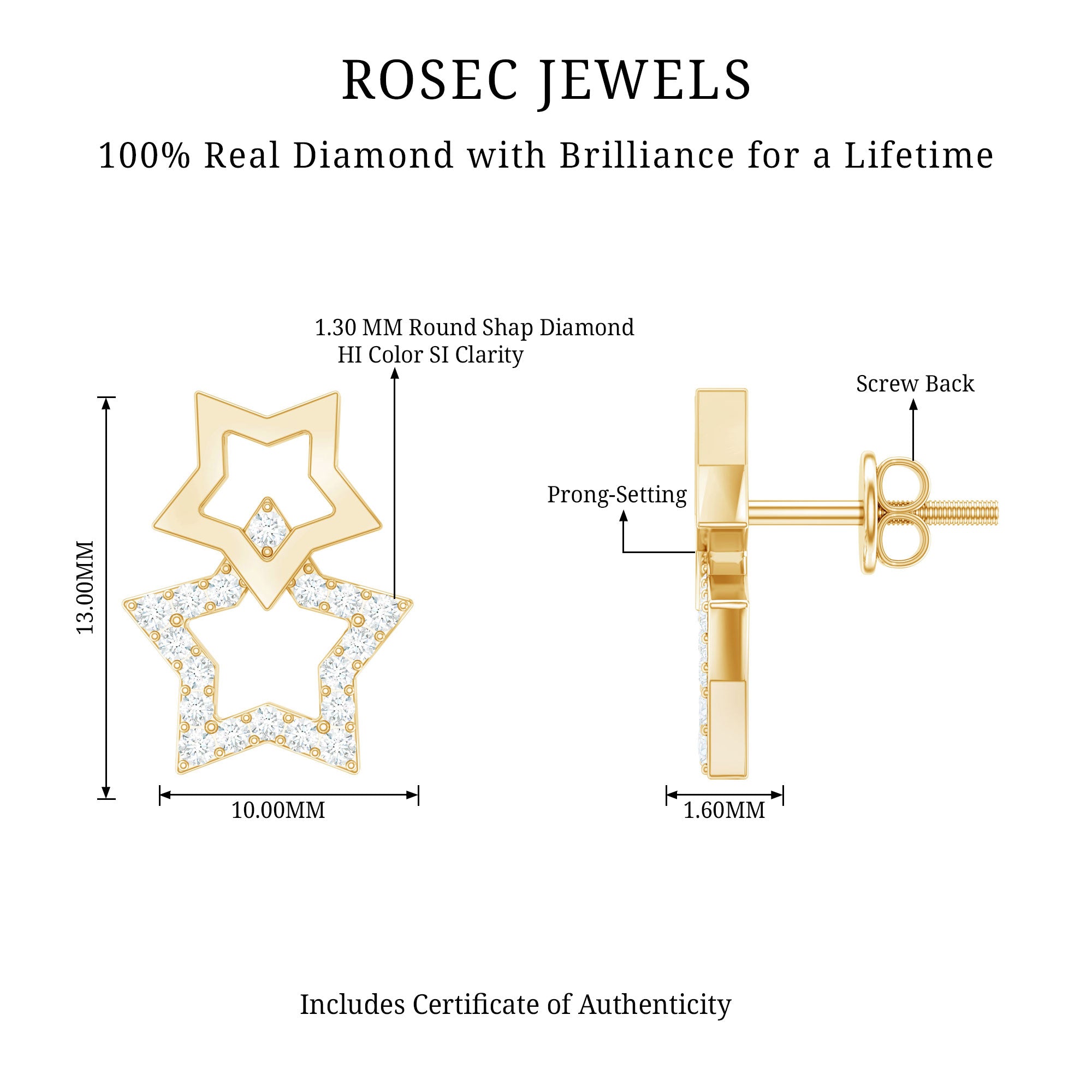 Sparkle like a star at the Party with this Double Star Stud Earrings. These Diamond Star earrings would be the perfect choice of jewelry to pair up with your Christmas Party Dress. These Stud earrings are decorated with a Brilliant round shape Diamond set as an Accent in a Prong Setting in one Star. This Interlock Design of Stars makes these earrings more beautiful, so grab these Star earrings now.