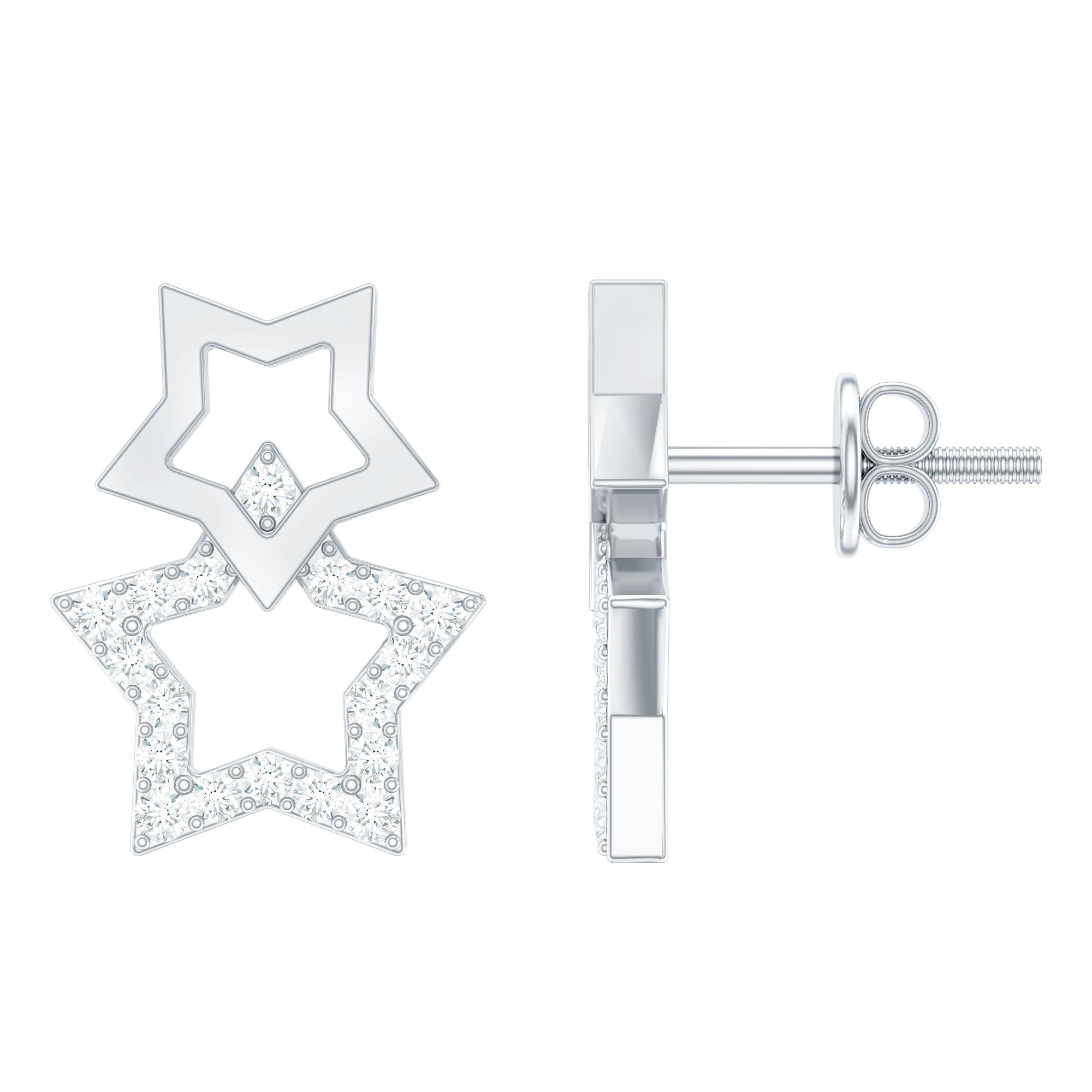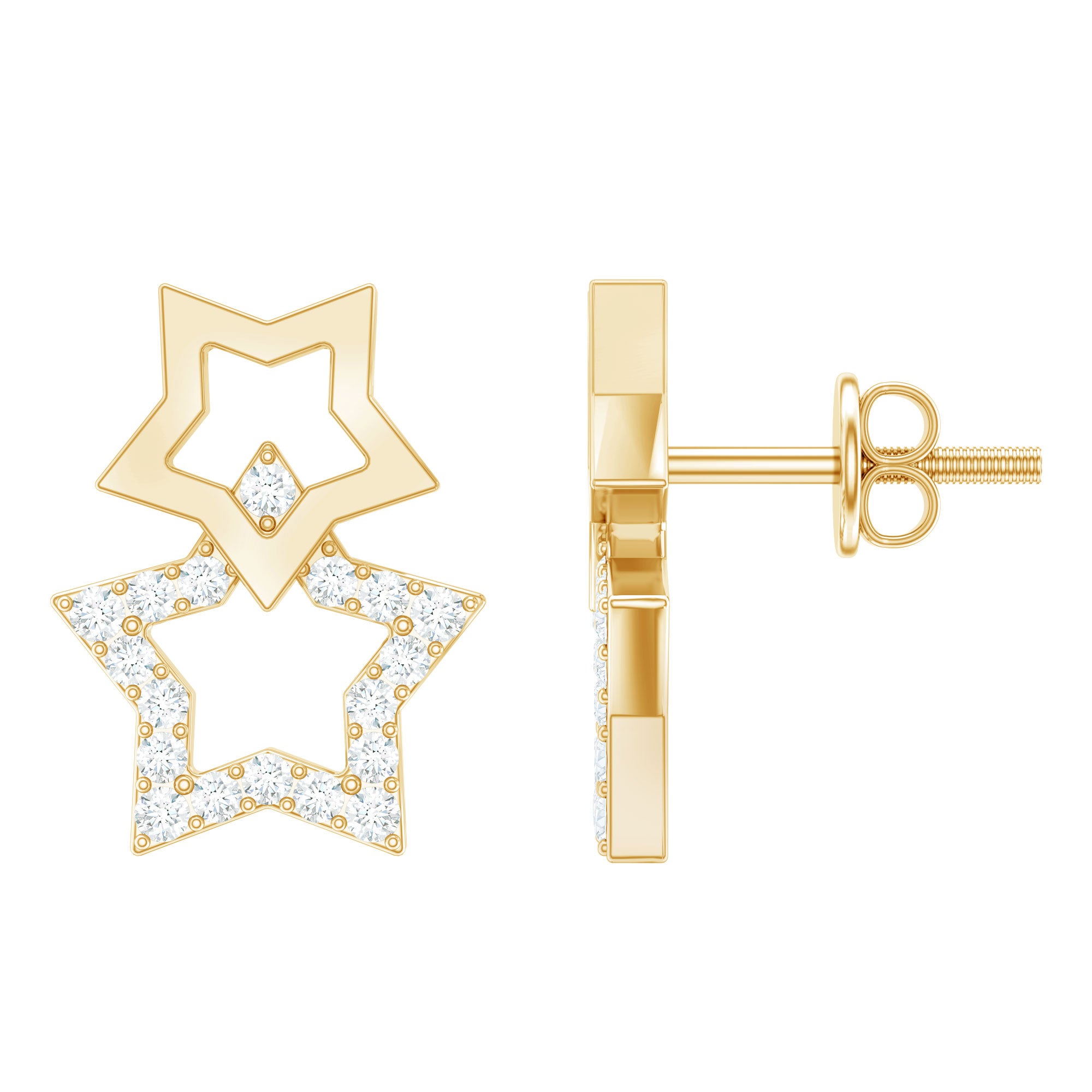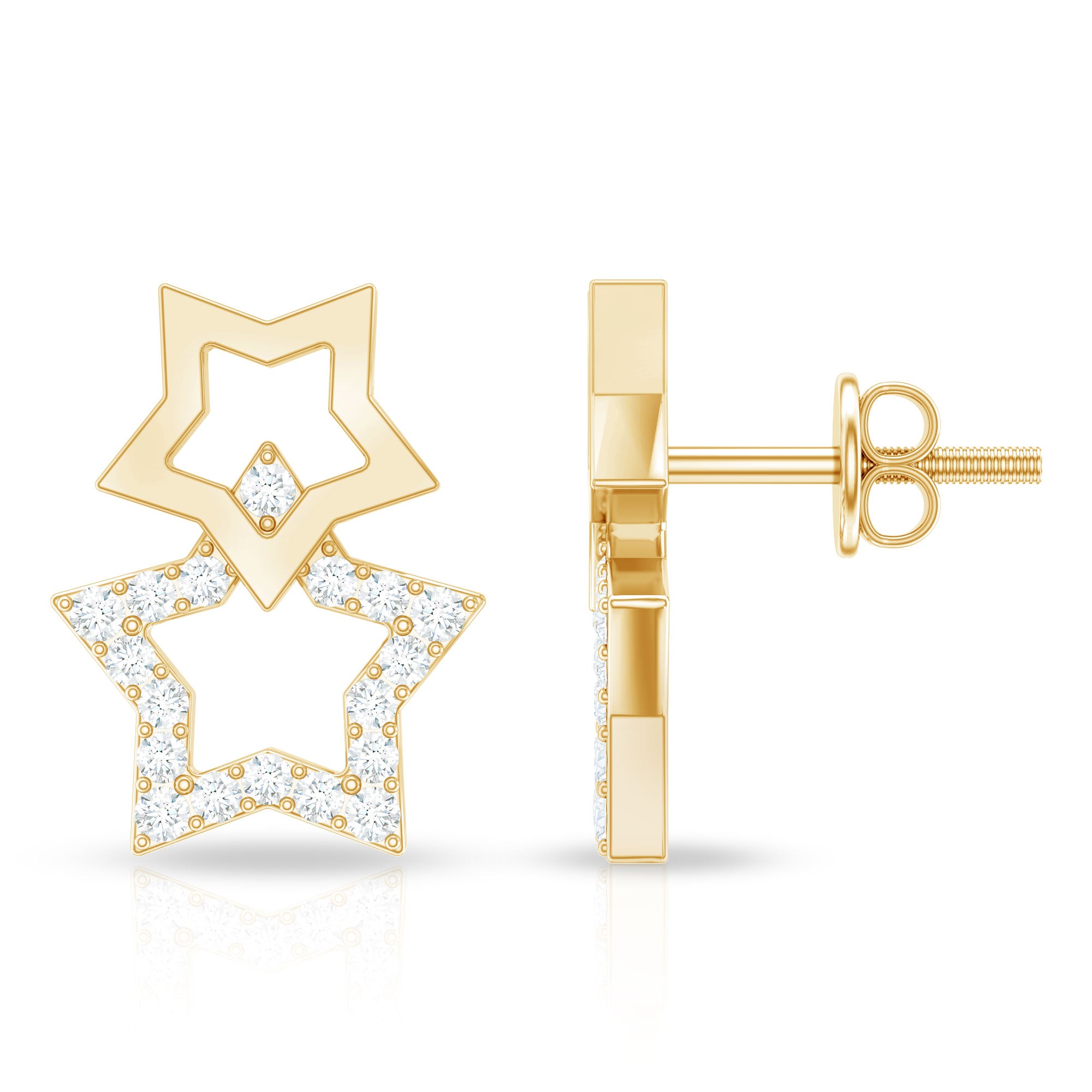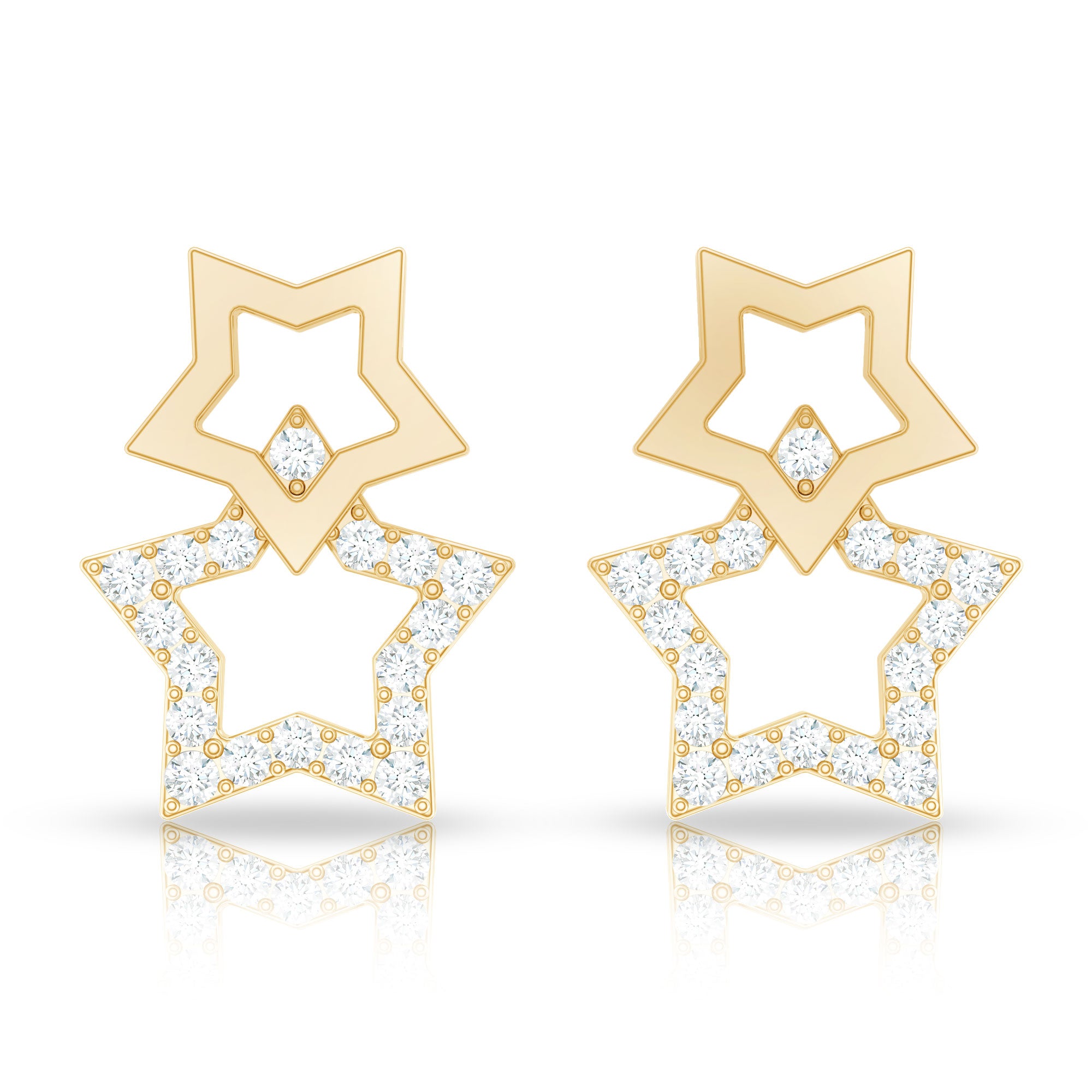Sparkle like a star at the Party with this Double Star Stud Earrings. These Diamond Star earrings would be the perfect choice of jewelry to pair up with your Christmas Party Dress. These Stud earrings are decorated with a Brilliant round shape Diamond set as an Accent in a Prong Setting in one Star. This Interlock Design of Stars makes these earrings more beautiful, so grab these Star earrings now.