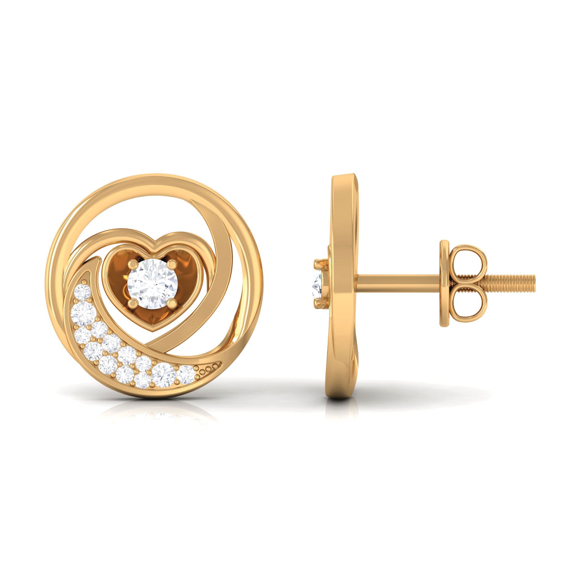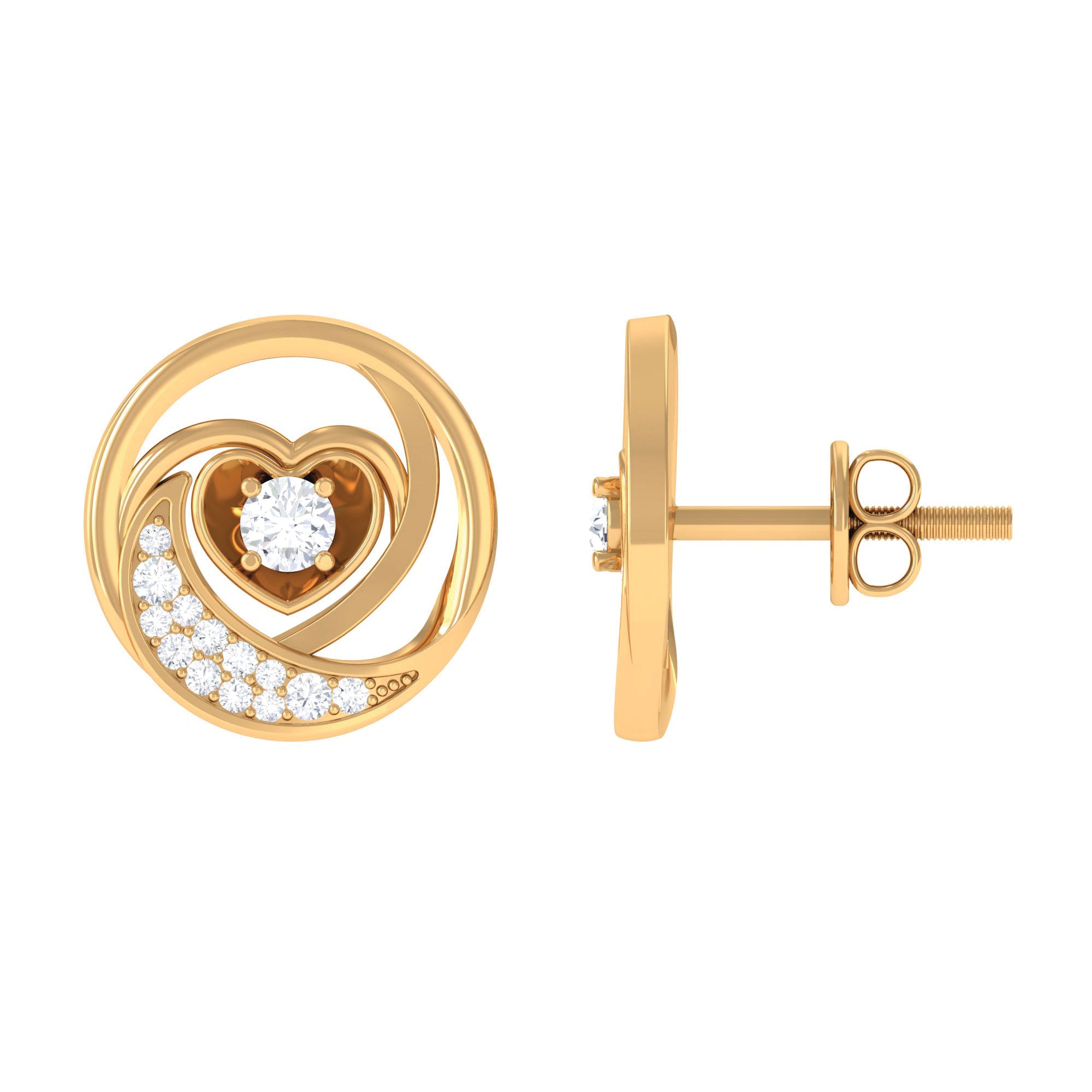 Make a statement with these unique Half Moon and Heart pattern Stud Earrings, crafted in gold and adorned with Round Cut Moissanite in a prong setting. The screw back closure ensures a secure fit, making these Moissanite earrings a perfect choice for everyday wear to express your individuality.