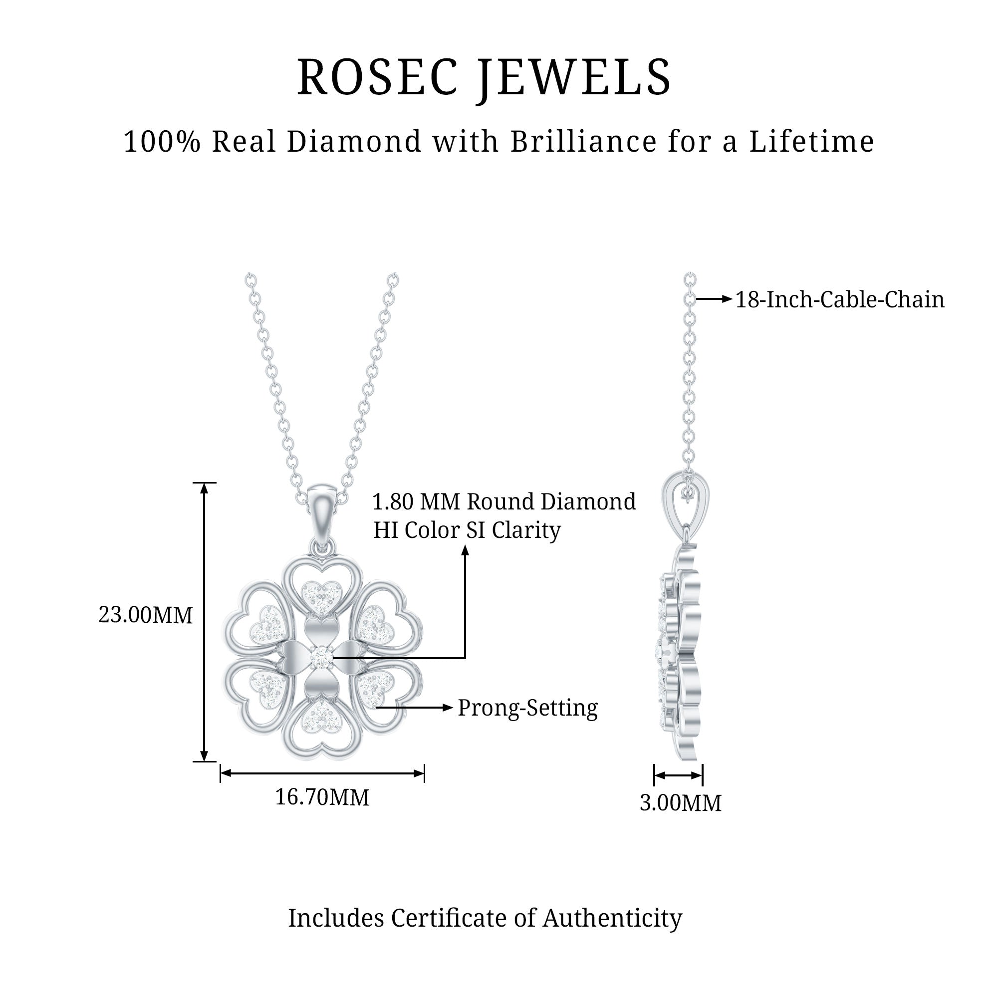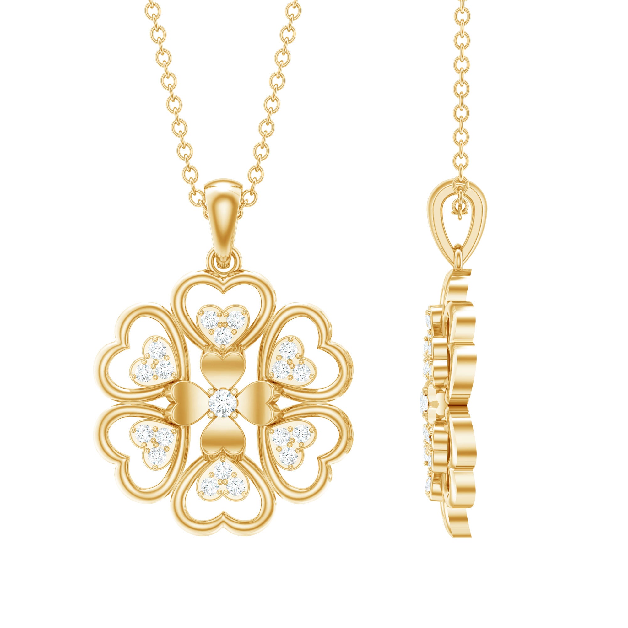 0.25 CT Natural Diamond Heart Gold Petal Flower Pendant Necklace