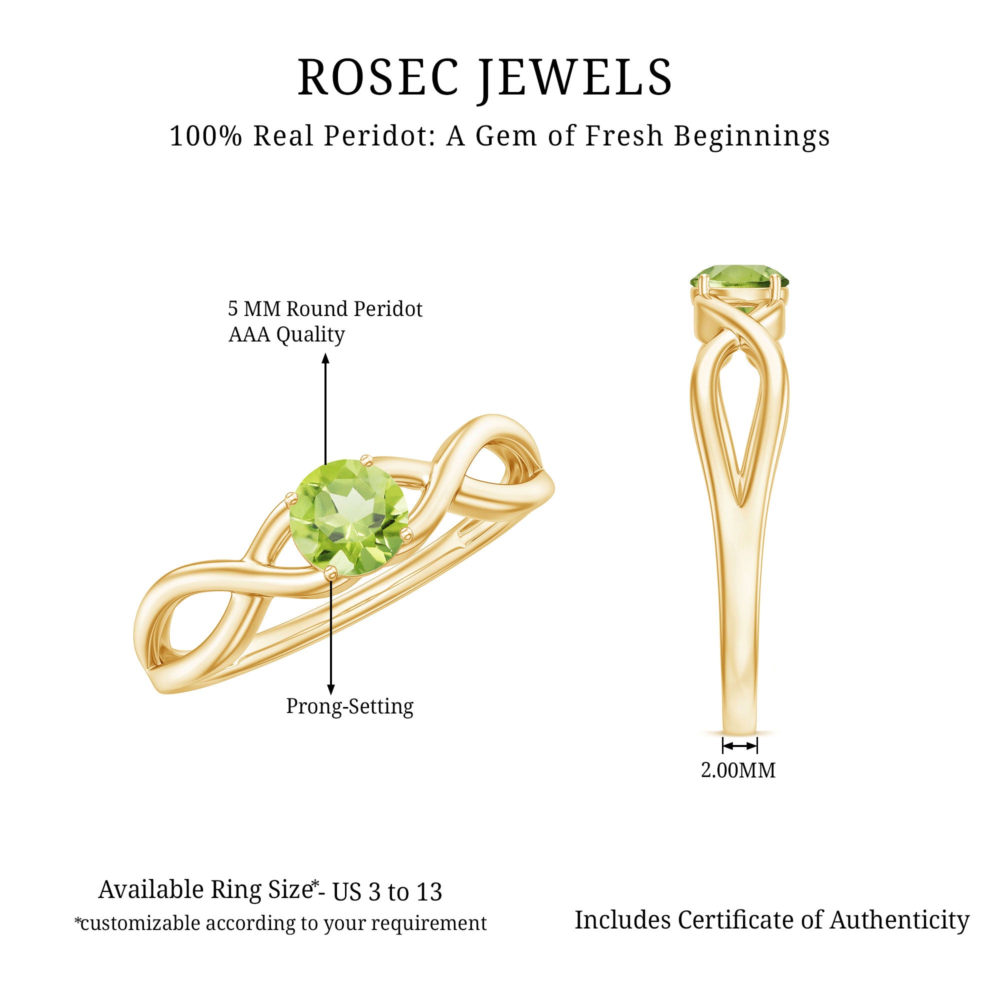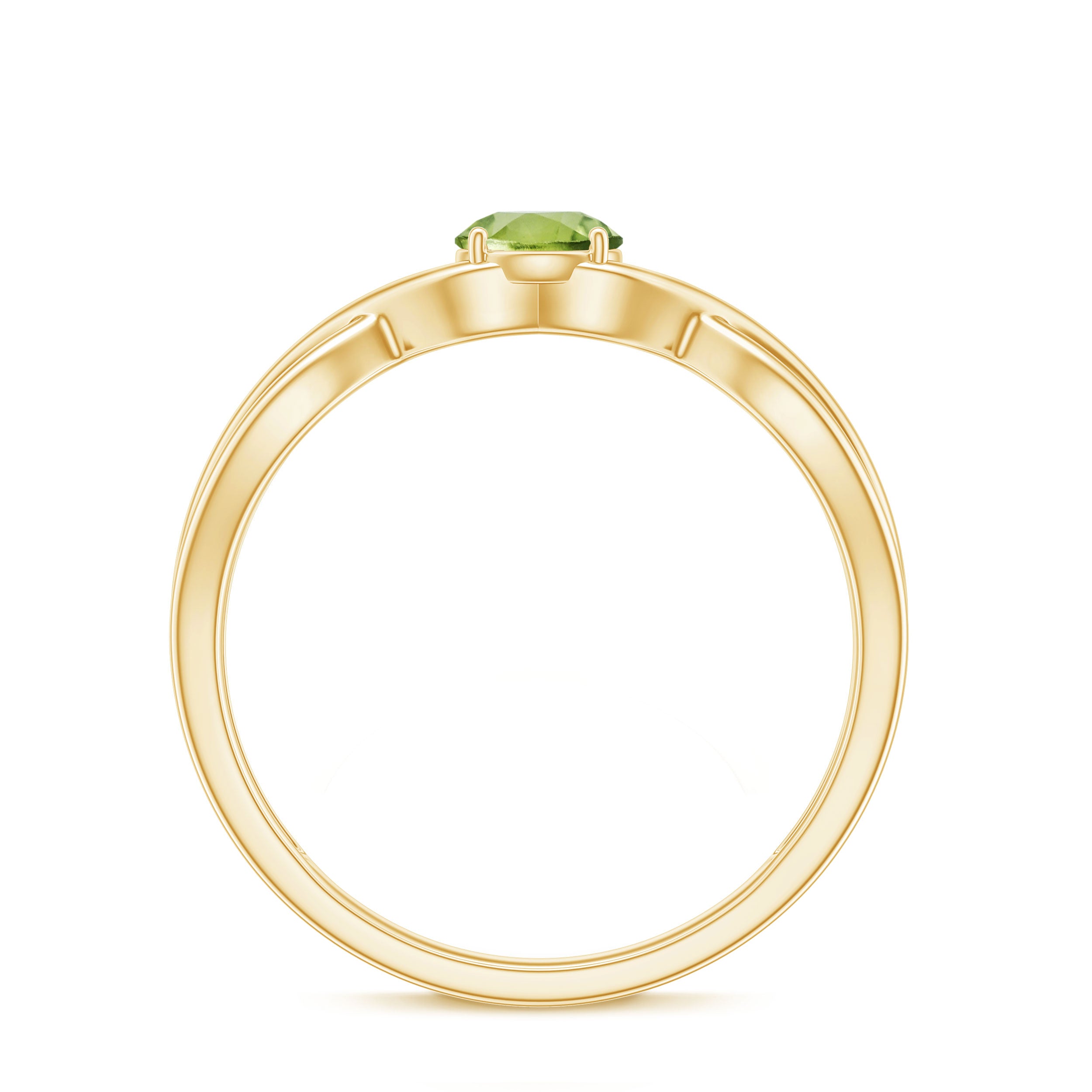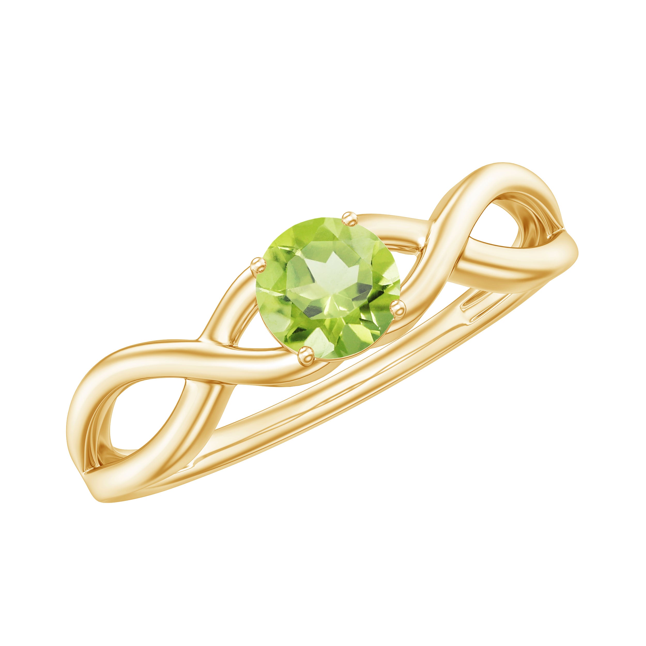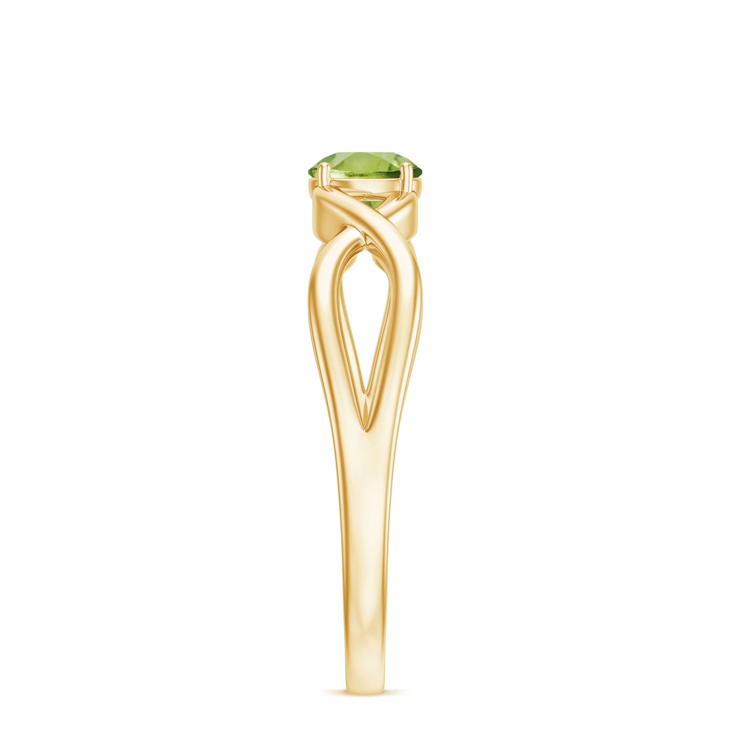 Get this elegant Crossover Solitaire Ring to add just a subtle touch of everyday sparkle to your look. This Simple Solitaire Ring is embellished with Round Cut Peridot in Prong Setting. This Peridot Stone Ring is crafted with Gold to brighten your day-to-day look. This Peridot Ring will be a perfect addition to your jewelry collection.