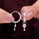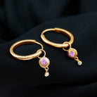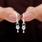 0.25 CT Simple Pink Sapphire Hoop Drop Earrings with Diamond