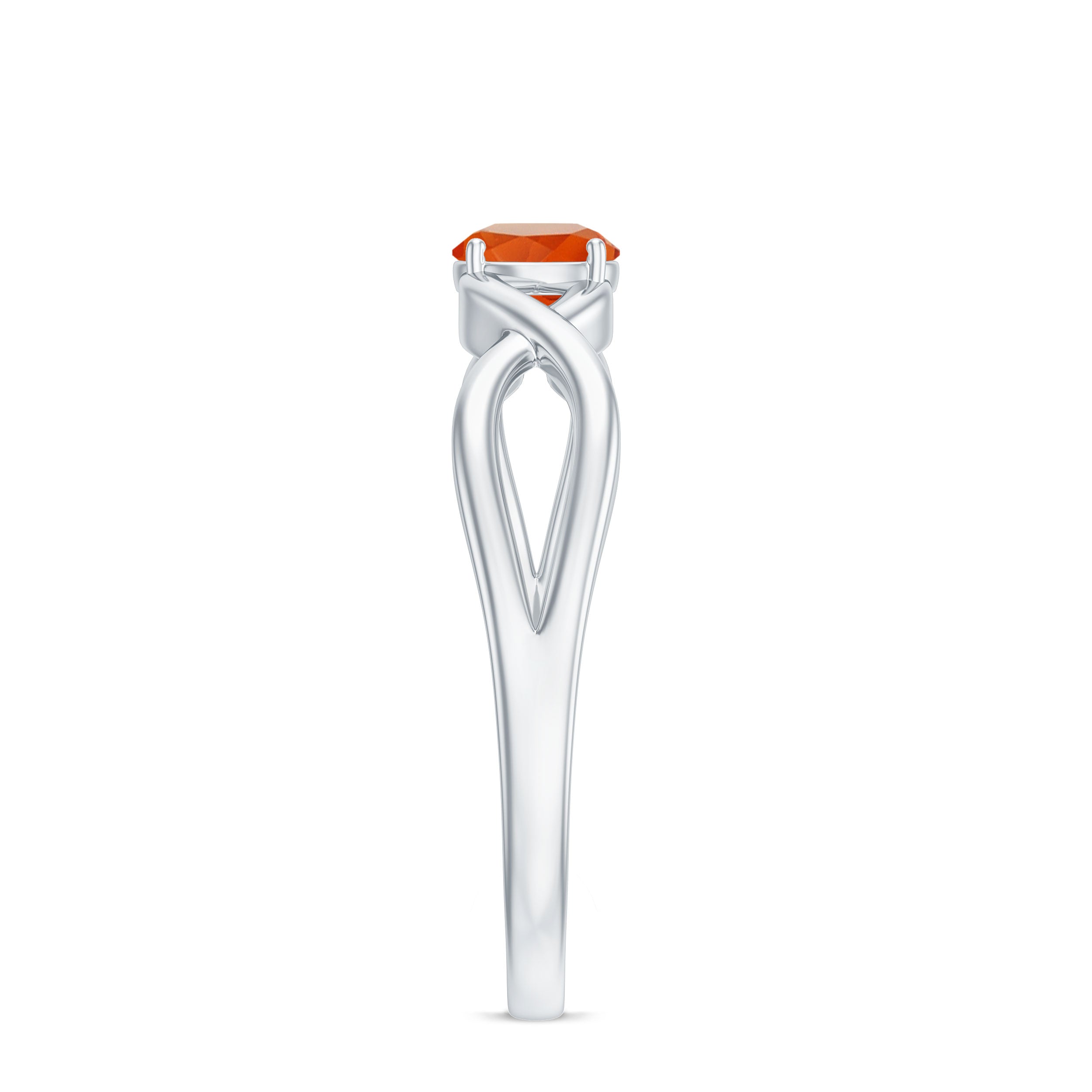 Adorned with a Round Cut Fire Opal creating a solitaire design, this Engagement Ring makes for a magnificent choice to mark the big day of your life. Fire Opal in the center of crossover shank give a charming appeal to this Fire Opal Engagement Ring.