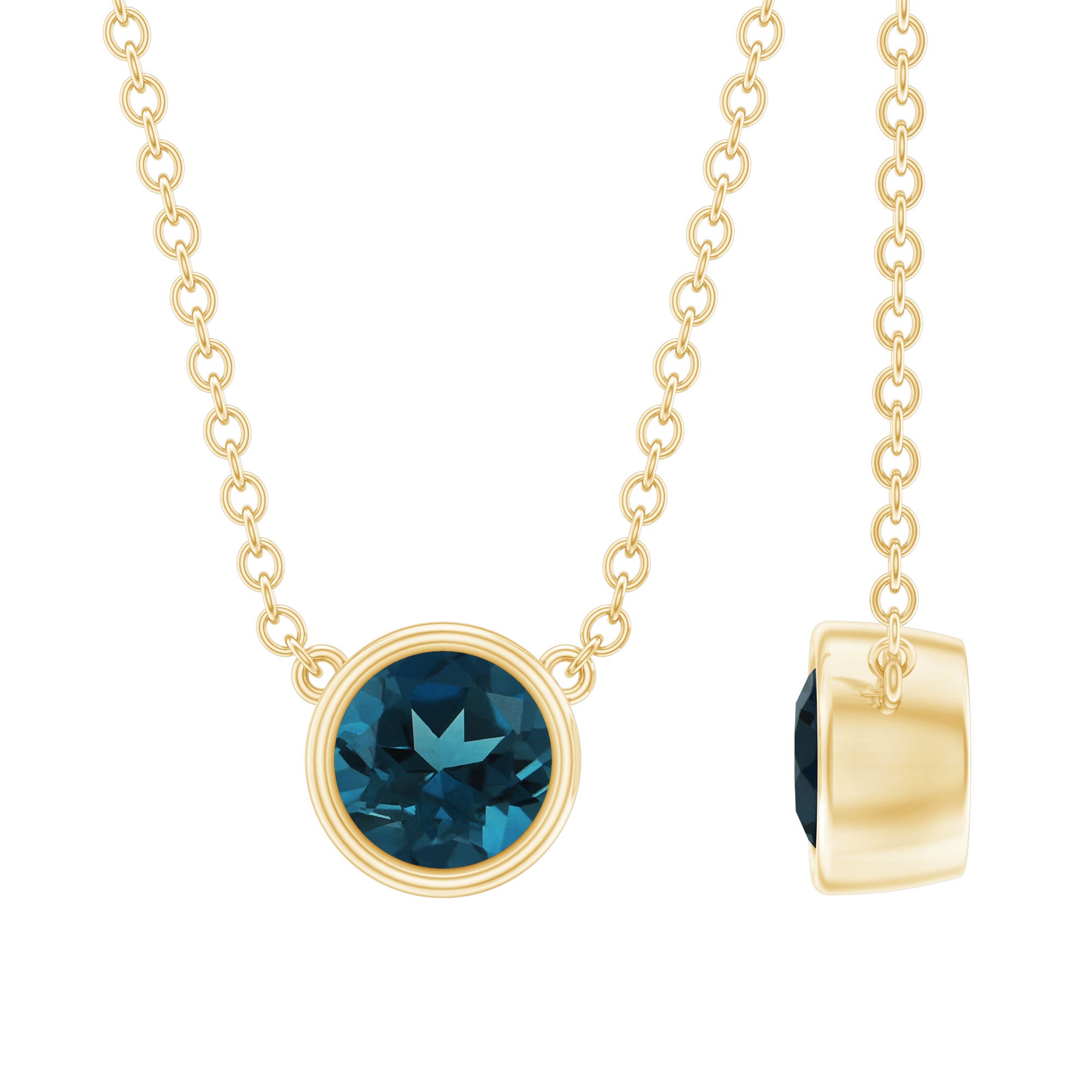 Enhance your style with the captivating Gold Pendant Necklace embellished with a Round Cut London Blue Topaz elegantly showcased in a Bezel Setting. This exquisite 5 MM London Blue Topaz Solitaire Necklace is a unique and eye-catching piece that will beautifully complement any womans attire.