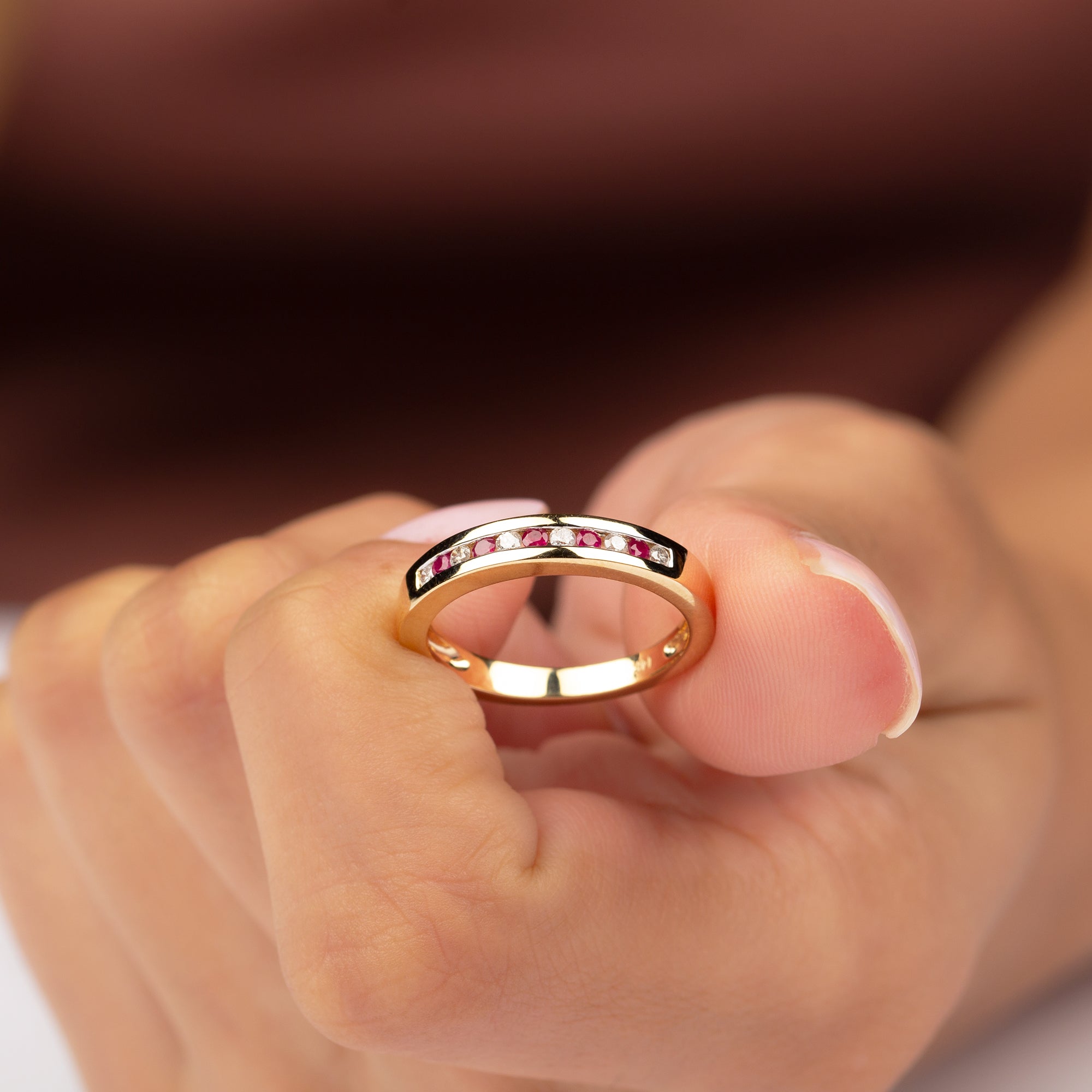 0.5 CT Ruby and Diamond Minimal Band Ring in Channel Setting