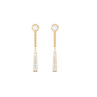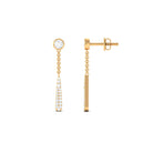 Stylish statement Moissanite dangle earrings with bezel-set stones on a delicate chain. Add sparkle and sophistication to any ensemble.