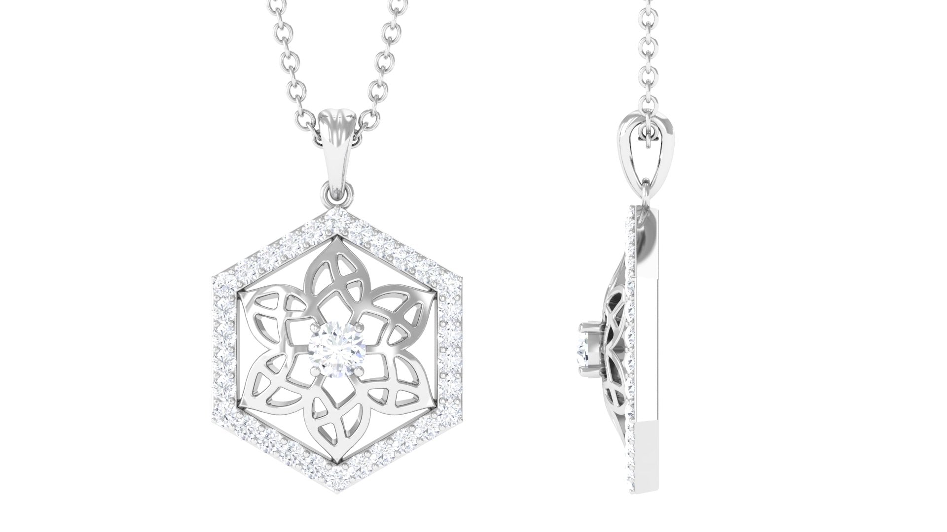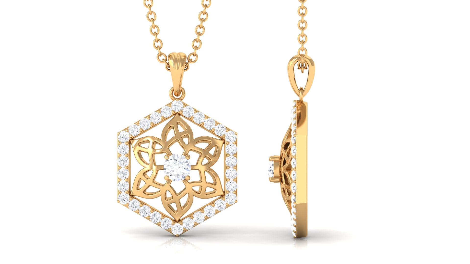 0.50 CT Certified Moissanite Floral Pendant in Gold