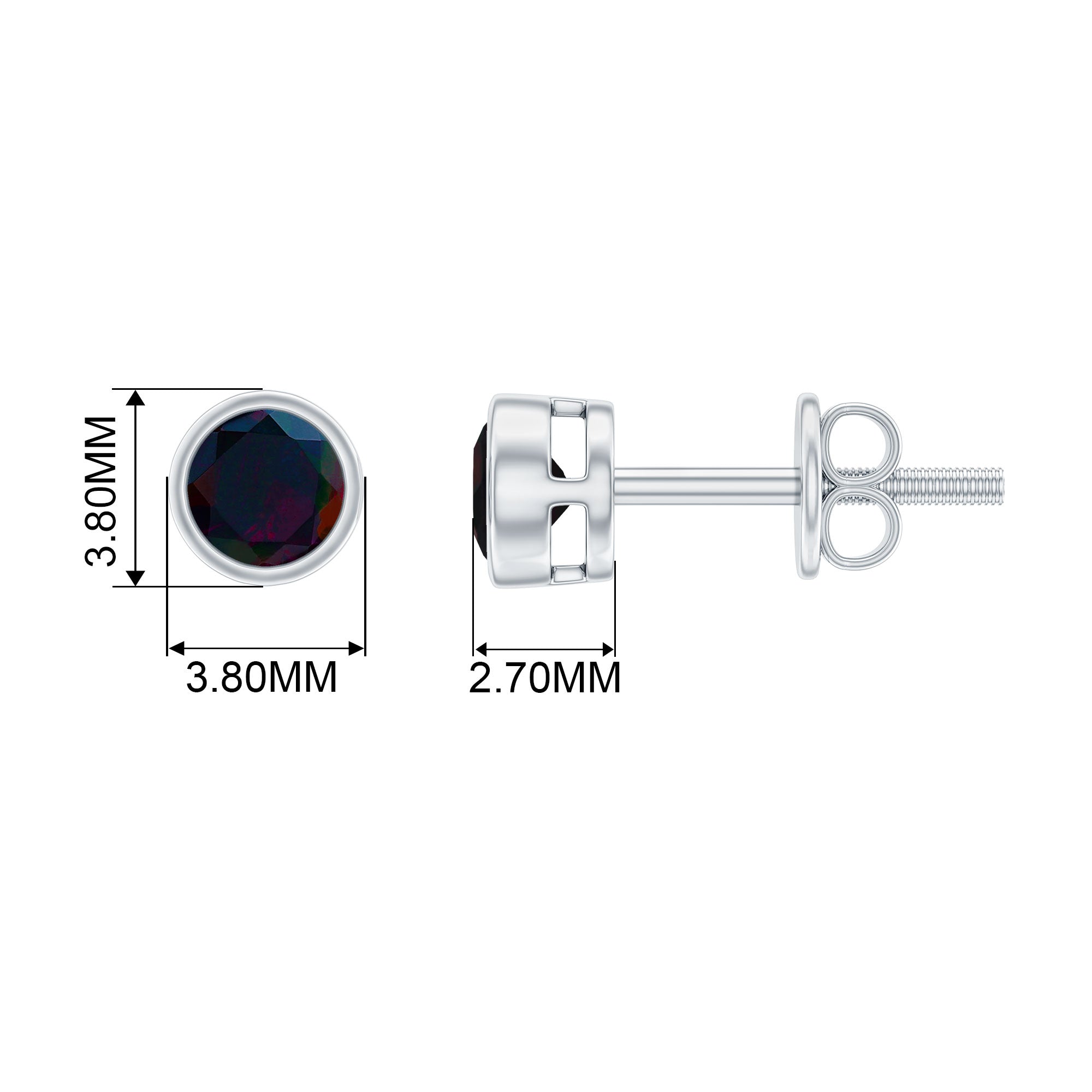 0.50 CT Dainty Black Opal Solitaire Stud Earrings in Bezel Setting