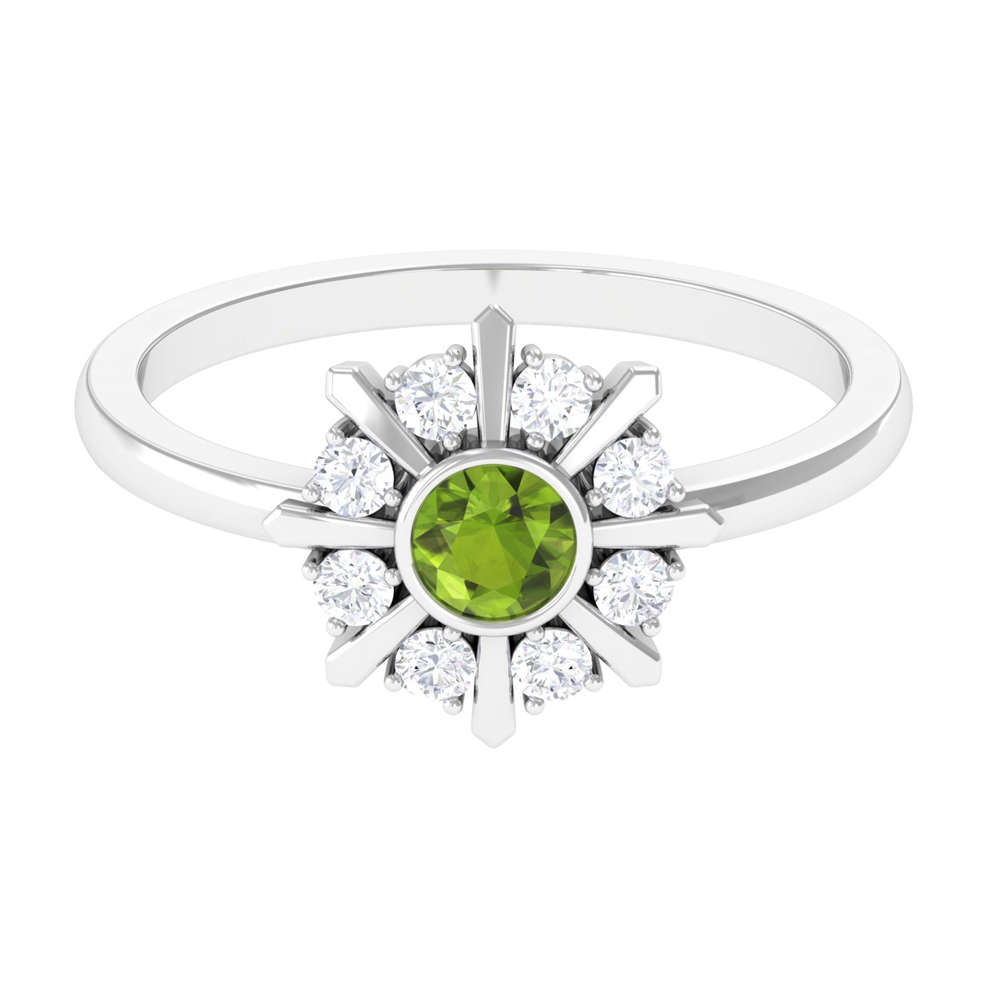 0.50 CT Natural Peridot Statement Ring with Diamond Stones