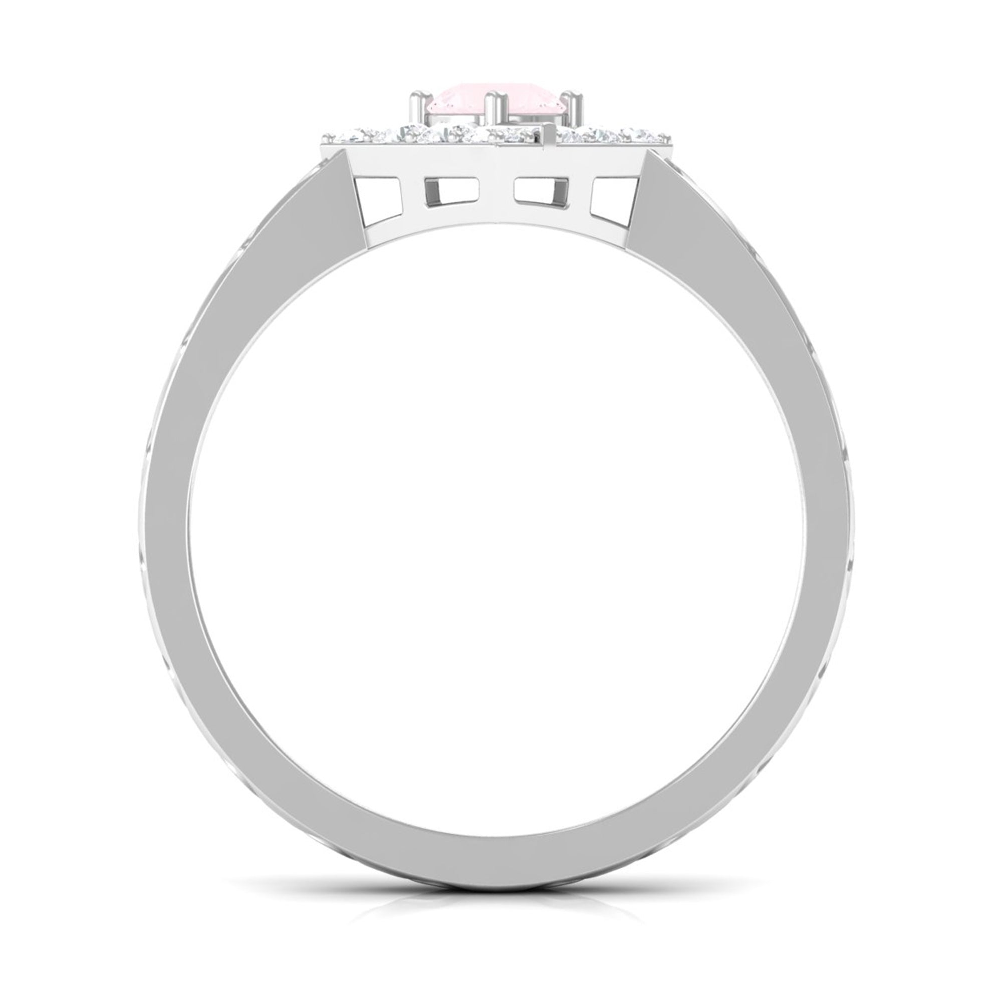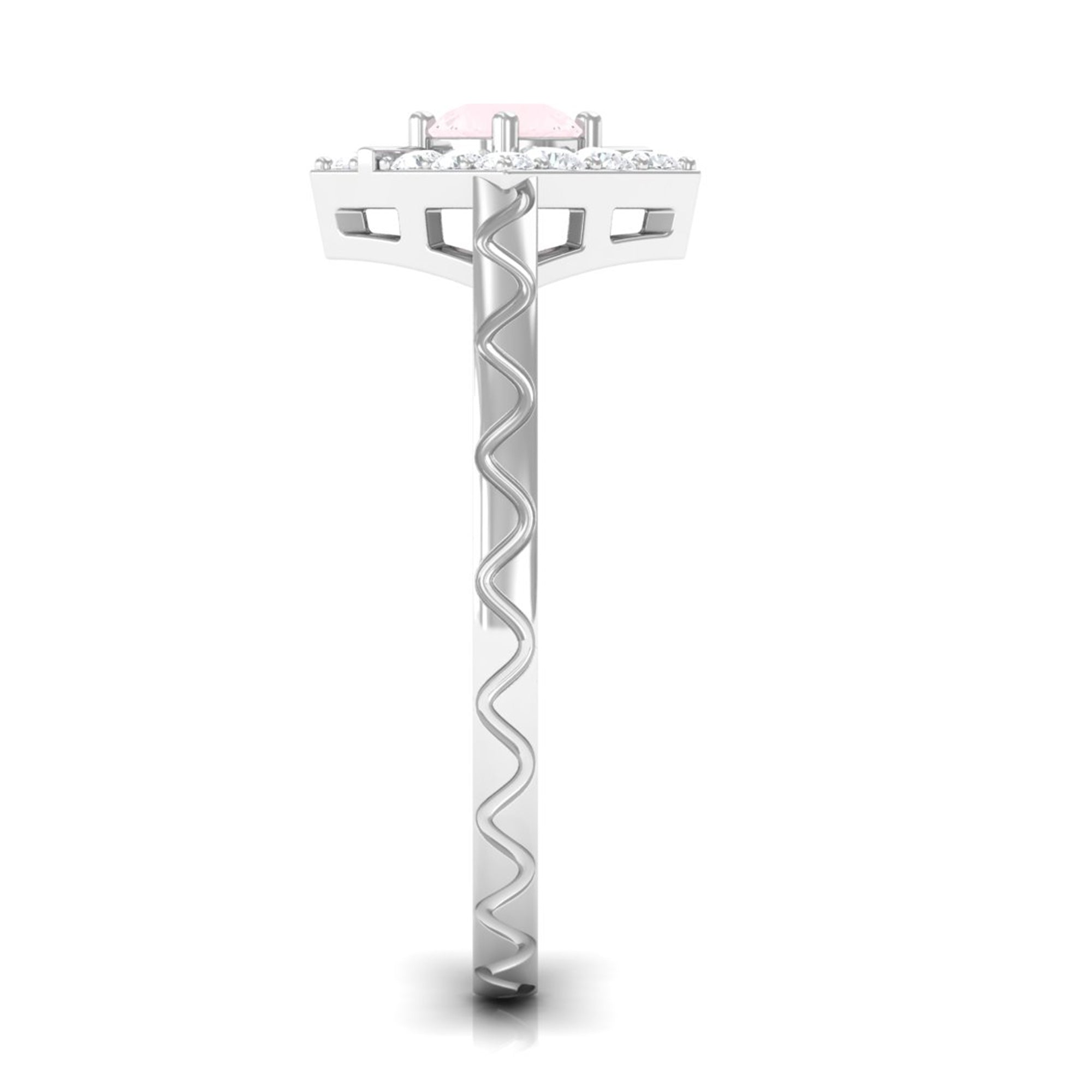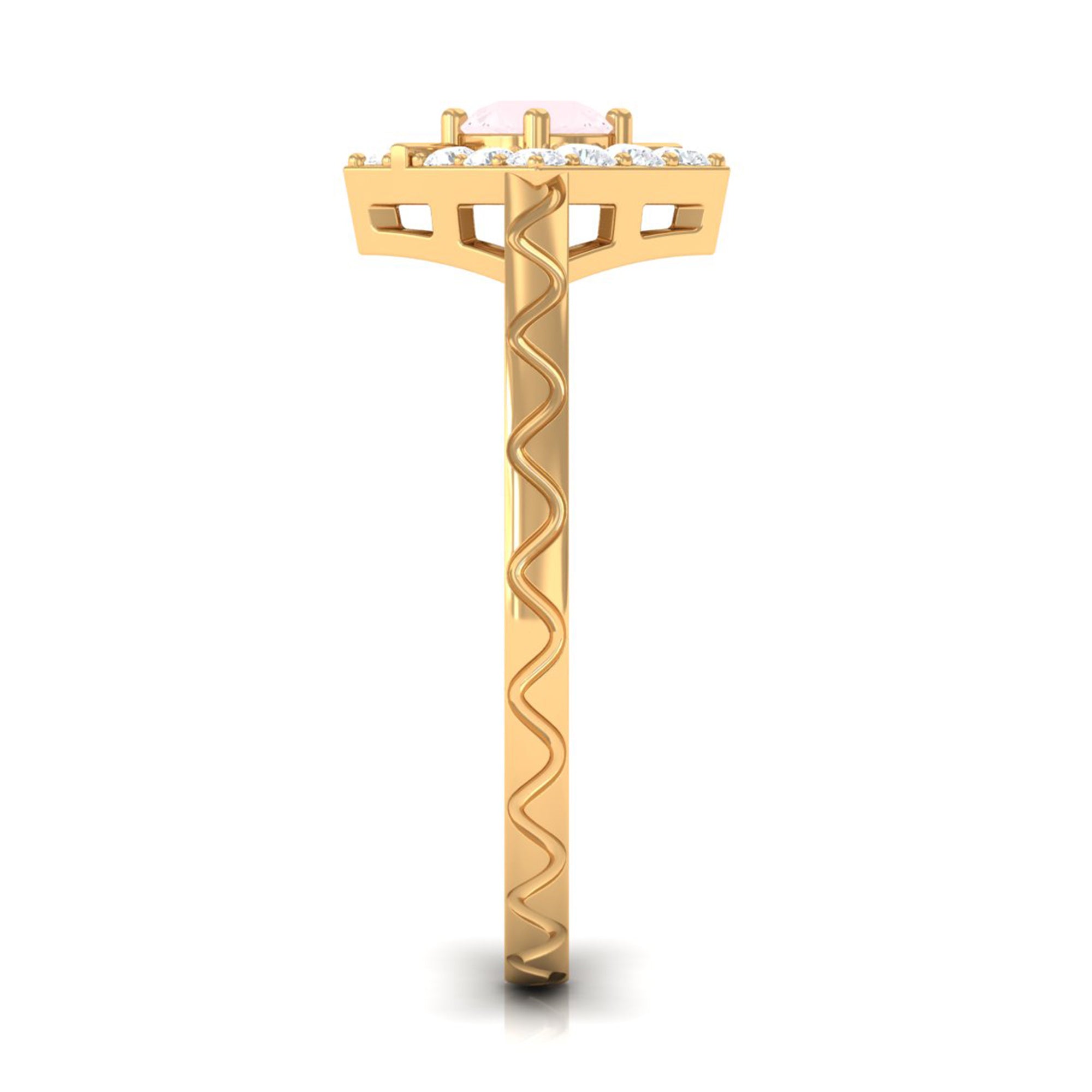 0.50 CT Rose Quartz Minimal Textured Ring with Diamond Accent