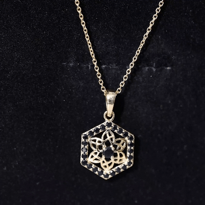 0.50 CT Round Cut Black Onyx Flower Pendant in Gold
