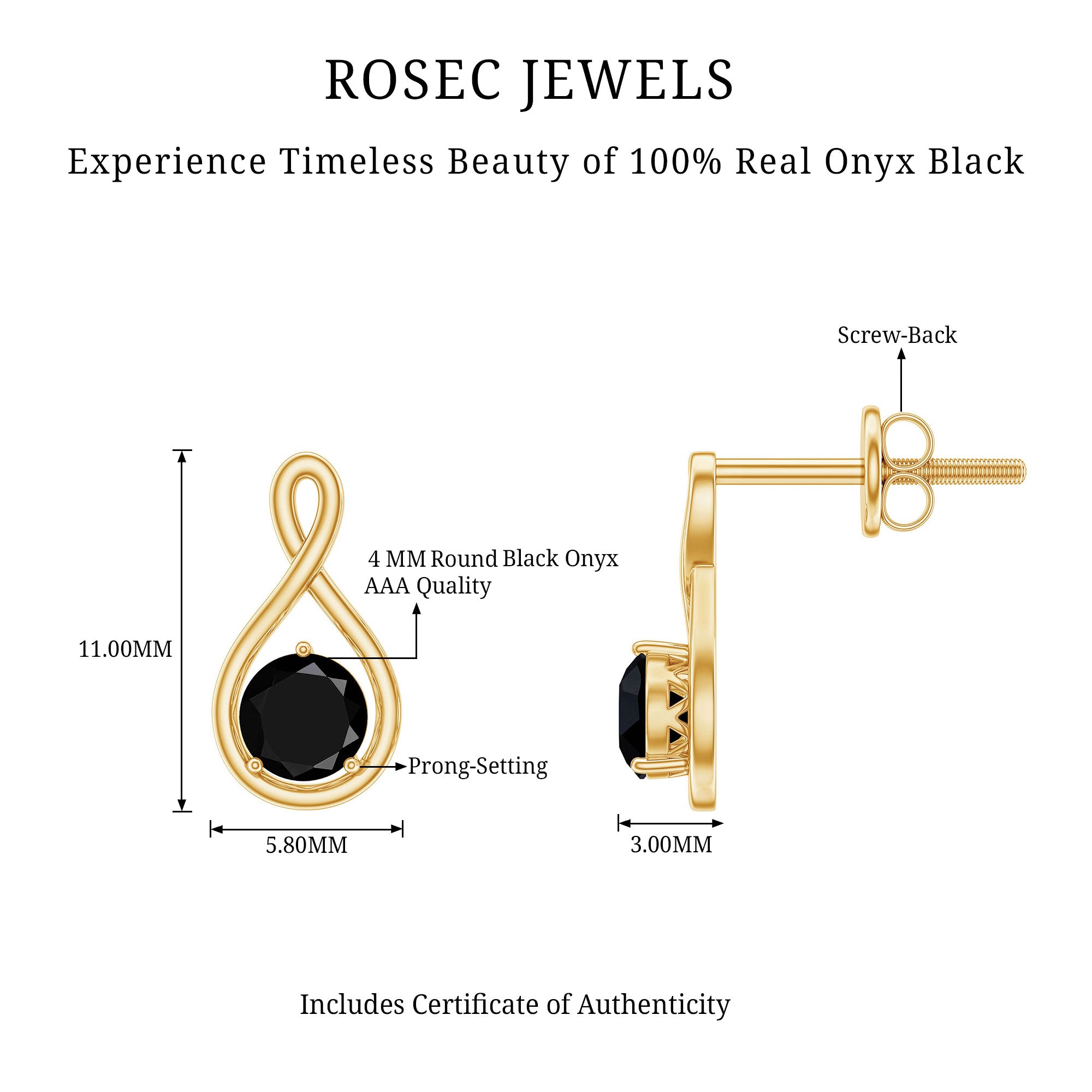 Certified Natural Black Onyx Infinity Earrings with Screw Back