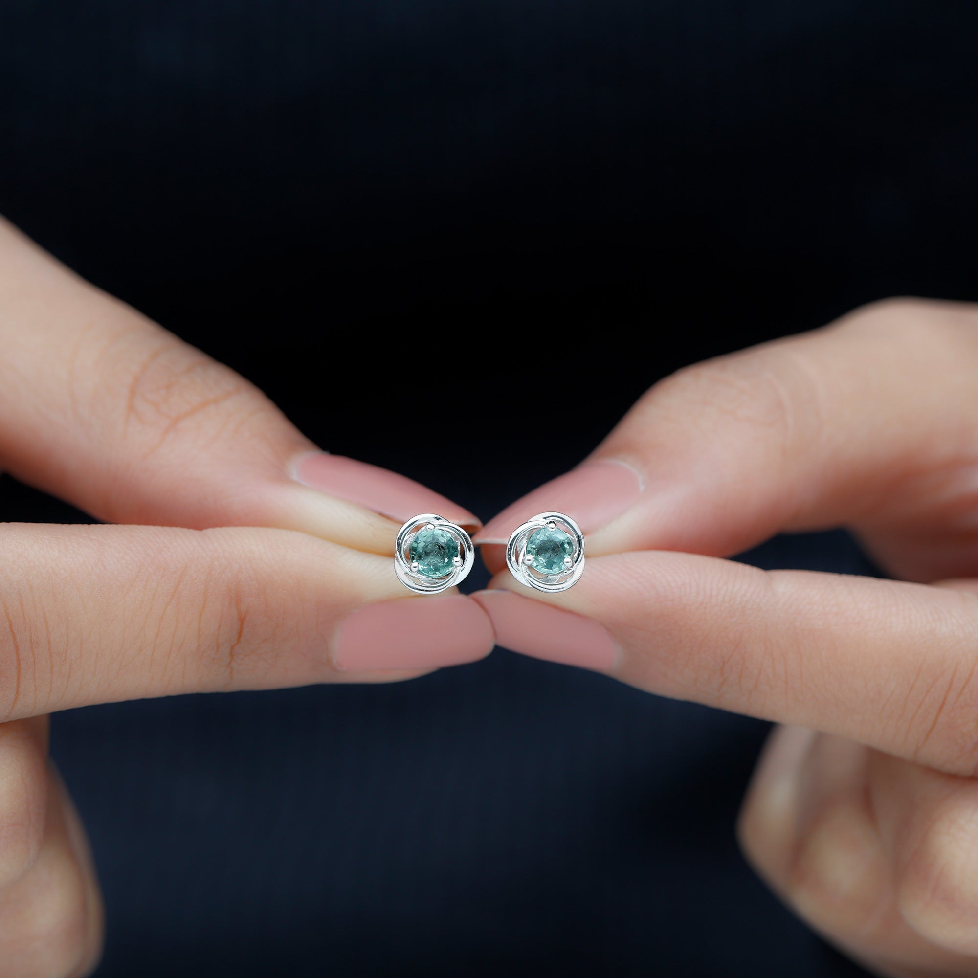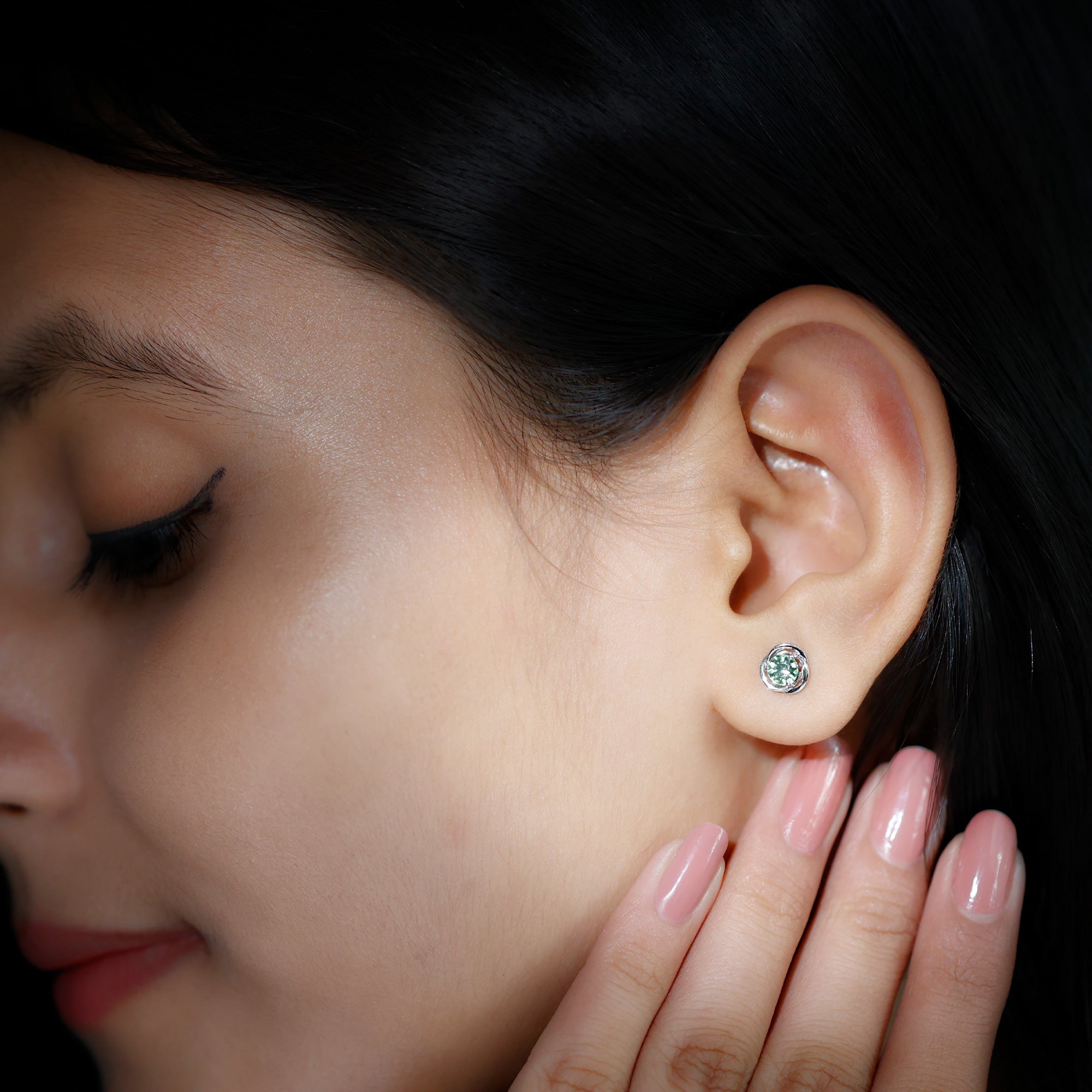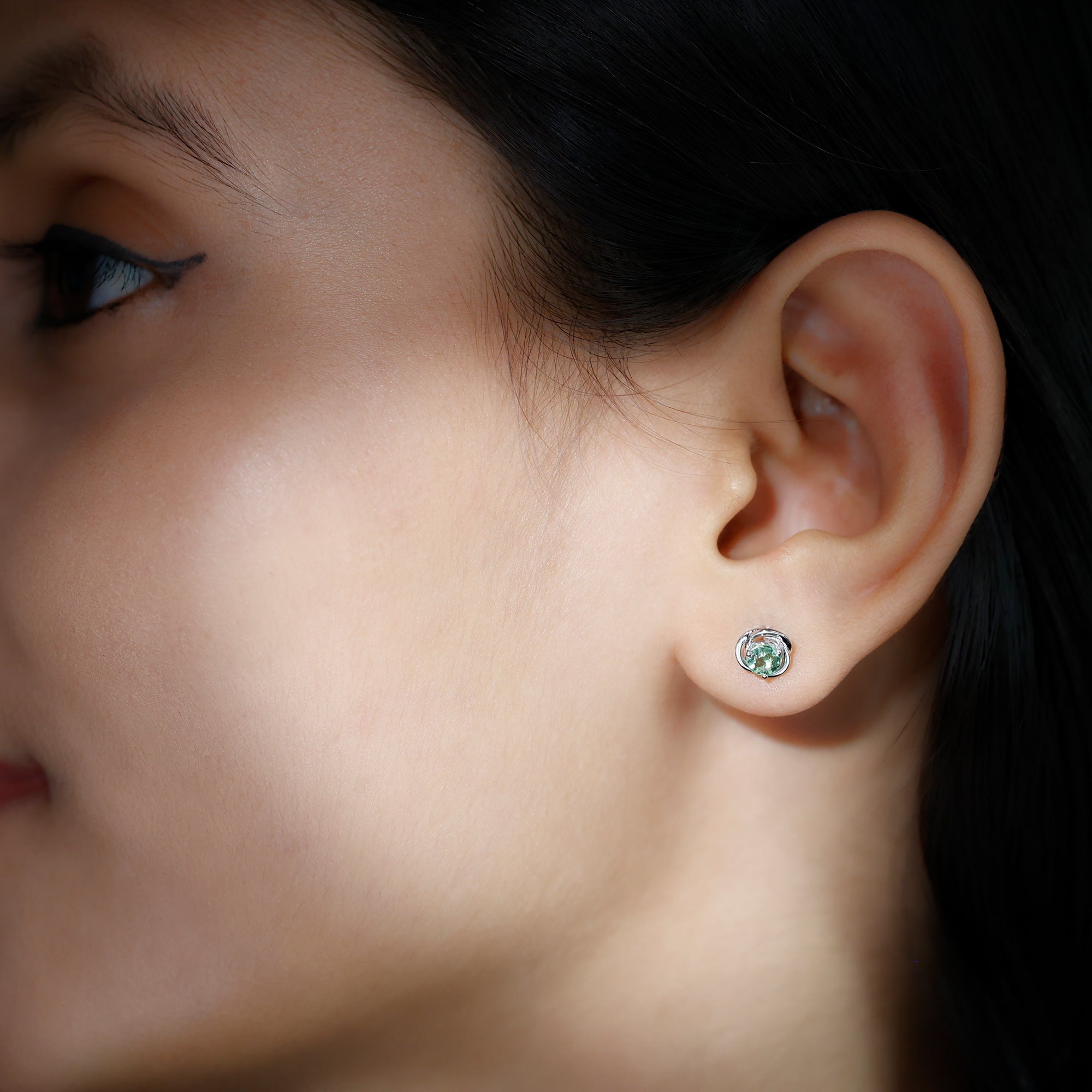 0.50 CT Round Cut Green Sapphire Swirl Solitaire Stud Earrings