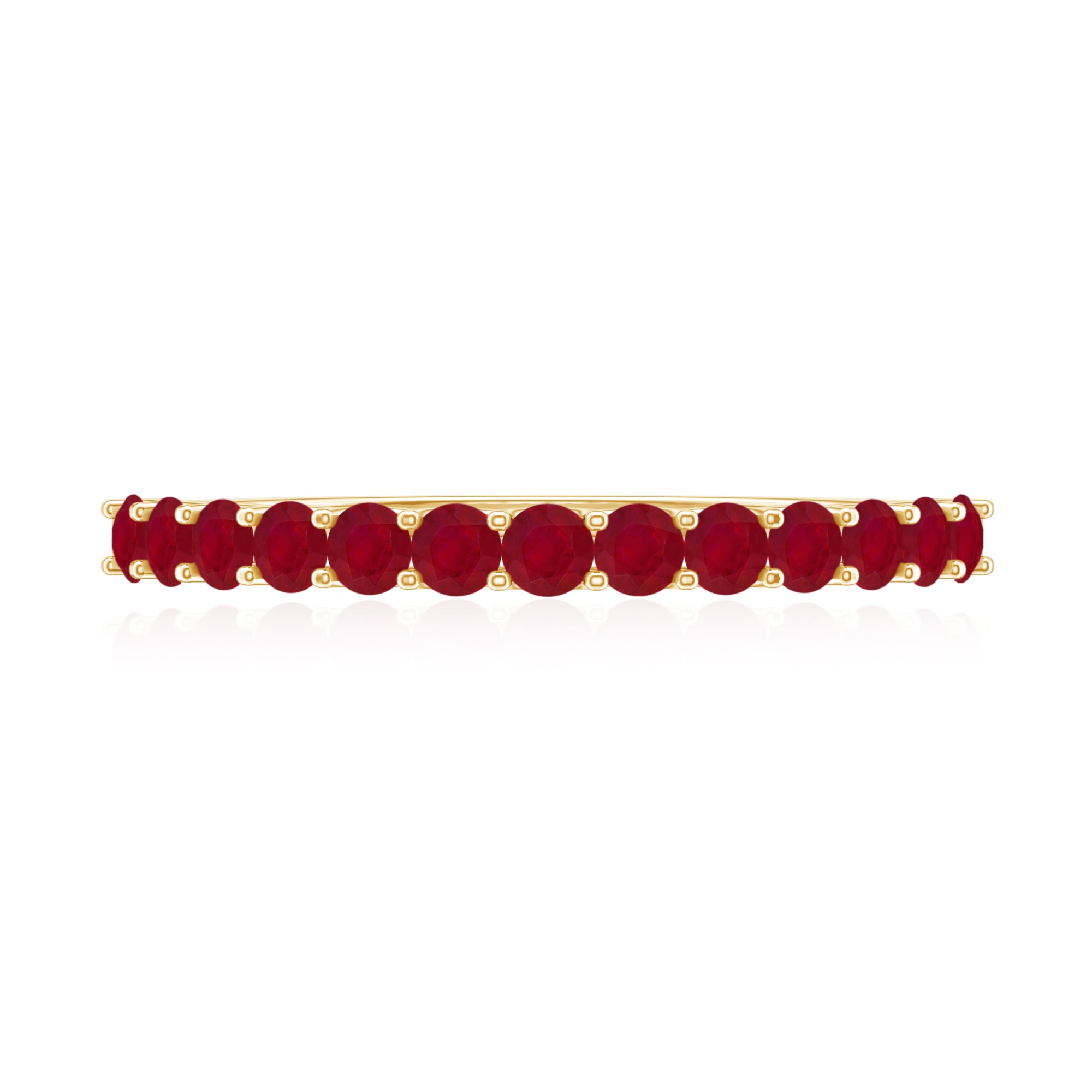This sparkling Enhancer Stackable Ring is adorned with Round Cut Ruby in Shared Prong Setting to make for a trendy choice for styling. The Stackable Ring will be an ideal piece to enhance your Engagement Ring look and get lot of compliments.