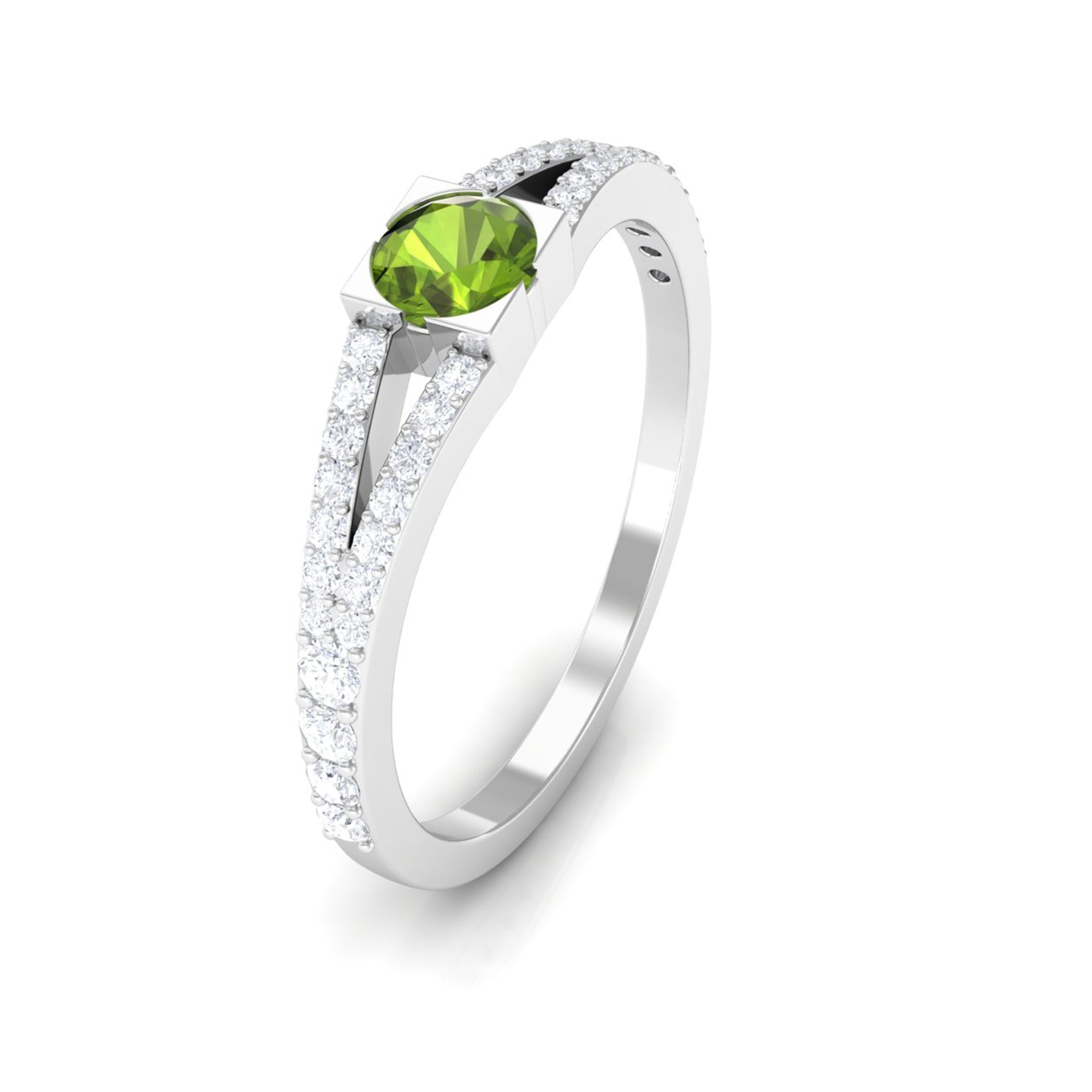 0.50 CT Split Shank Peridot Promise Ring with Diamond Accent