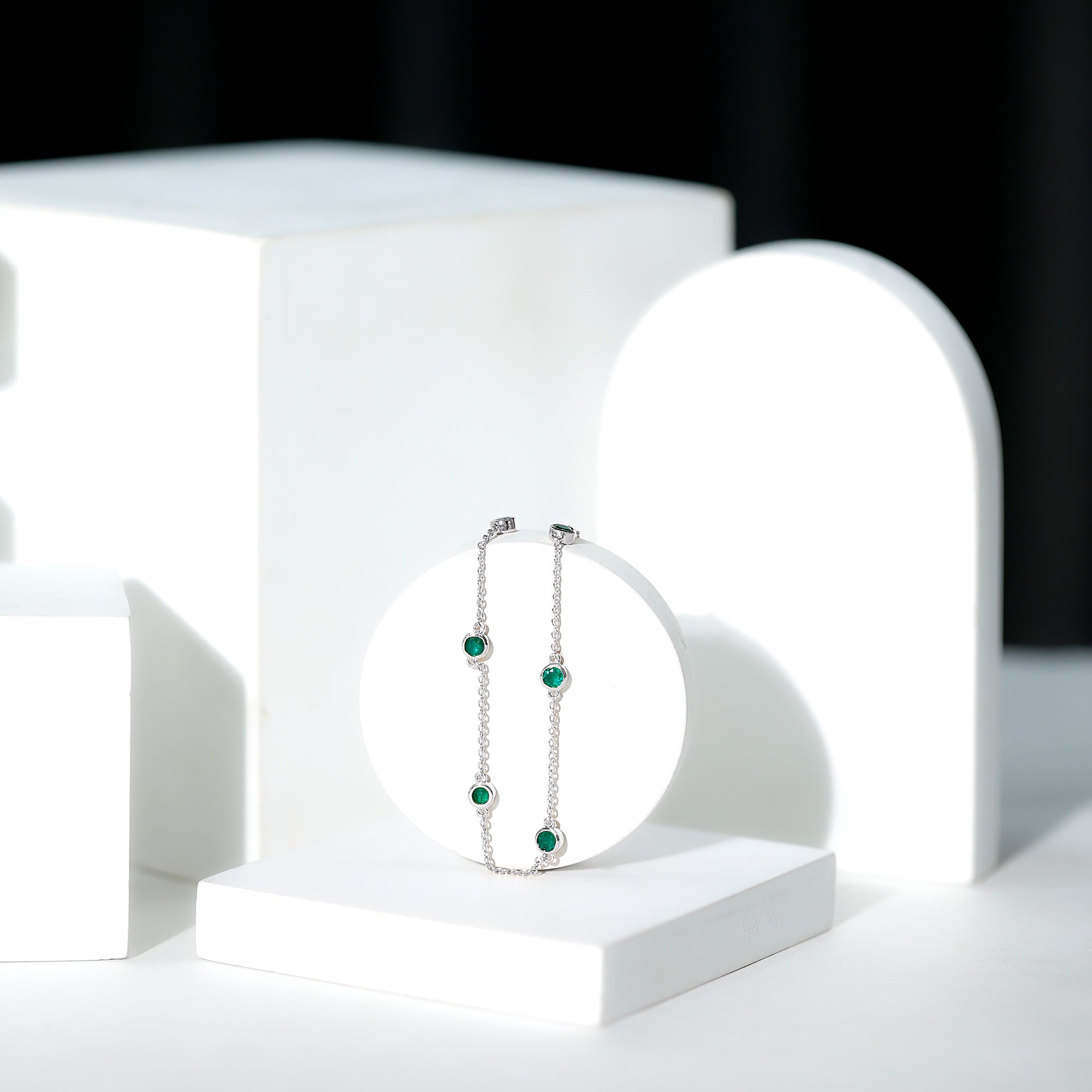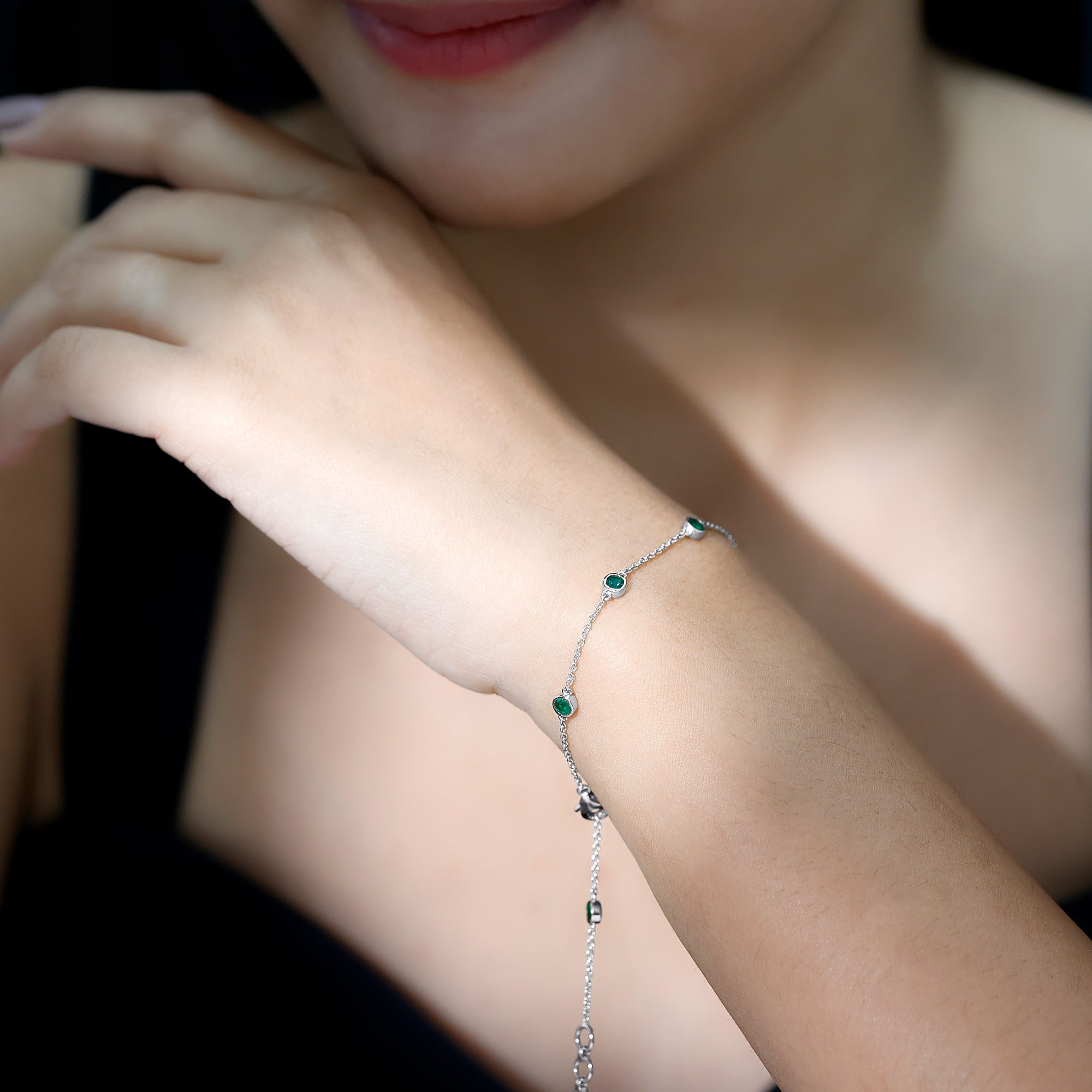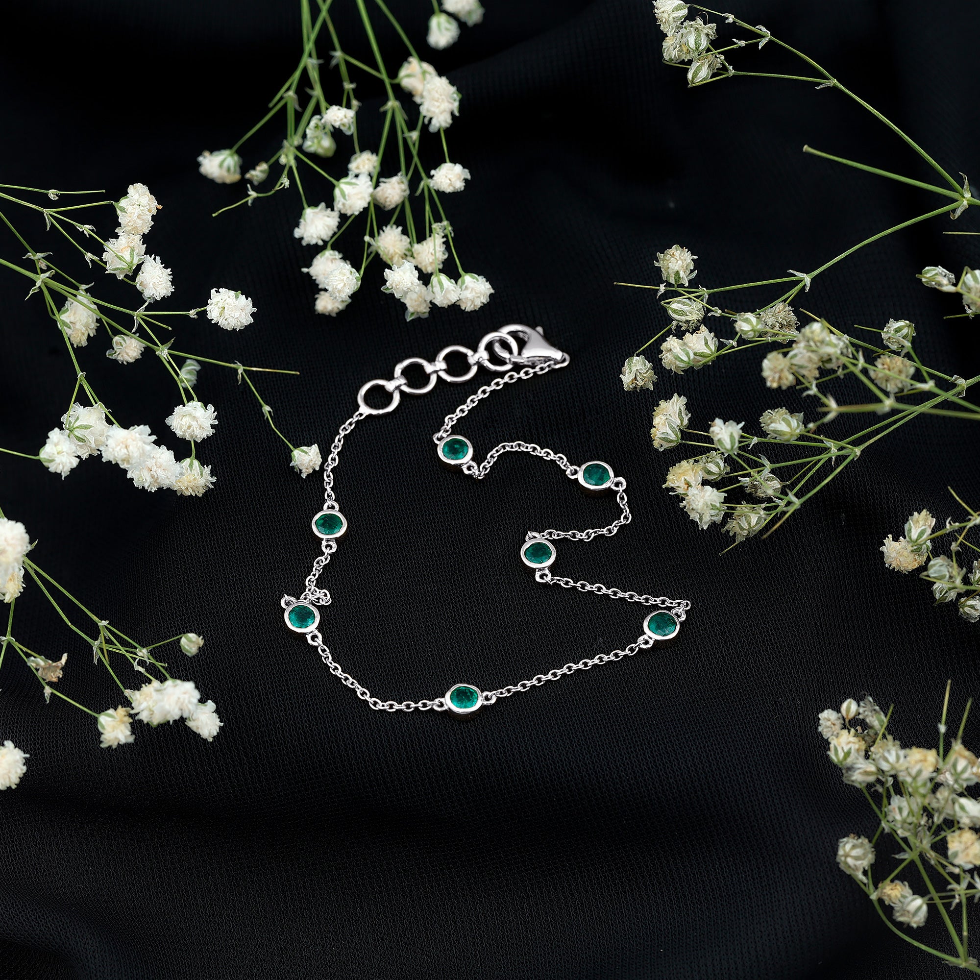 0.75 CT Bezel Set Emerald Seven Stone Station Chain Bracelet