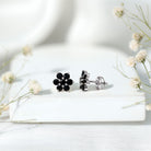 0.75 CT Black Spinel Floral Cluster Stud Earrings