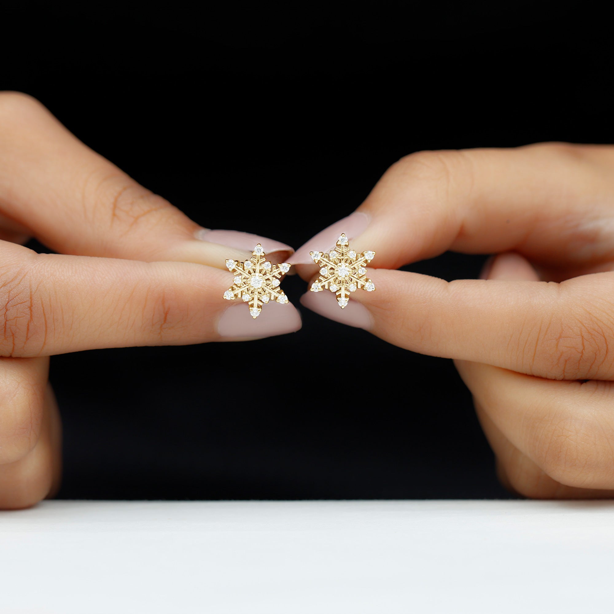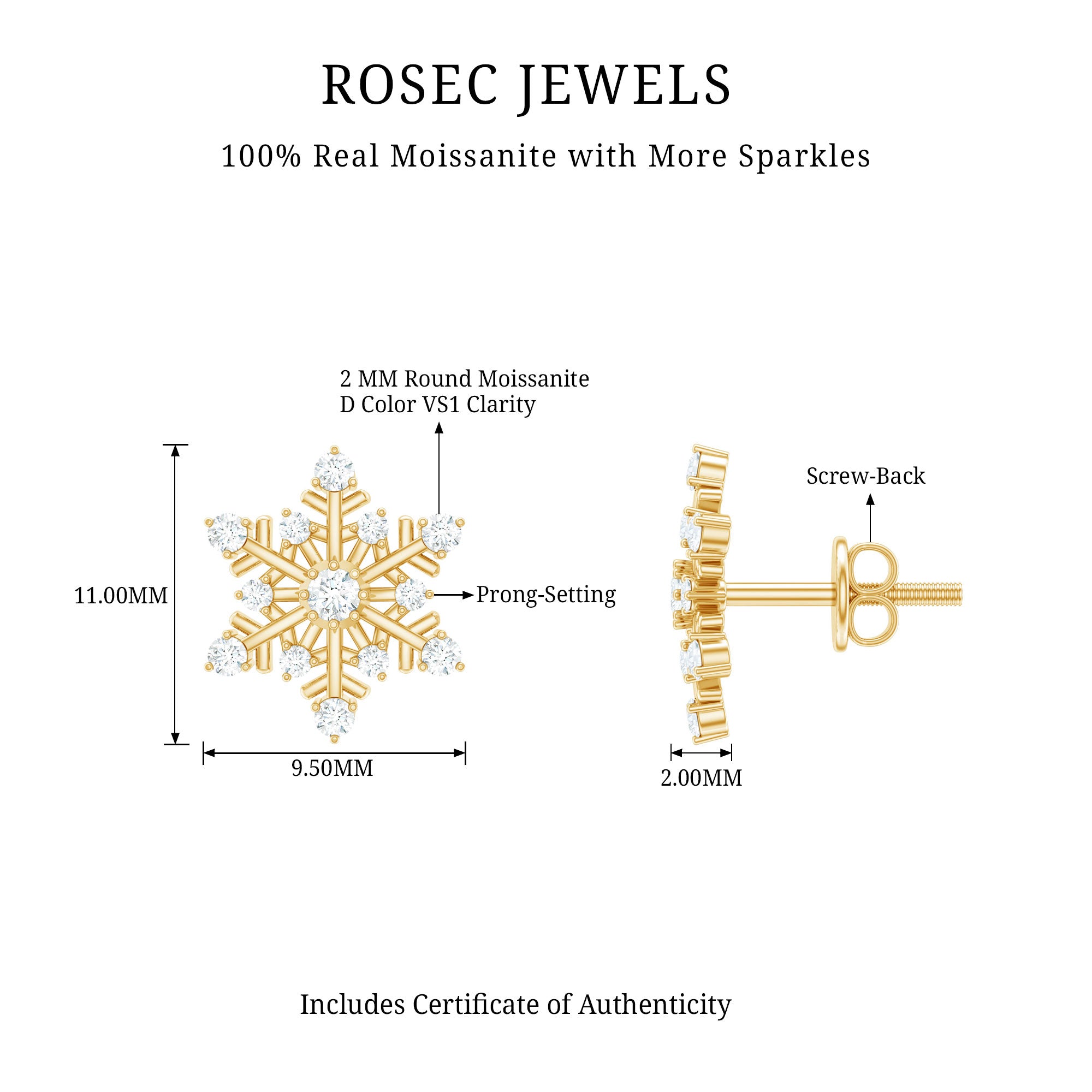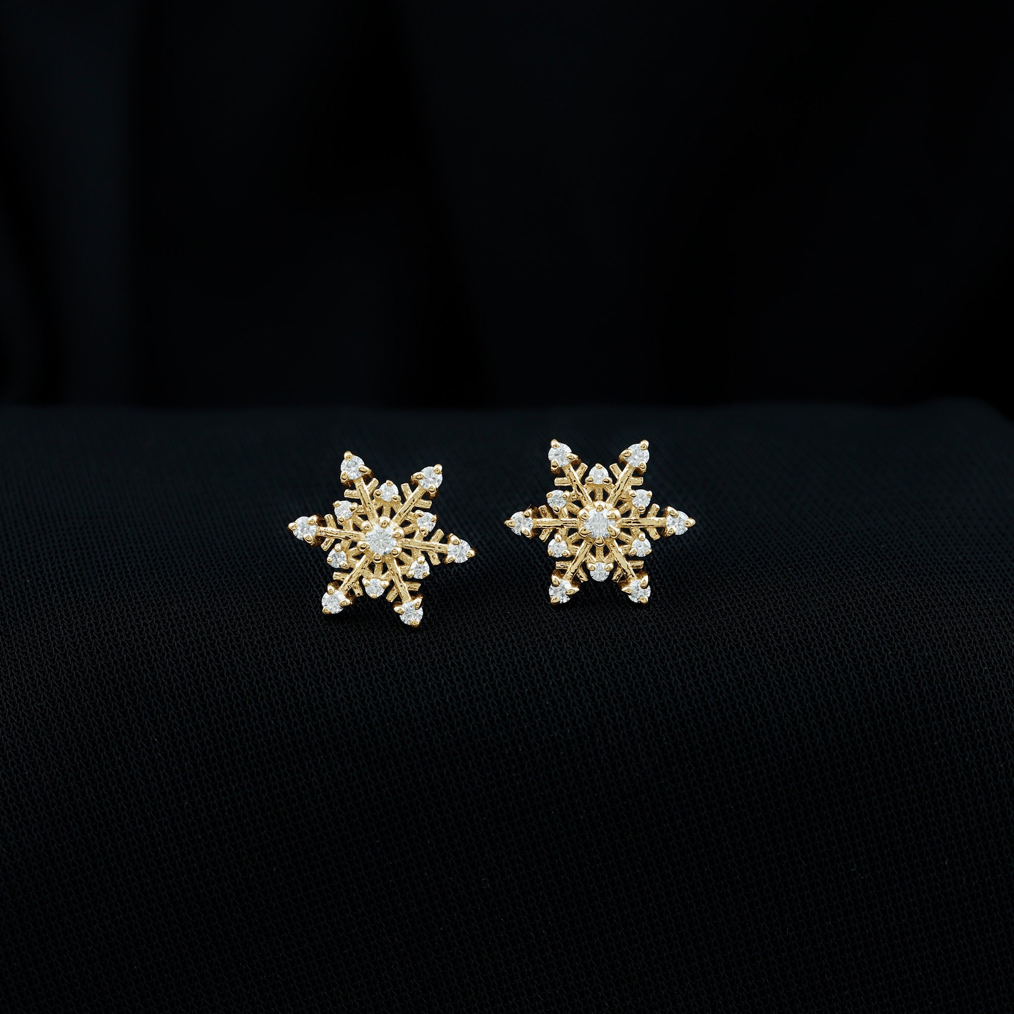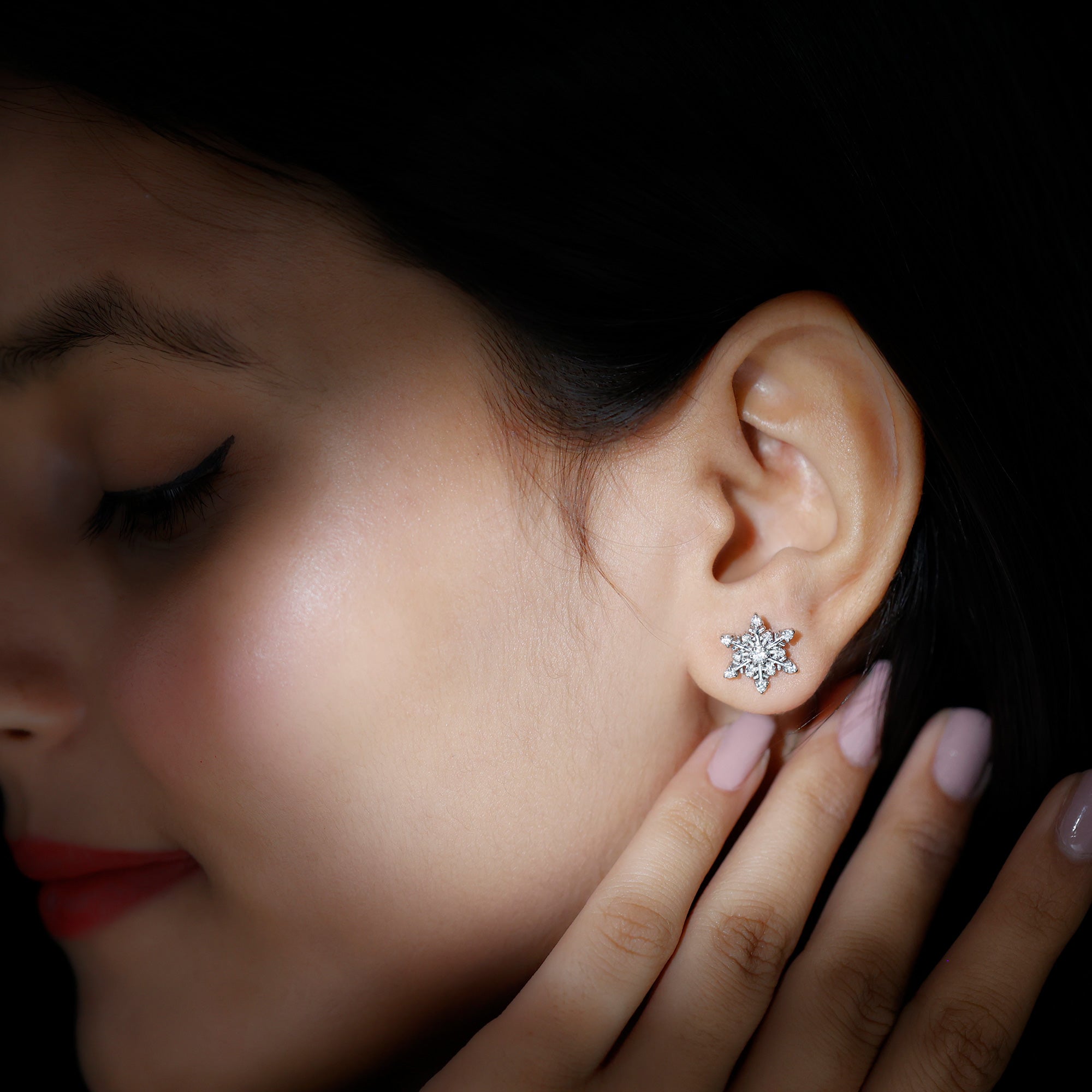 Sparkle like a winter morning with these charming Snowflake Stud Earrings. Designed to bring a soft and magical glow to your style, they capture the quiet beauty of falling snow in a piece you can wear every day. The snowflake shape is crafted with fine detail, creating a delicate and graceful look that feels both festive and timeless. Set at the center and along each tiny branch of the snowflake are brilliant round moissanite stones. Their bright shimmer adds a touch of light to your face, making the Moissanite Earrings perfect for moments when you want something subtle yet eye-catching. Whether you are heading to a cozy holiday gathering, a fun winter date, or simply adding a sweet sparkle to your daily outfit, these Moissanite Stud Earrings bring a gentle charm to every moment. Made with careful craftsmanship, the Snowflake Earrings feel sturdy yet lightweight, making them easy to wear from morning to night. The secure screw-back closure ensures they stay in place comfortably, giving you the confidence to go about your day without worry. Pair them with casual look or dressier outfits, they adapt effortlessly while adding a gentle sparkle every time you wear them.