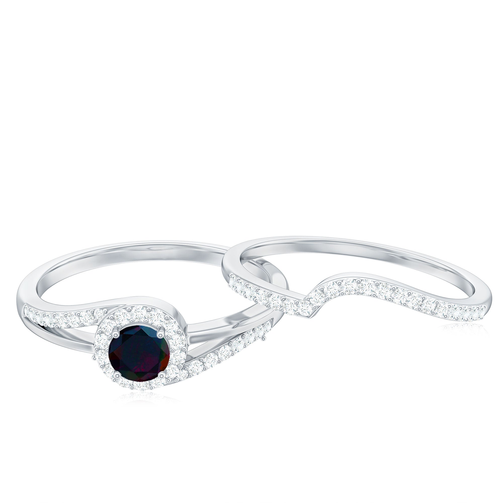 This Engagement Ring with Enhancer is embellished with Round Shape Black Opal is set at the center encircled with Round Shape Diamond and more Diamond are set on the split shank and Enhancer Ring is encased with Round Shape Diamond, crafted in a Solid Gold.