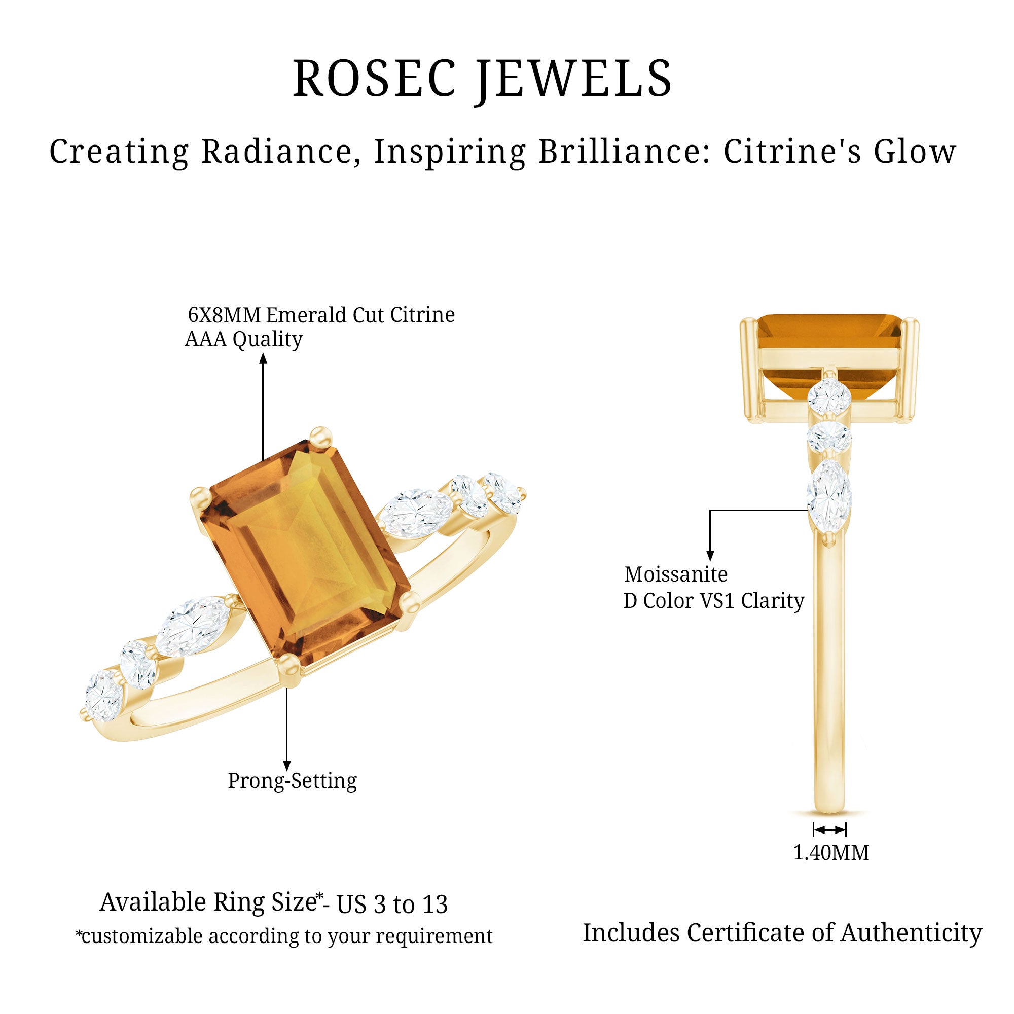 Tell her how much you love her by proposing to her with this alluring Solitaire Promise Ring embellished with Octagon Cut Citrine in Prong Setting with Round and Marquise Cut Moissanite Stones for extra sparkle and elegance. Crafted with Gold, this Citrine Promise Ring will be a perfect choice for her. This Citrine Ring will make her fall in love with you.