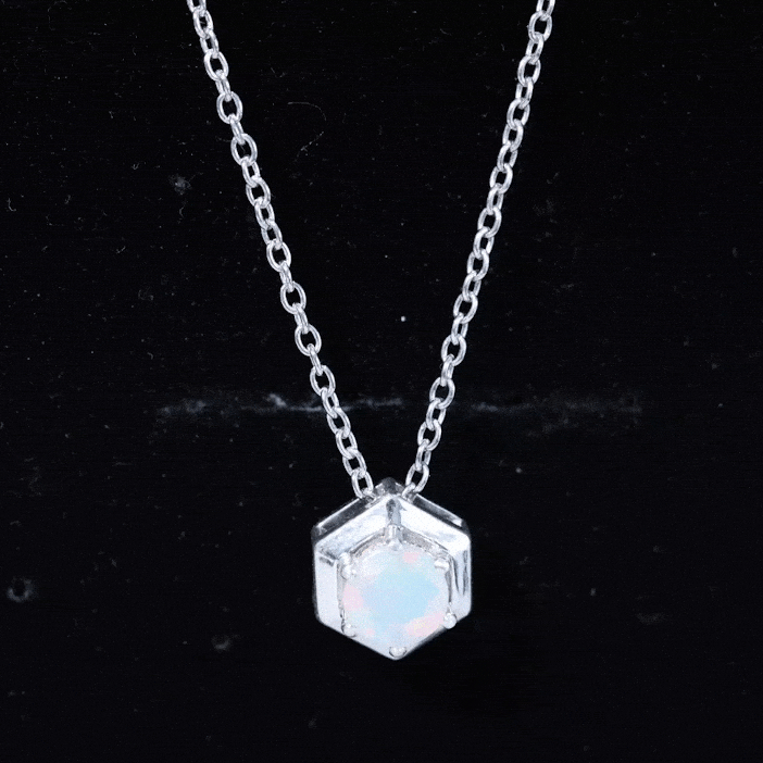 Radiate grace with our Ethiopian Opal Solitaire Hexagon Pendant Necklace. Captivating beauty that adds a touch of allure to any ensemble.