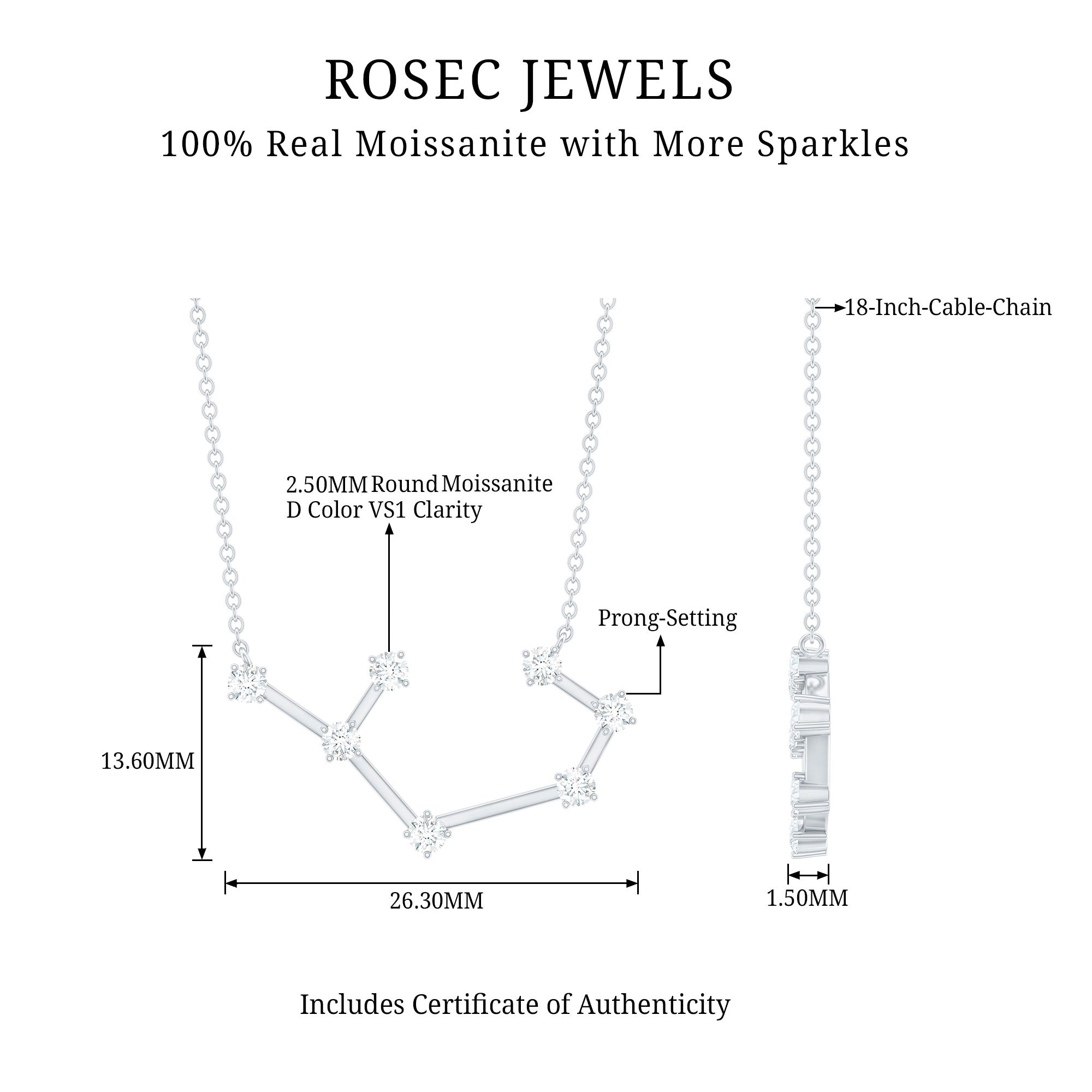0.75 CT Moissanite Constellation Sagittarius Zodiac Sign Necklace