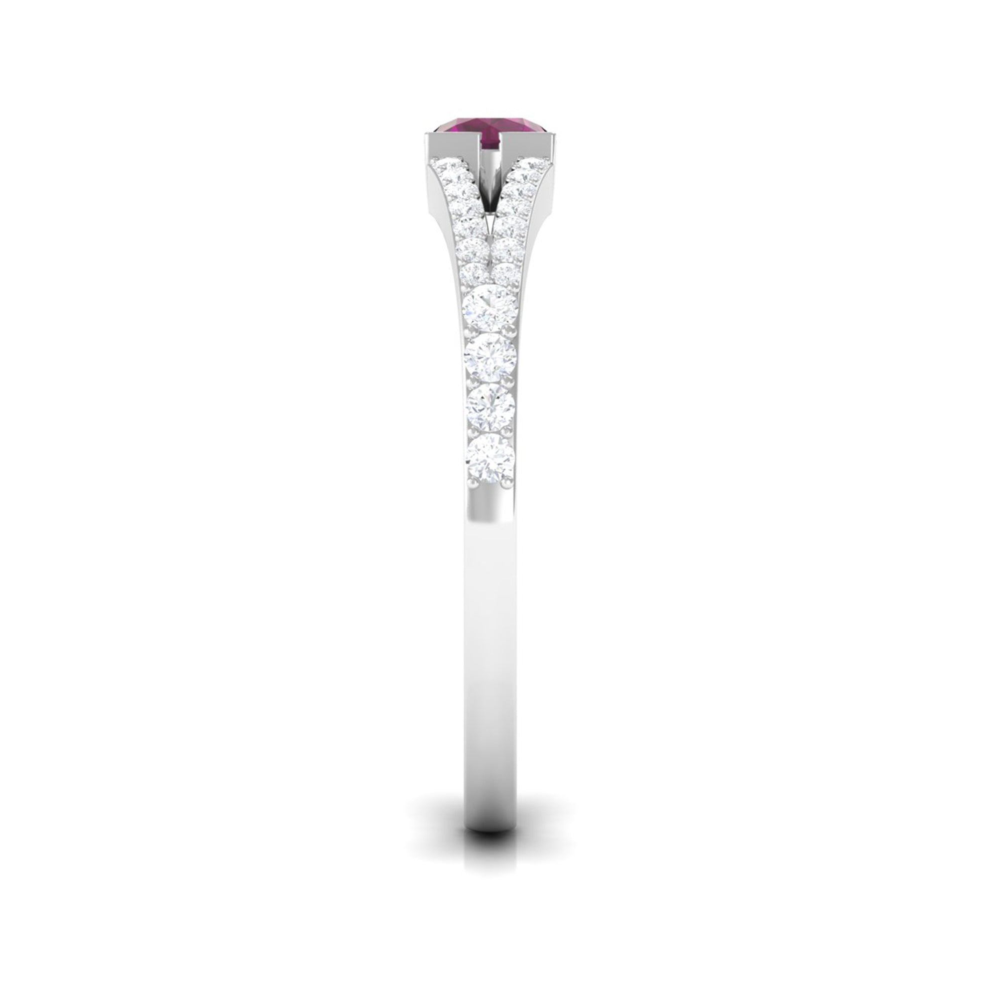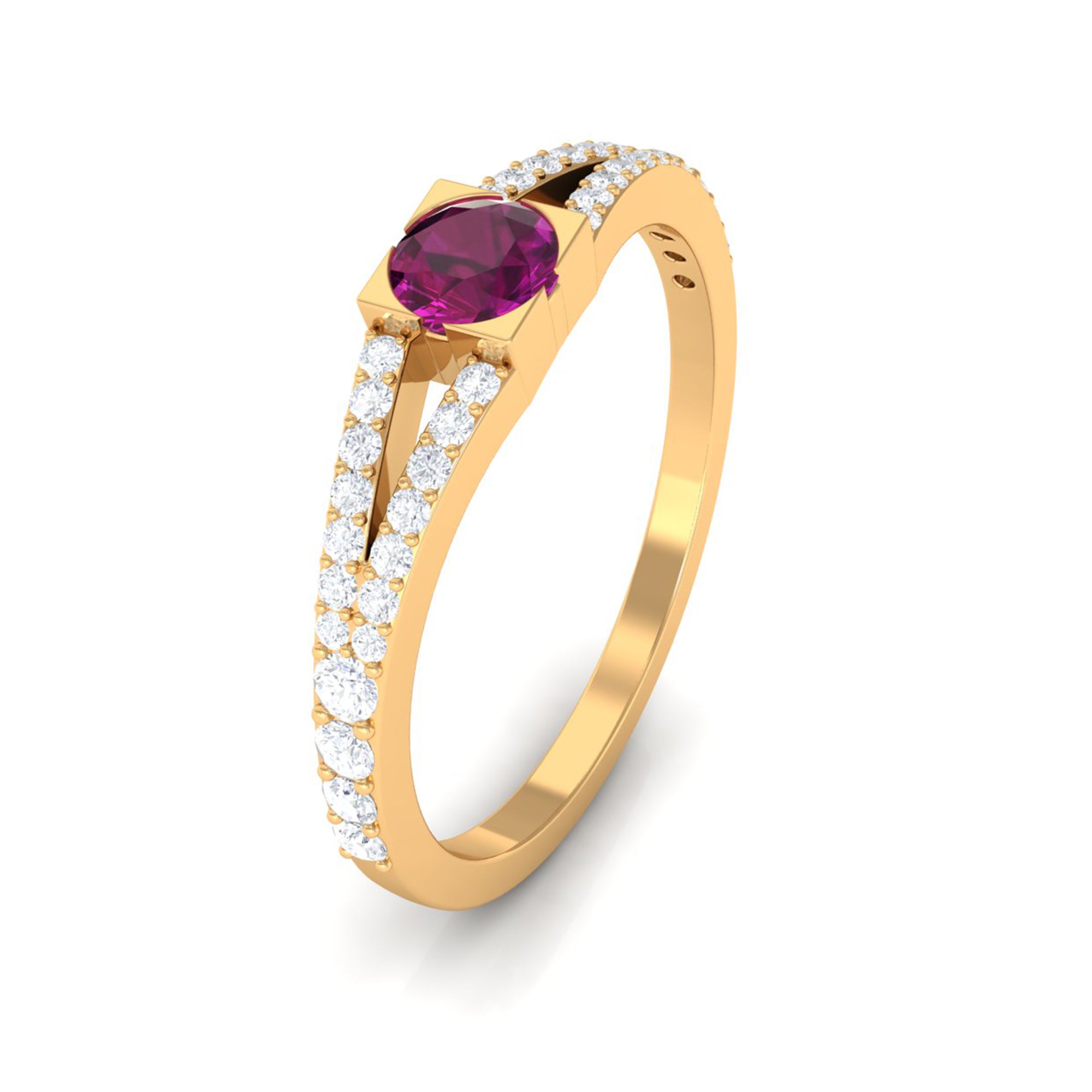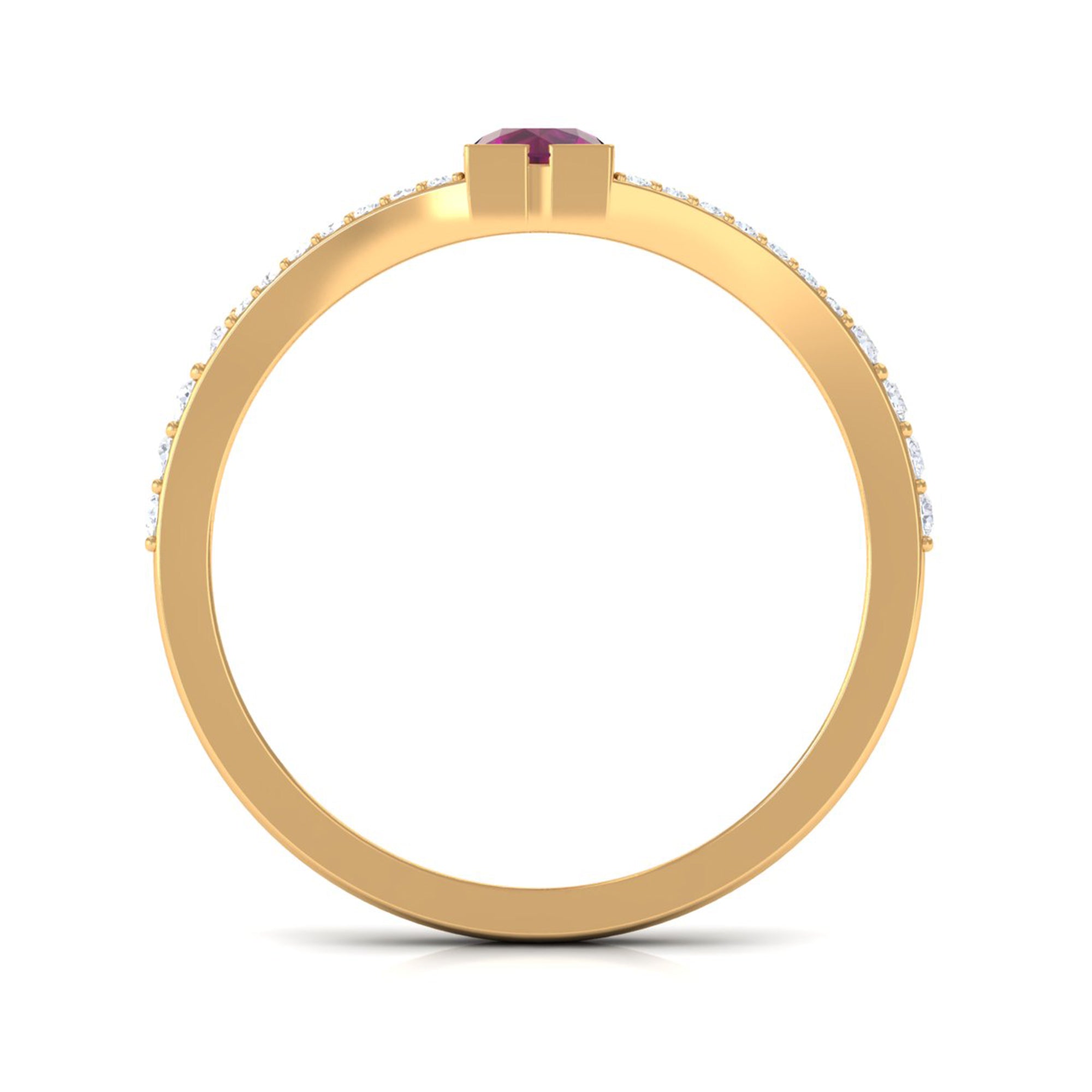 0.75 CT Natural Rhodolite Minimal Promise Ring with Diamond