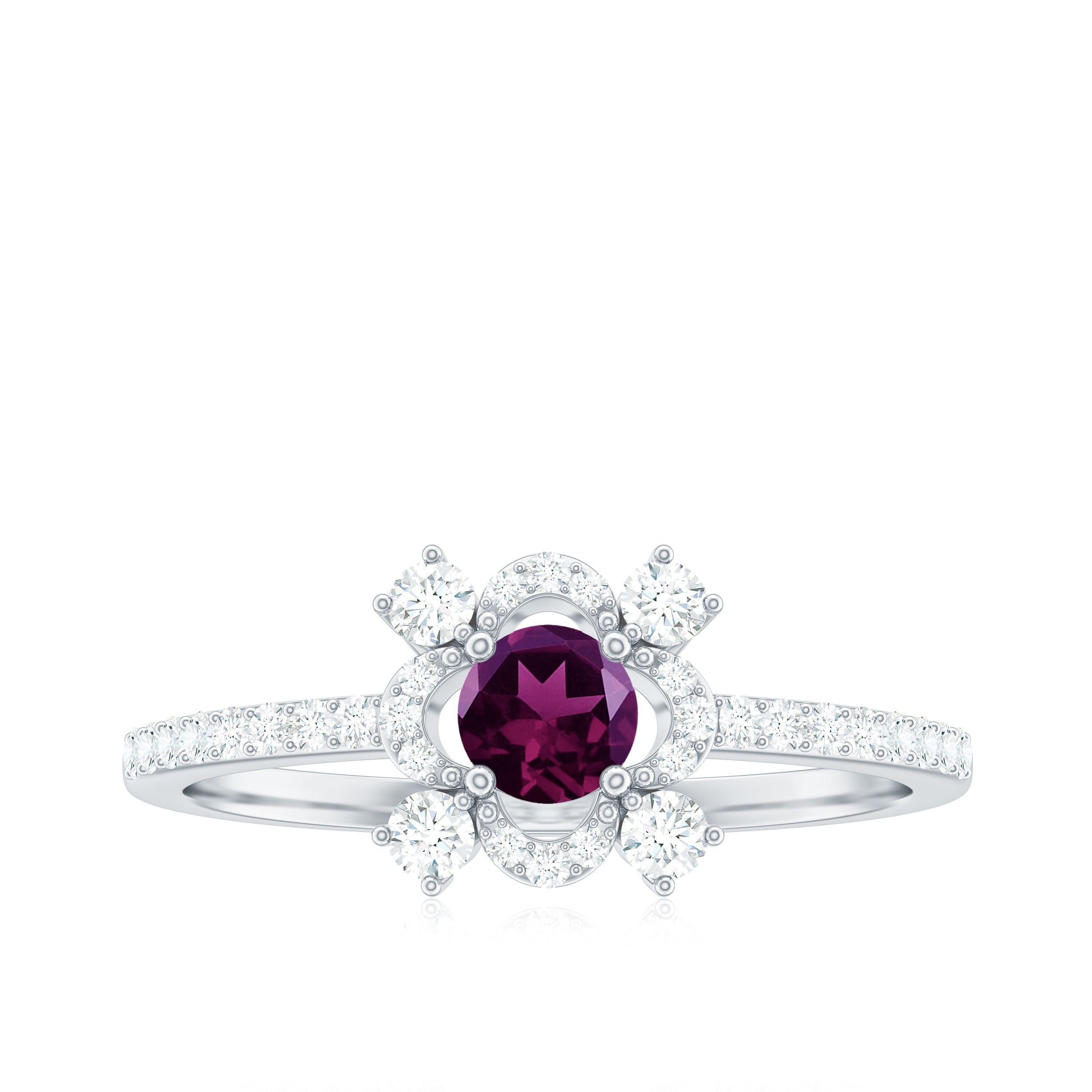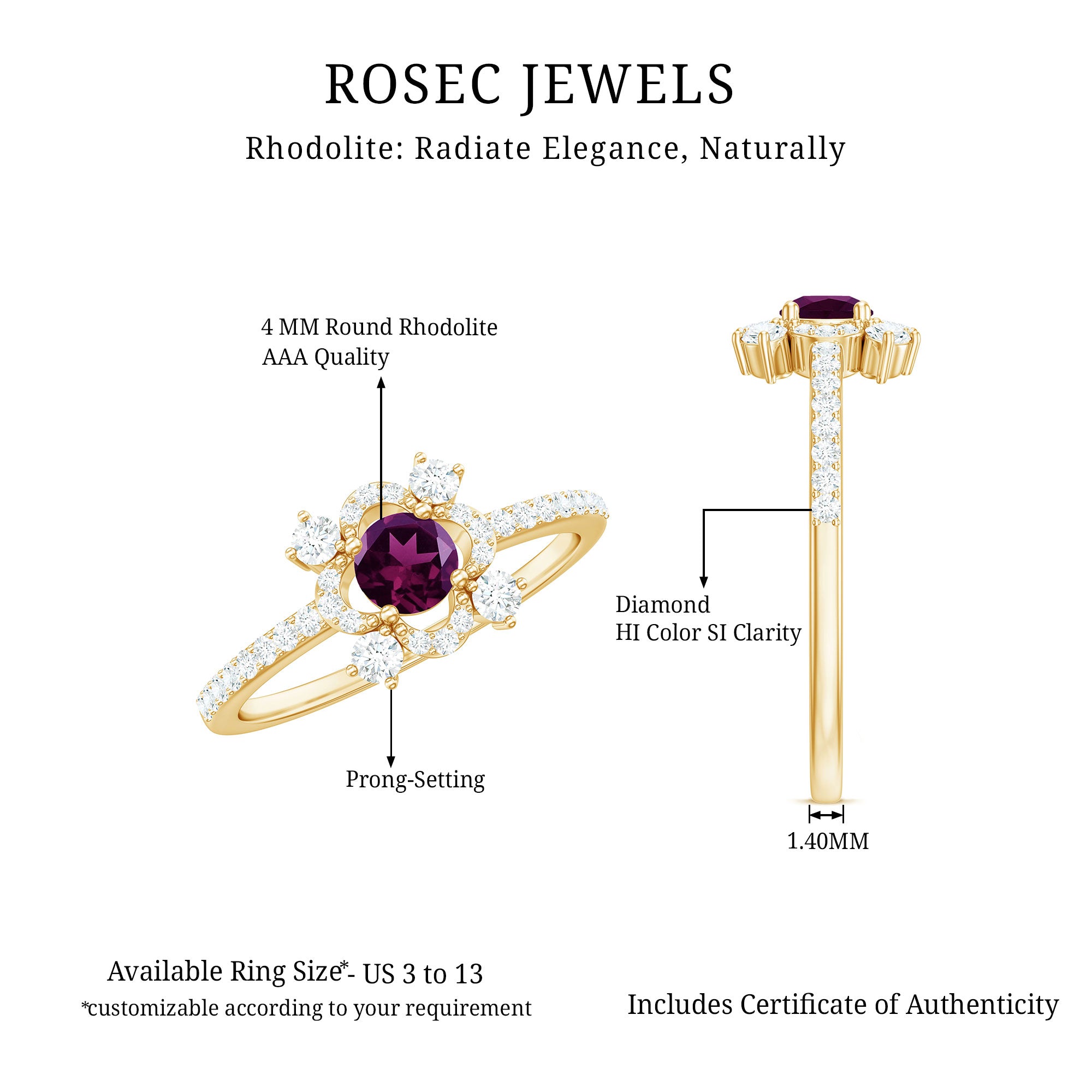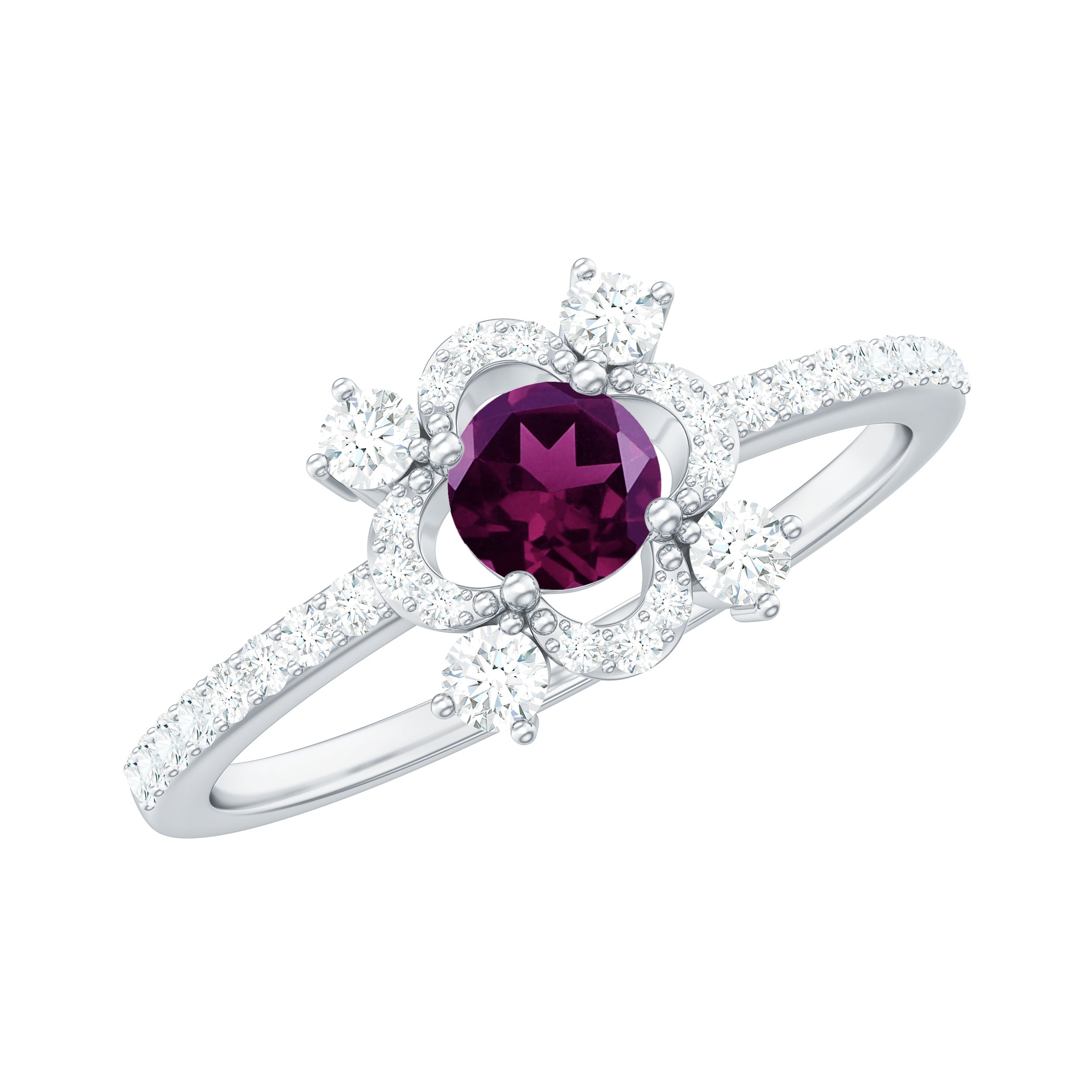 0.75 CT Natural Rhodolite Minimal Ring with Diamond Accent