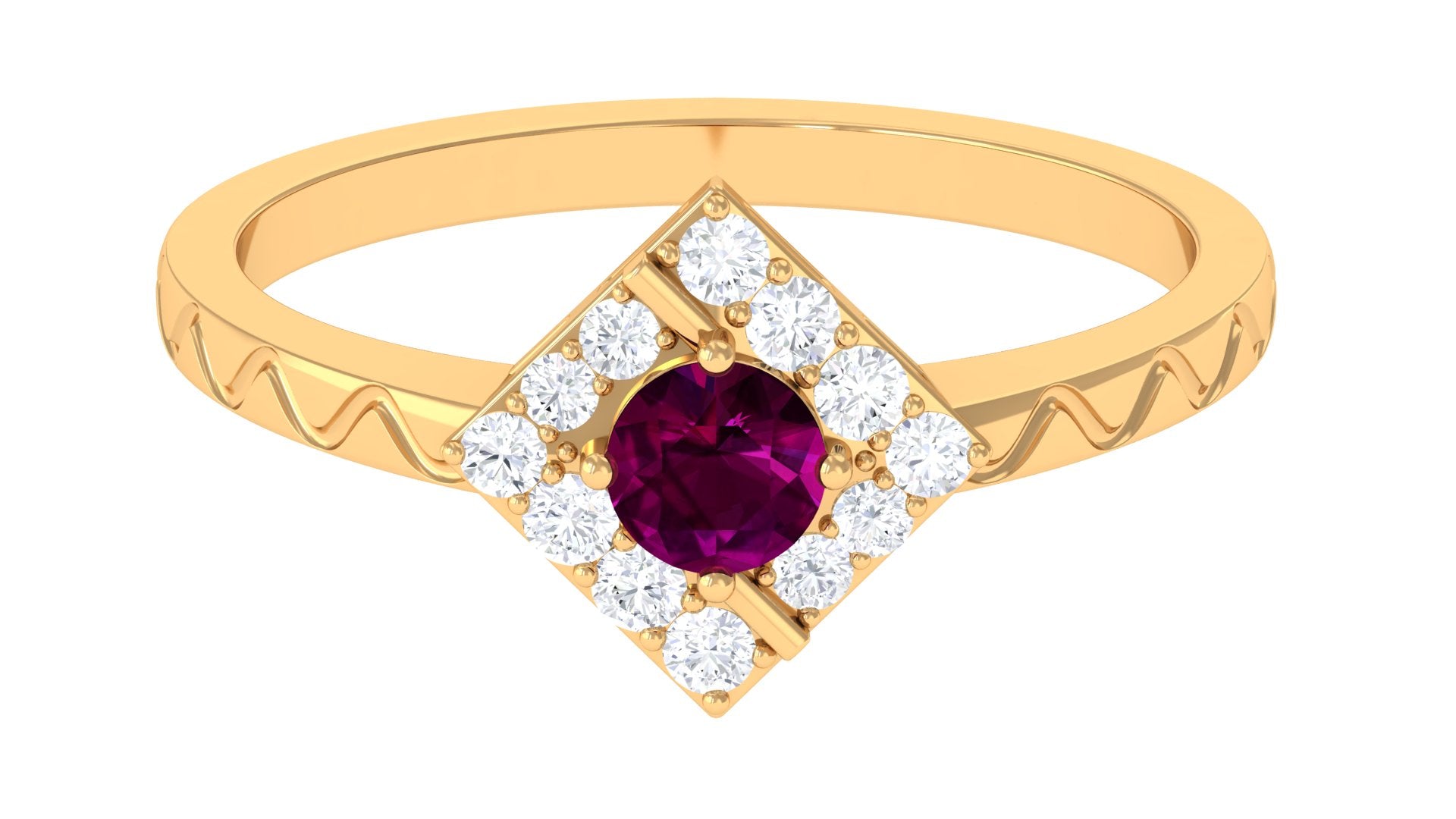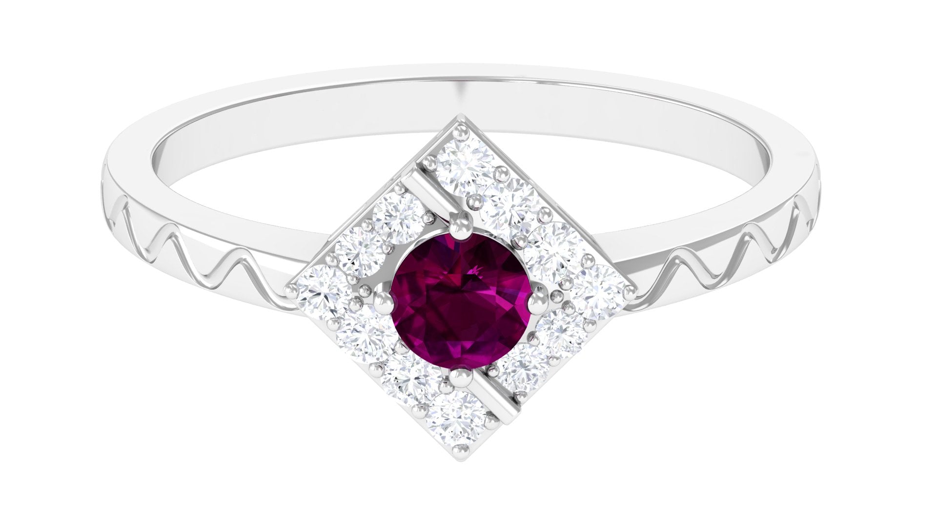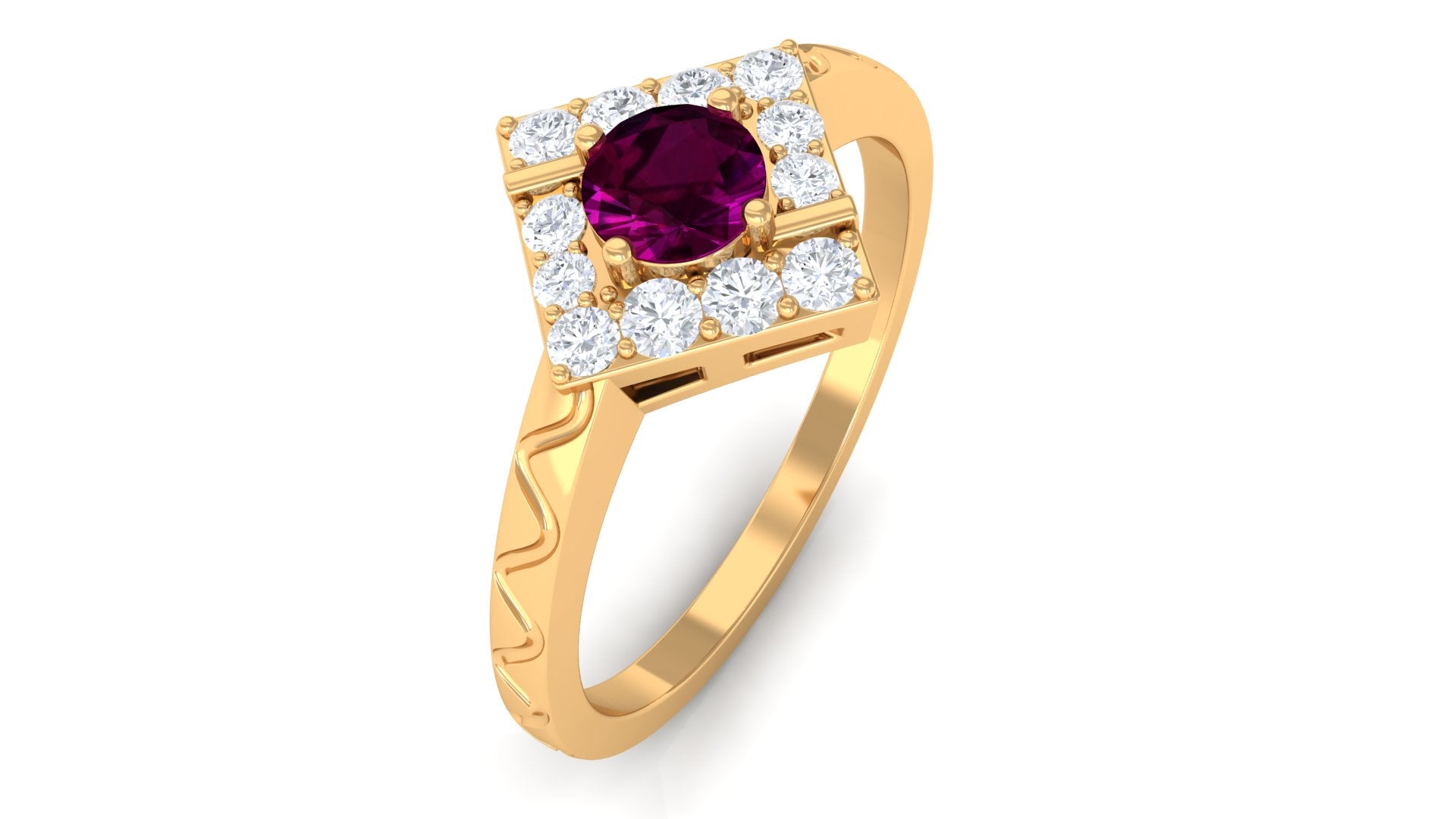 0.75 CT Natural Rhodolite Textured Ring with Diamond Stones