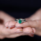 Oval Cut Emerald Solitaire Engagement Ring with Bow Design