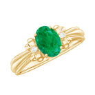 Every love story shines brighter with a ring that captures its magic, and this Oval Emerald Engagement Ring does just that. It is embellished with a beautiful 5X7 MM oval shaped Emerald, set in secure prong setting as a solitaire. The design is both elegant and meaningful, making it perfect for someone who appreciates timeless beauty with a touch of modern charm. What makes this Solitaire Emerald Ring truly special is its bow design. On each side of the center Emerald, delicate bow shapes are set with small and sparkling Diamonds that add a hint of playfulness and romance. These fine details give the Oval Engagement Ring a graceful and unique character, making it stand out while staying effortlessly elegant. The AAA quality Emerald and HI-SI quality Diamond combination creates a radiant sparkle that catches the light from every angle, offering just the right amount of brilliance without being overwhelming. Crafted with care and precision, this Emerald and Diamond Engagement Ring is designed to be both beautiful and comfortable for everyday wear. Available in US sizes 3 to 13, the Bow Ring comes in a beautifully packaged jewelry box, ready to gift.