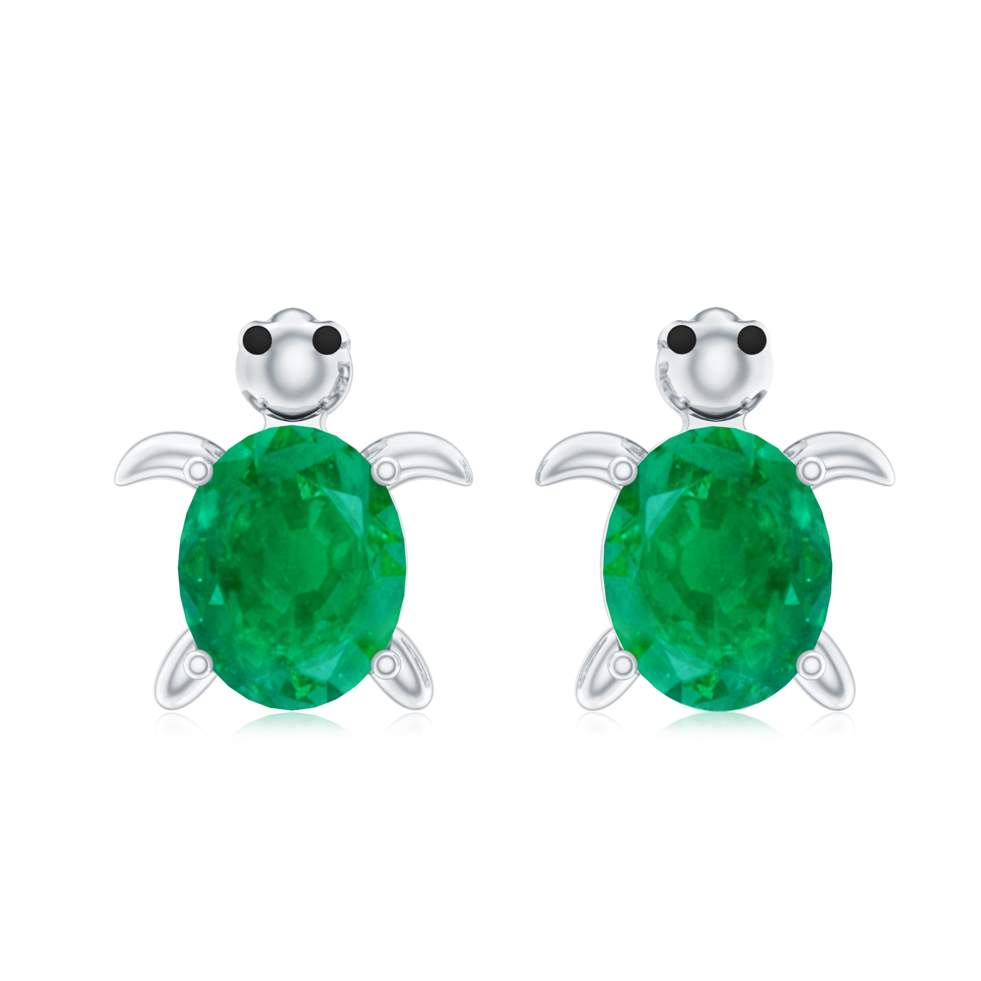 0.75 CT Oval Shaped Emerald Solitaire Turtle Stud Earrings