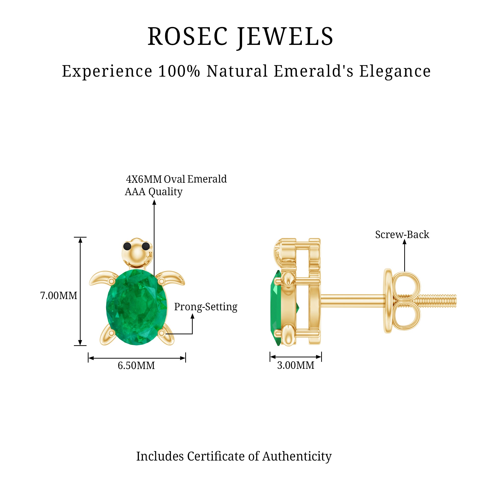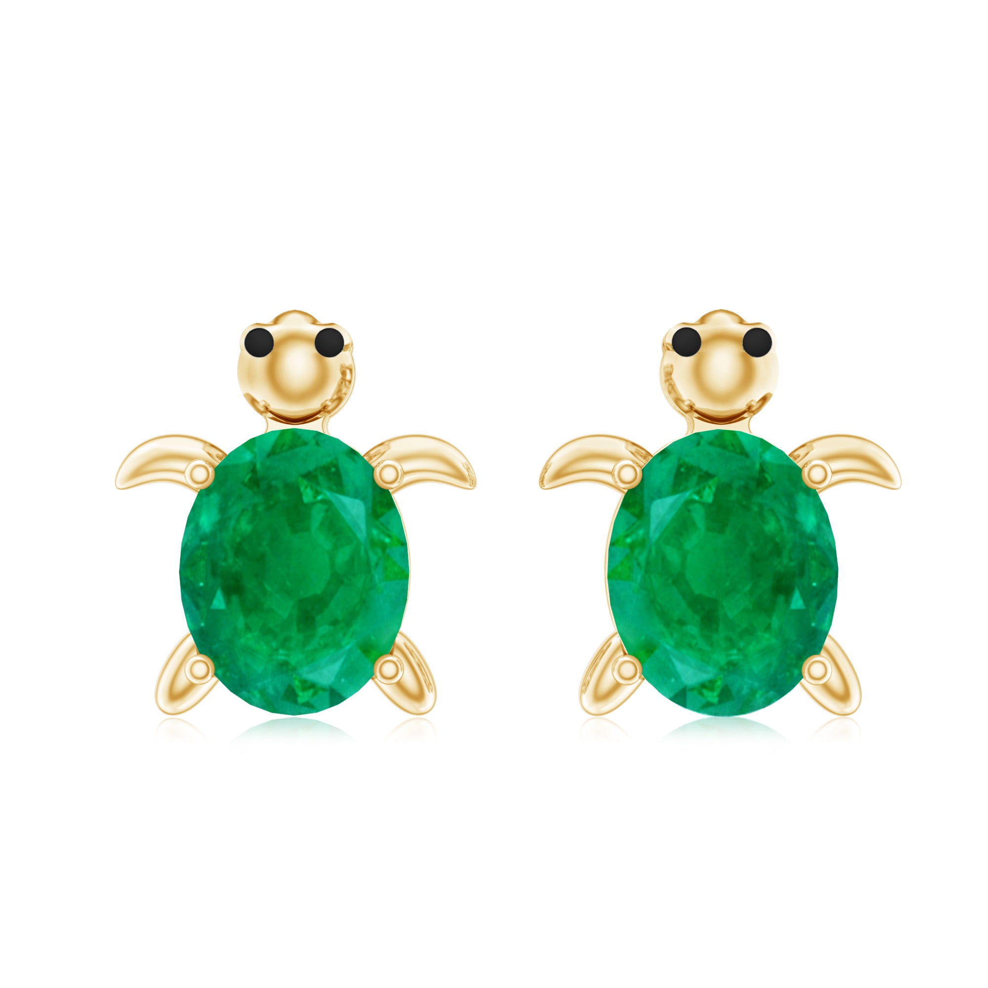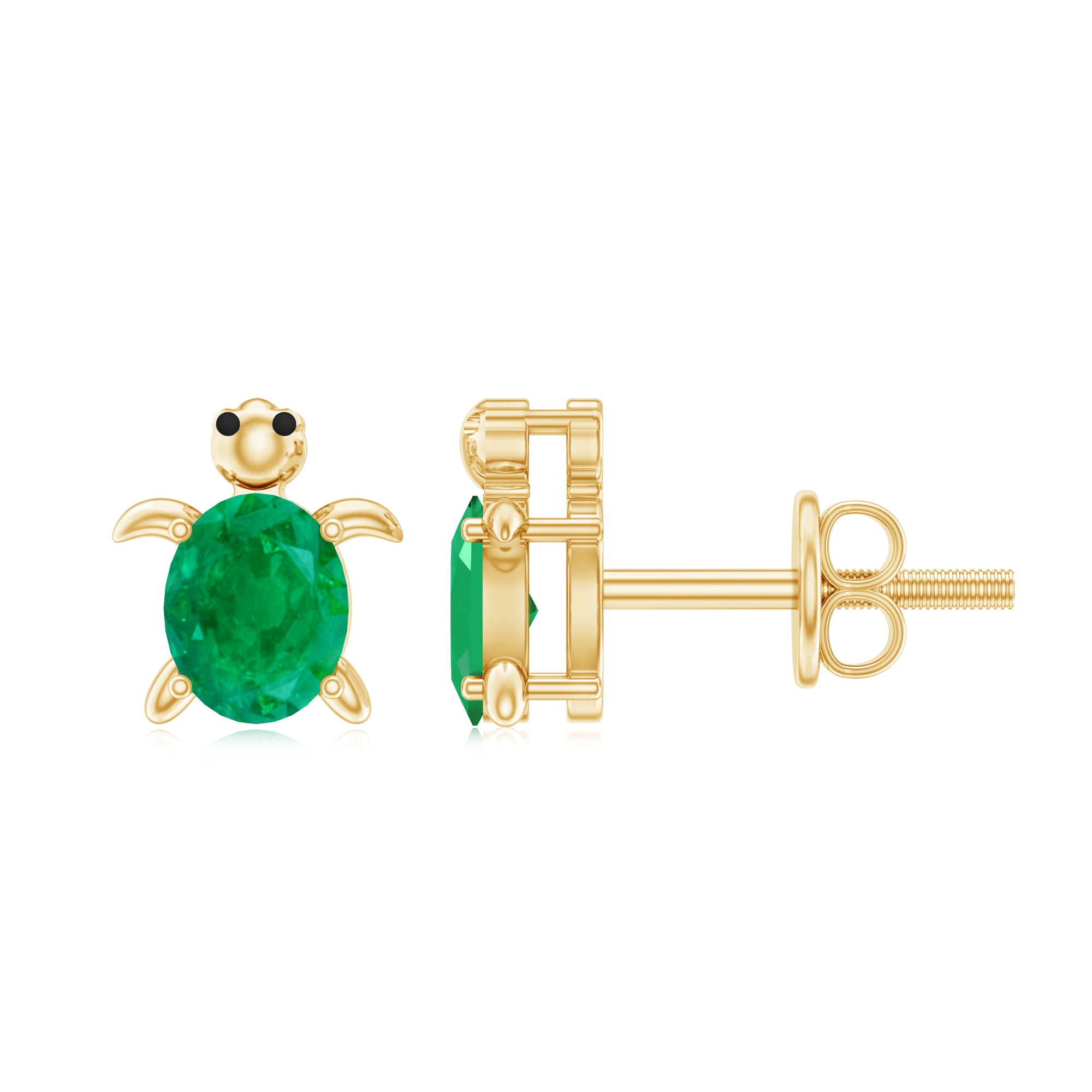 Crafted from gold, these Turtle Stud Earrings feature an oval-shaped emerald gemstone set in a four-prong setting at the center of the Turtle design, creating a stunning look. The emerald stud earrings are securely fastened with a screw-back closure, making them safe for women. This Birthstone Stud Earring is available in rose, yellow, and white gold.