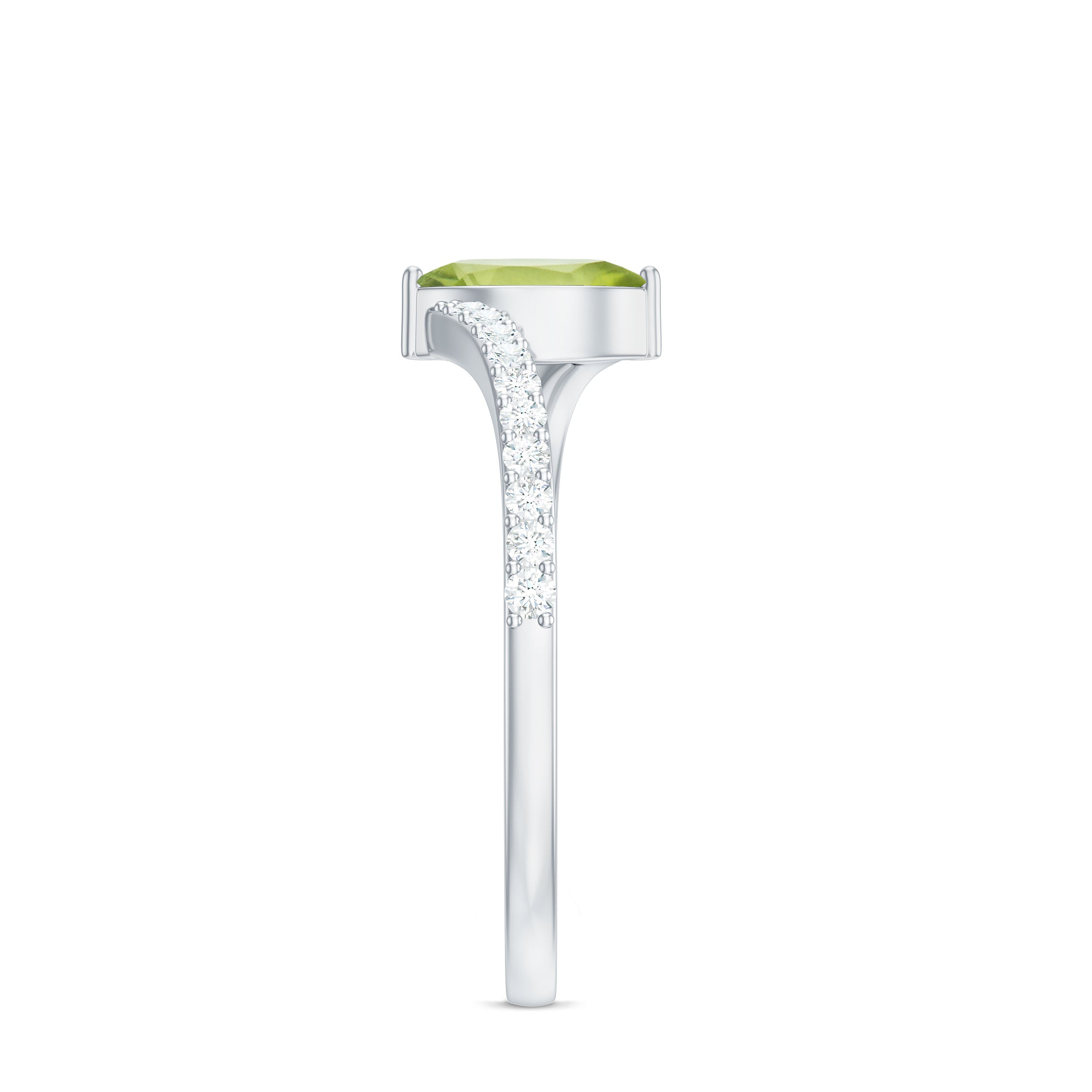 0.75 CT Peridot Bypass Engagement Ring with Diamond Accent