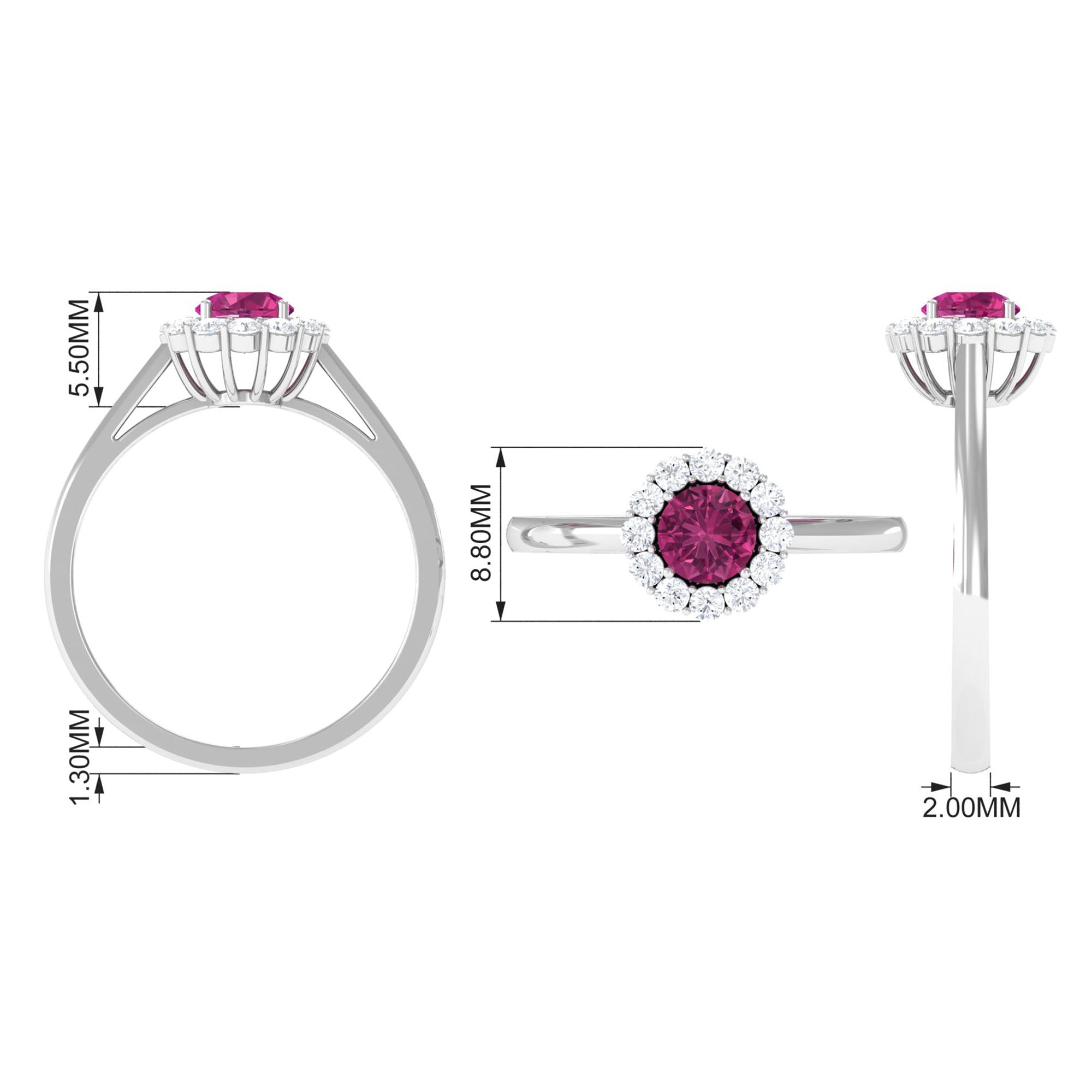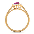 Enhance your beauty with Floating Halo Engagement Ring is embellished with Round Shape Pink Tourmaline Set as a solitaire in a prong setting and Round Shape Diamond in a floating Halo. This Engagement Ring is composed of solid gold.