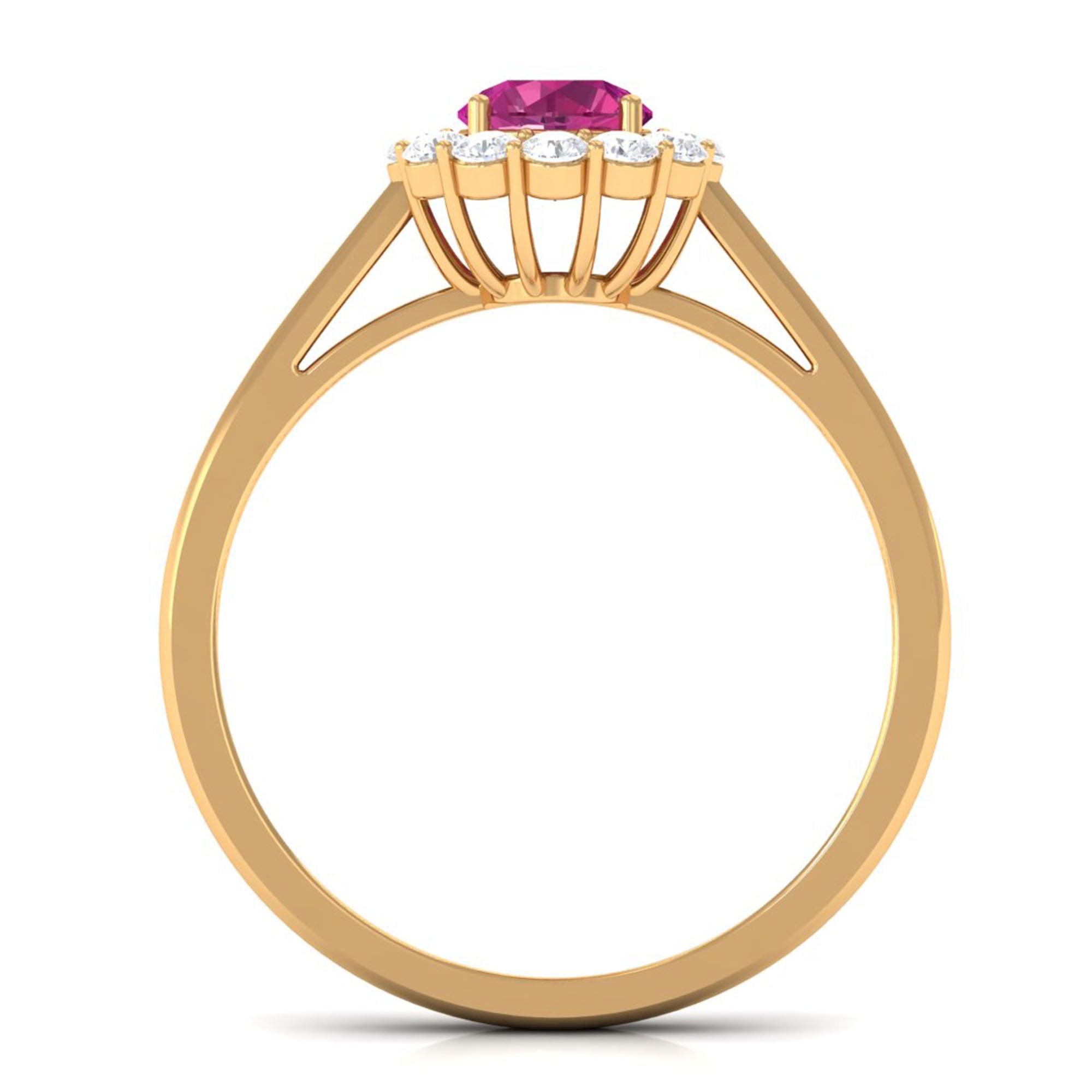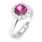 0.75 CT Pink Tourmaline and Diamond Floating Halo Engagement Ring