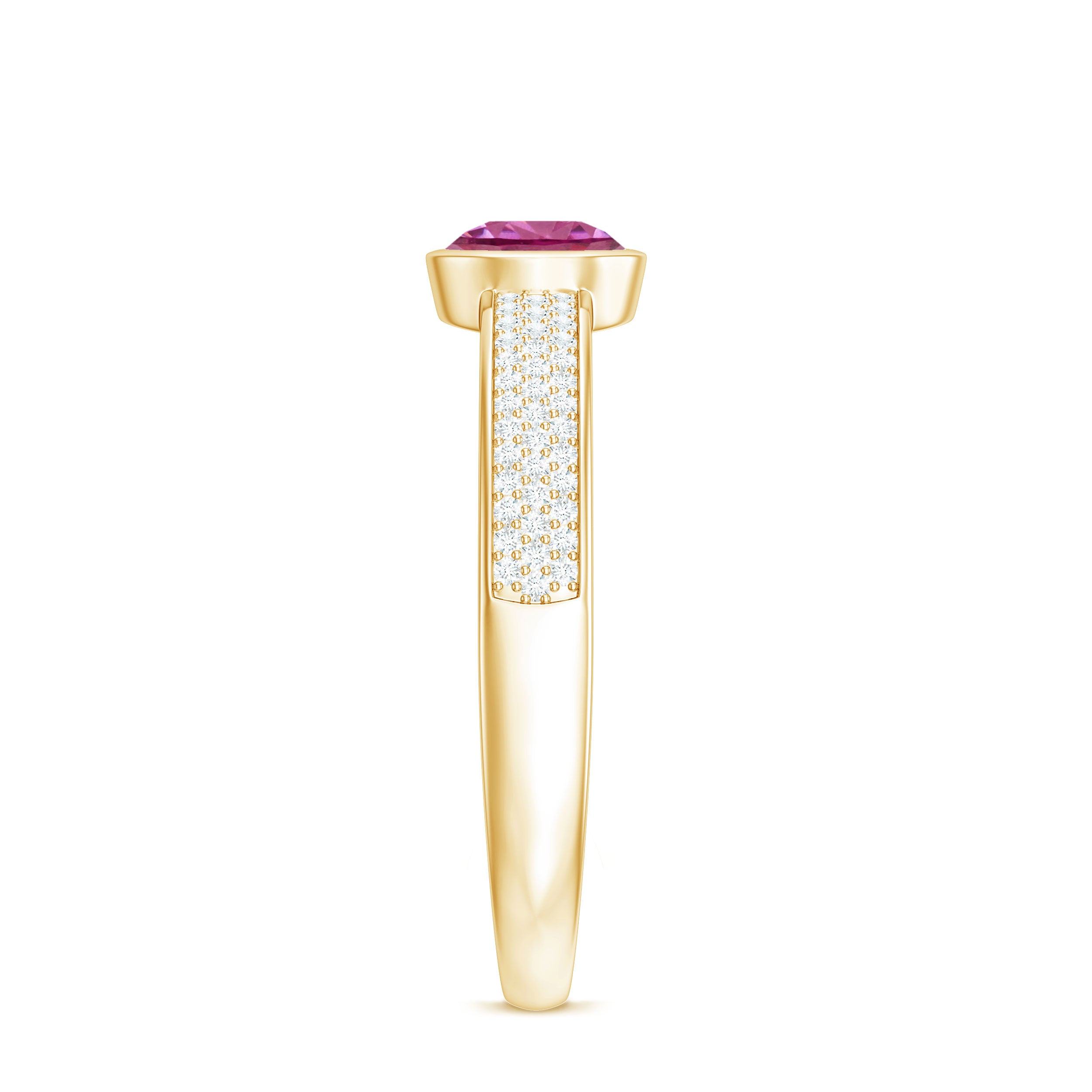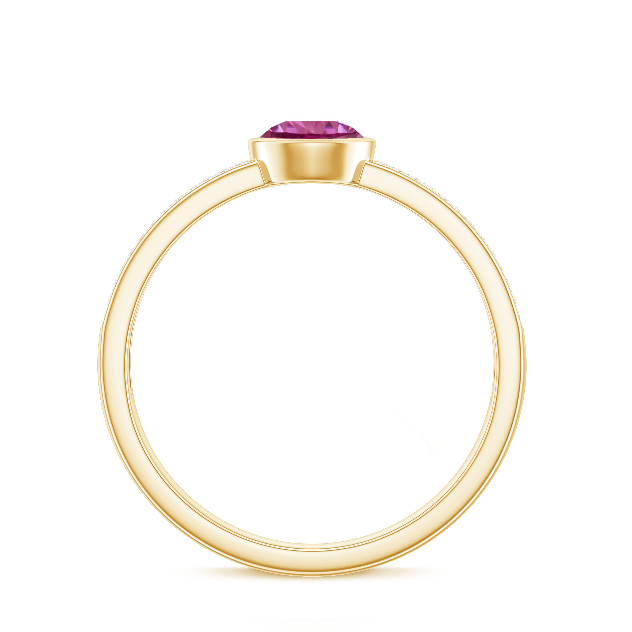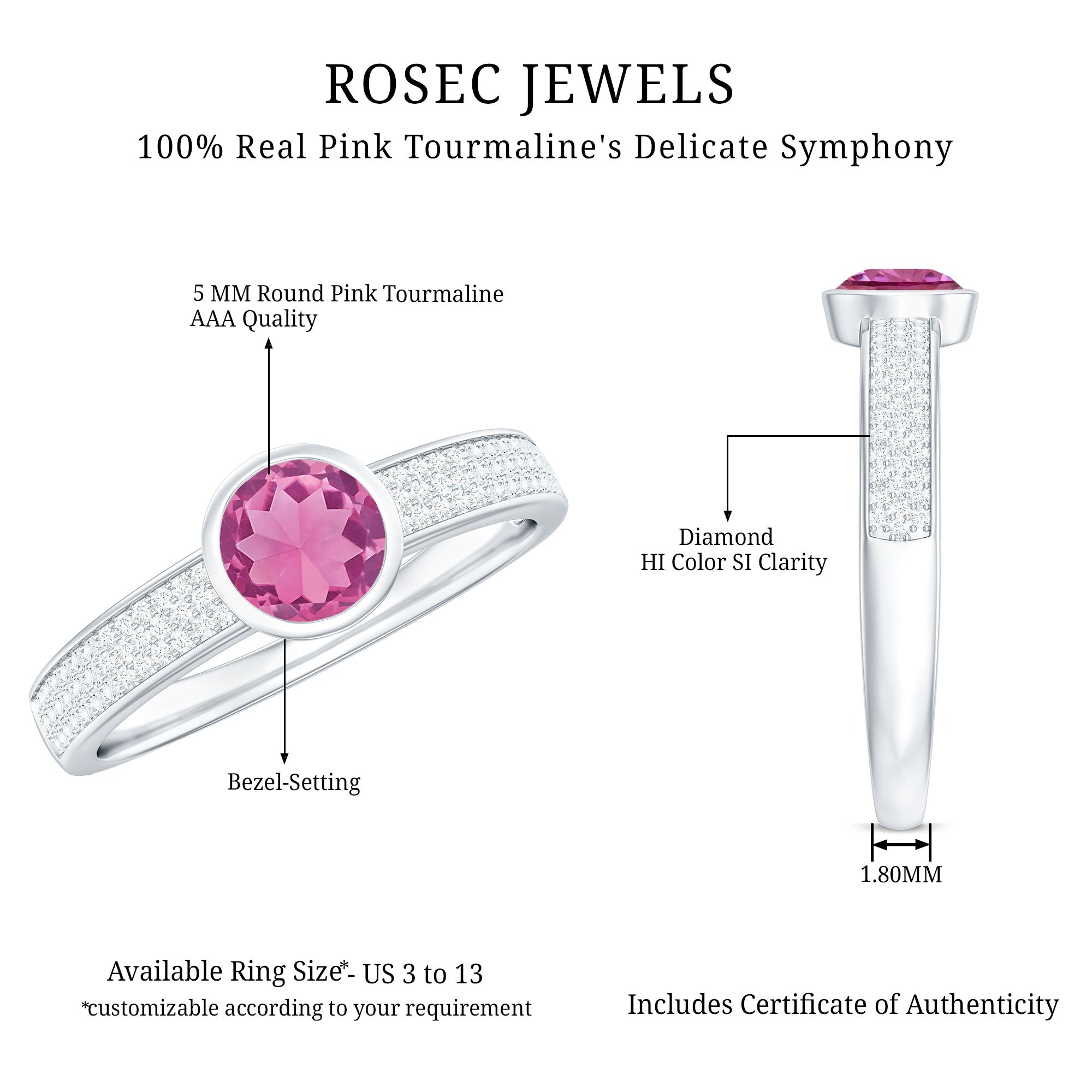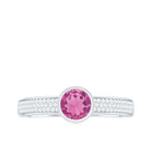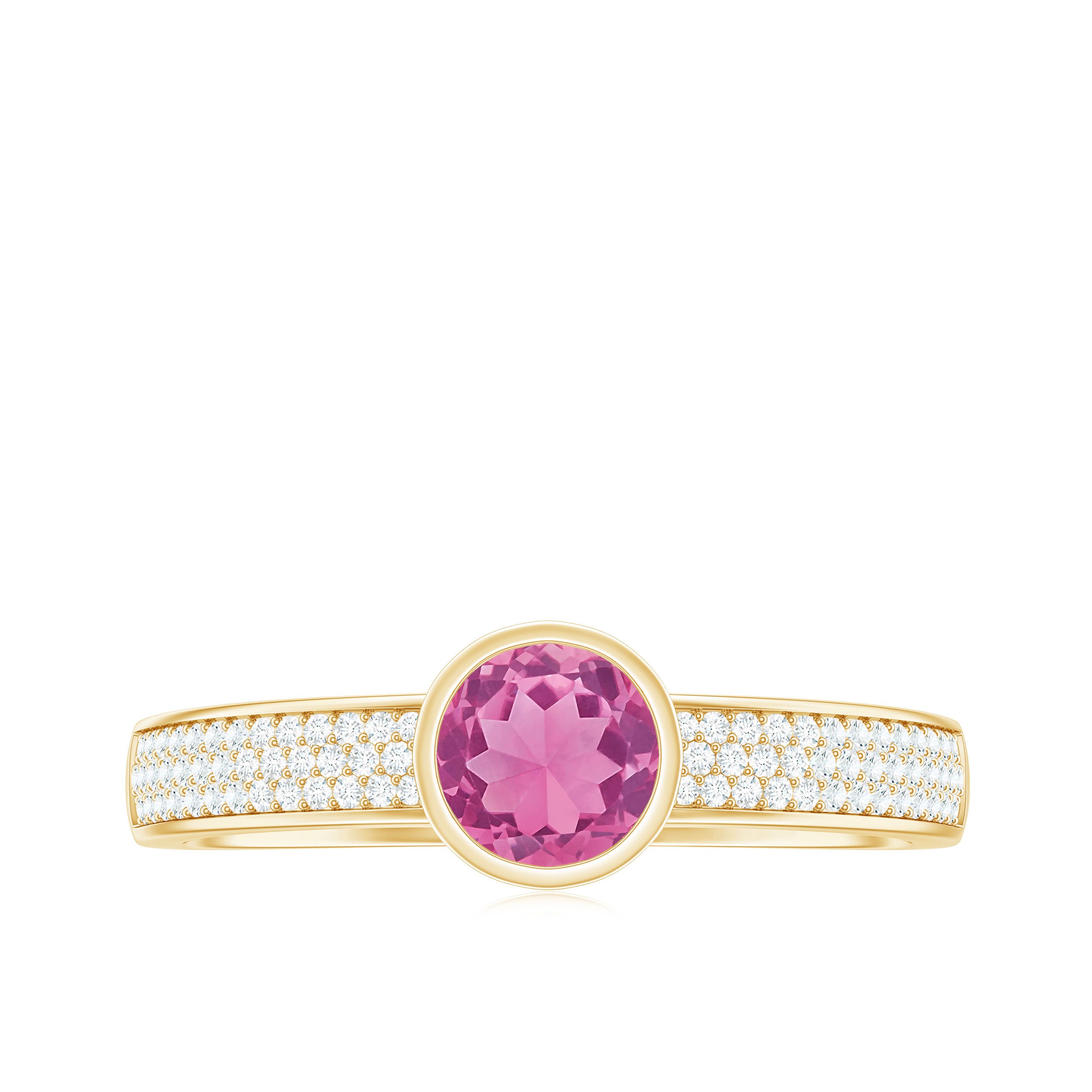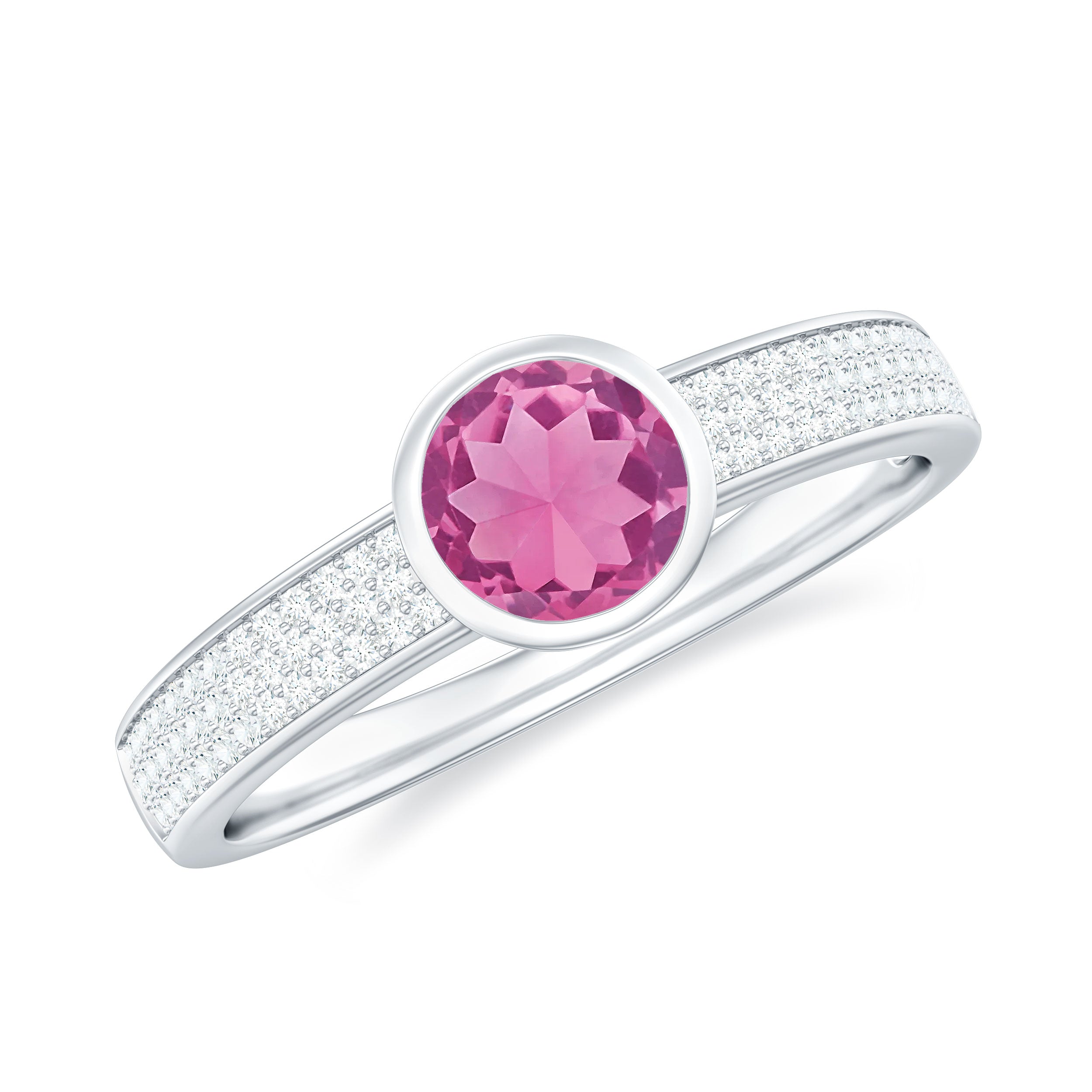 A Lovely and Beautiful Solitaire Ring has been embellished with Round Shape Pink Tourmaline set as a solitaire in a bezel setting and Round Shape Diamond as Side Stone. This Solitaire Ring is available in solid gold.