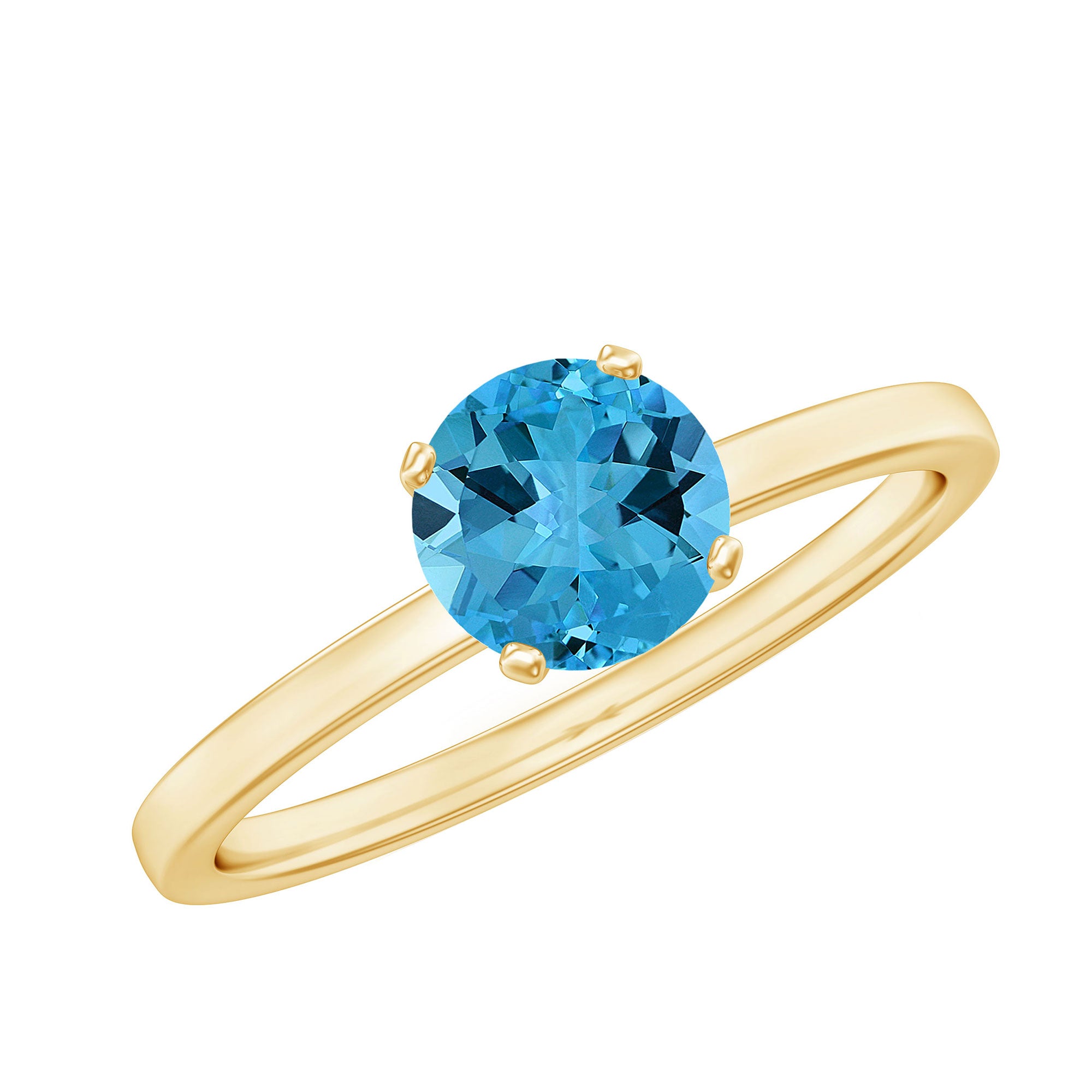 Known as a Promise Ring for Women, it is set in Solid Gold and consists of a Round Cut Swiss Blue Topaz as Solitaire embellished in Prong Setting.