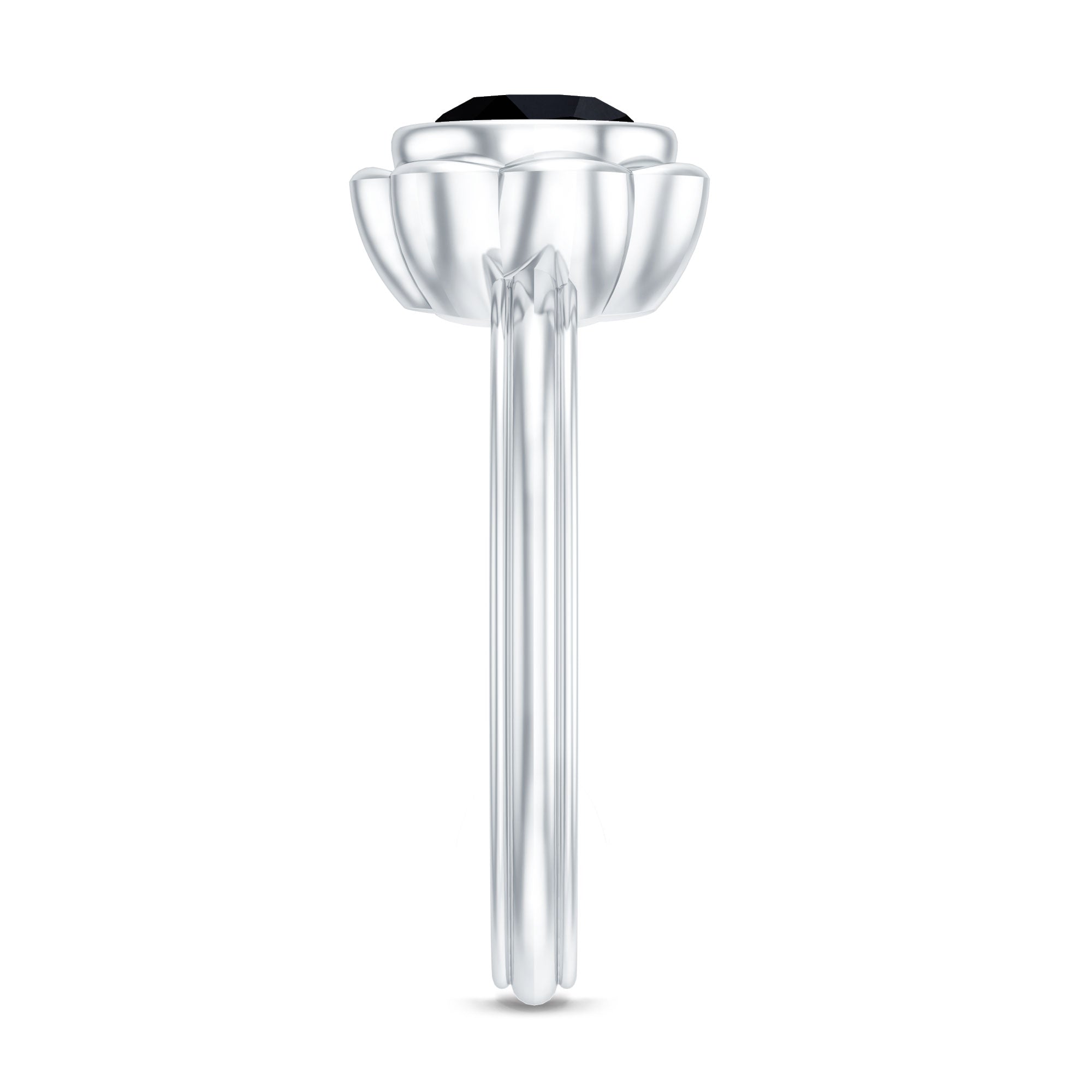 The Black Onyx Engagement Ring is a stunning design inspired by nature, bringing beauty back to life. With its harmonious details, it tells a unique story. At its heart is a 7 MM Round Shape Black Onyx set in Bezel Setting, surrounded by metal petals resembling a flower. This Nature Engagement Ring embodies balance and tranquility, celebrating love in its purest form. With a subtle touch, this Flower Engagement Ring features a floral pattern that adds a touch of elegance to its overall appearance. This floral inspired design is both captivating and timeless, making your proposal unforgettable. The show-stopping Solitaire Engagement Ring is a romantic piece of jewelry that reflects the wild beauty of nature. Whether you are gifting it or proposing to your forever love, this Black Onyx Ring comes beautifully packaged in an elegant jewelry box and is available in US sizes 3 to 13. Romantic, graceful, and charming, this ring is a love story blossoming on your finger.