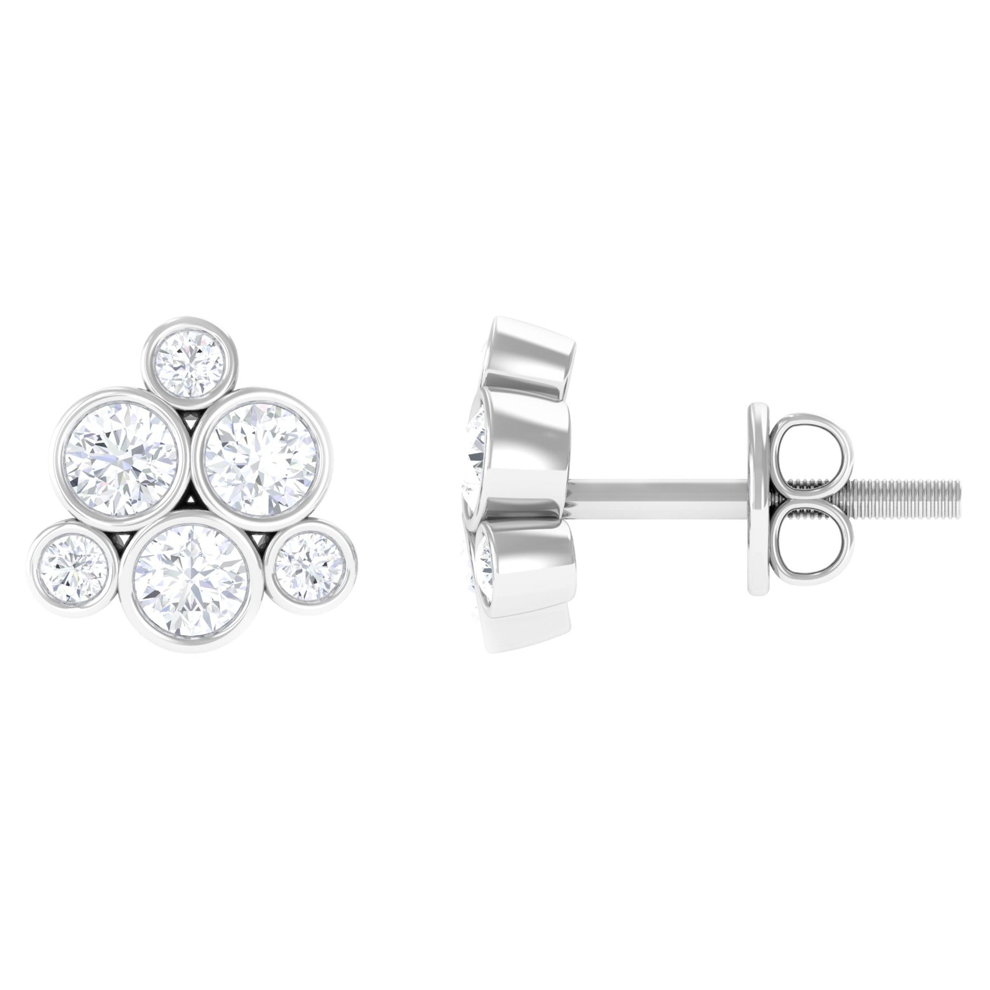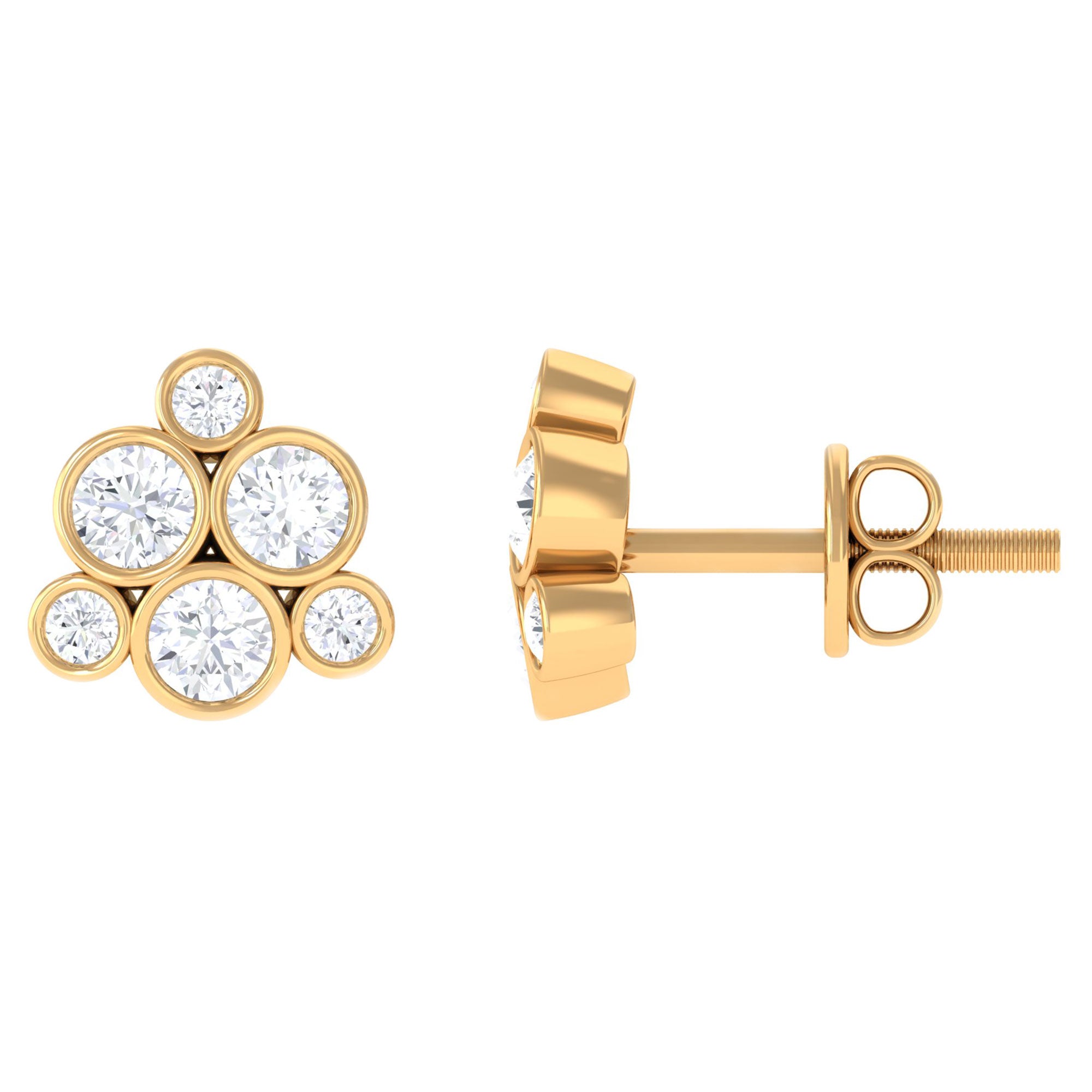 1/2 CT Bezel Set Diamond Cluster Stud Earrings