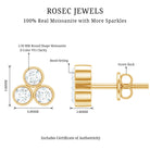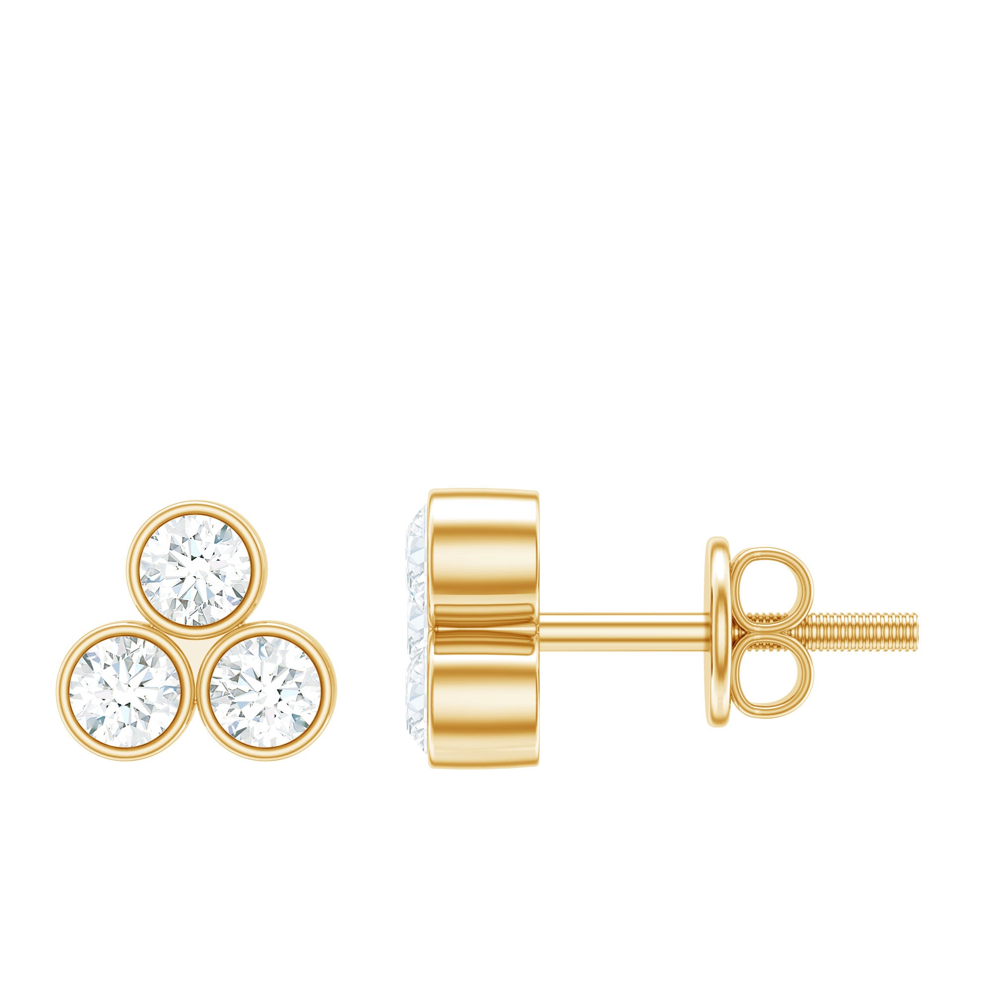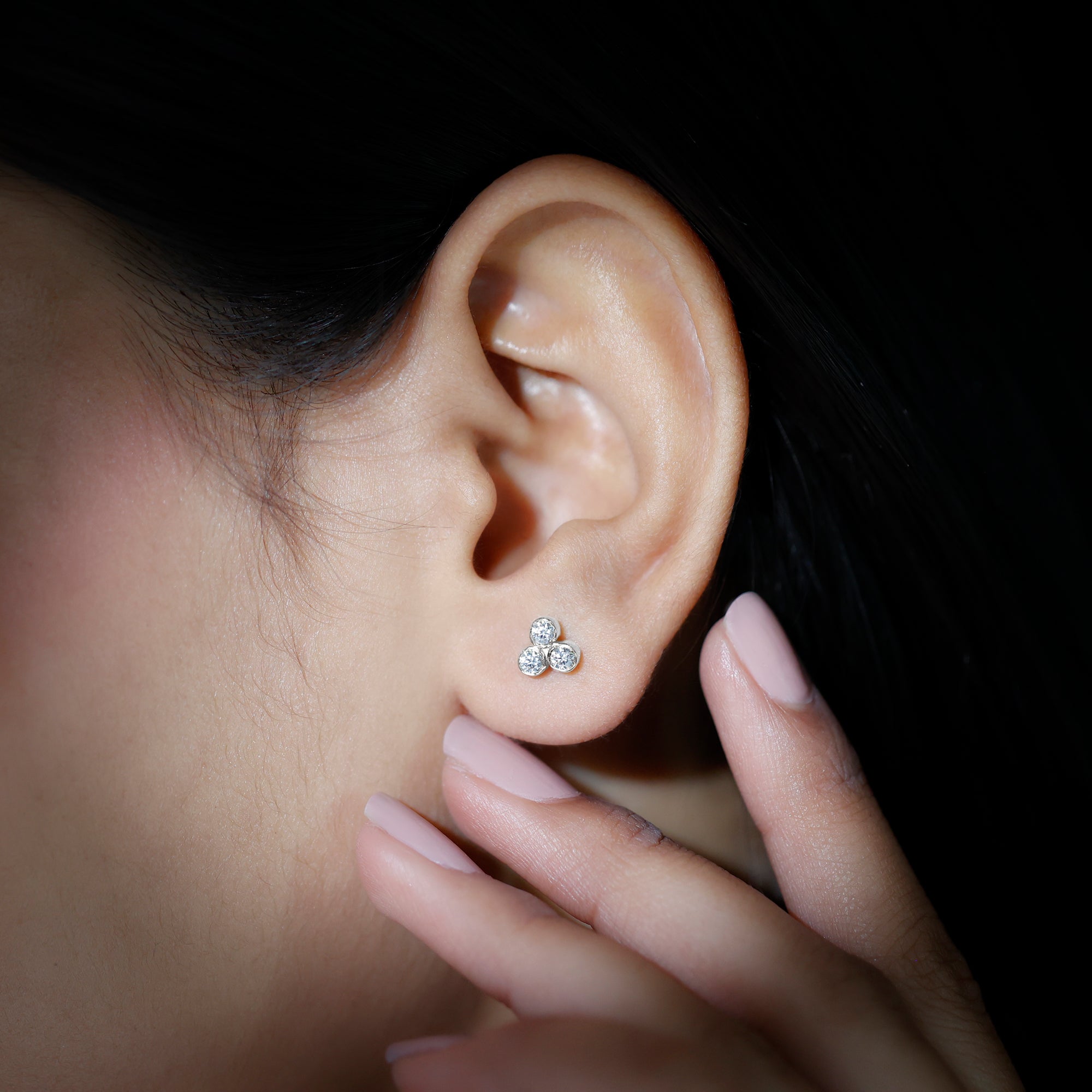 1/2 CT Bezel Set Round Cut Moissanite Three Stone Stud Earrings