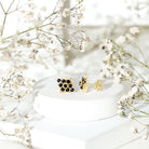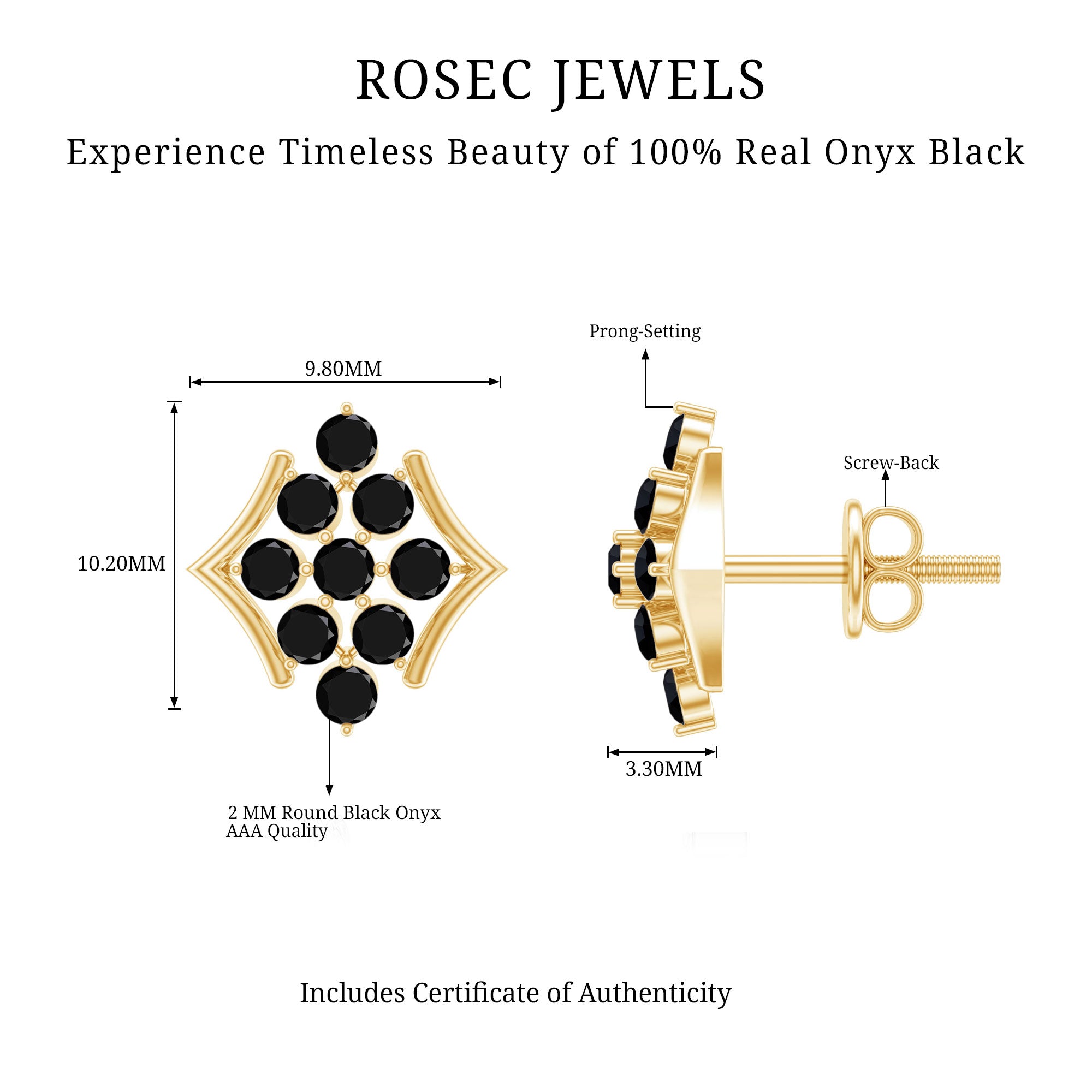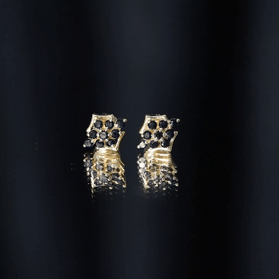 These Floral Cluster Earrings are a statement in its own, crafted with Solid Gold and adorned with Black Onyx these Cluster Stud Earrings are a classic choice for special occasions.