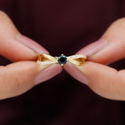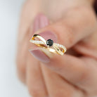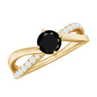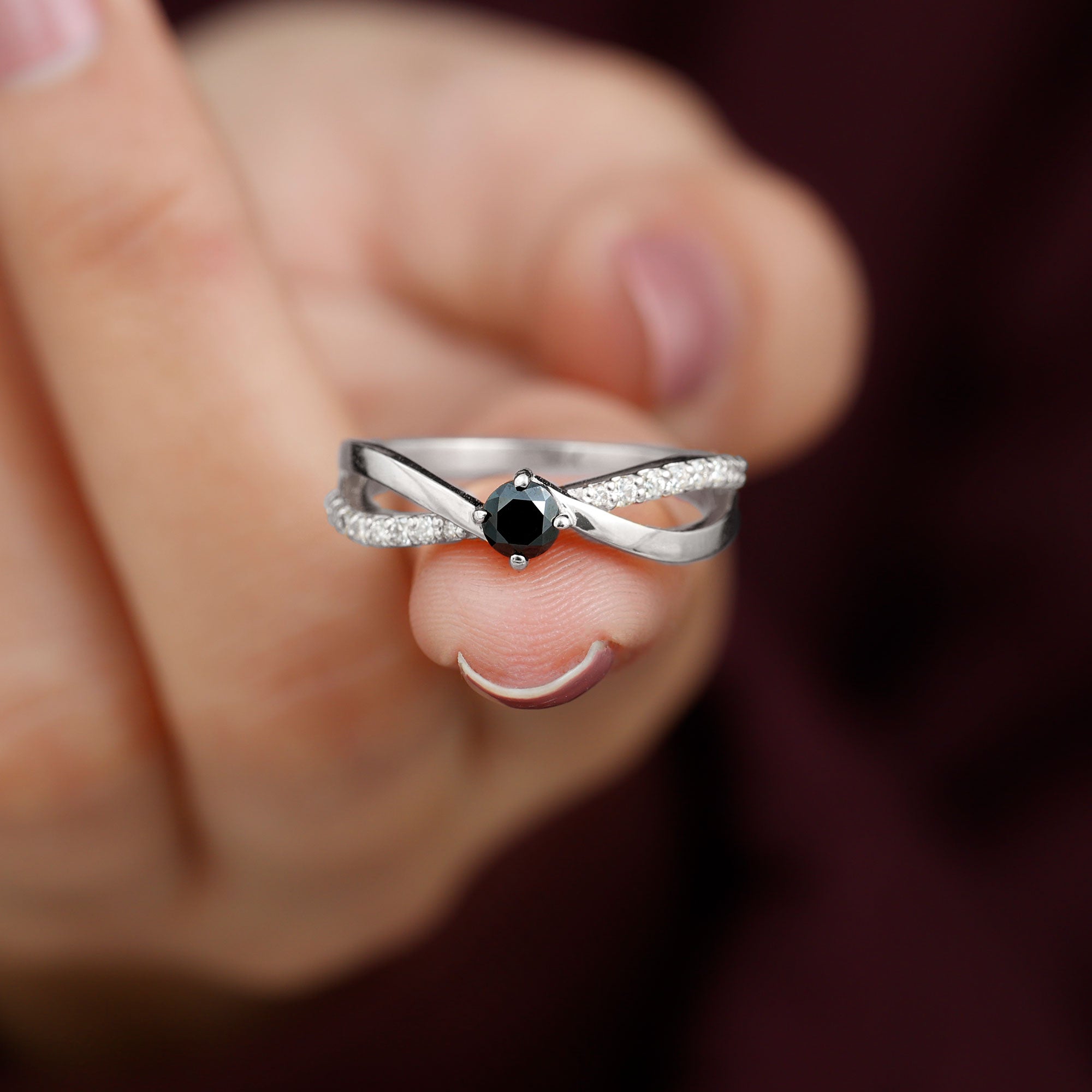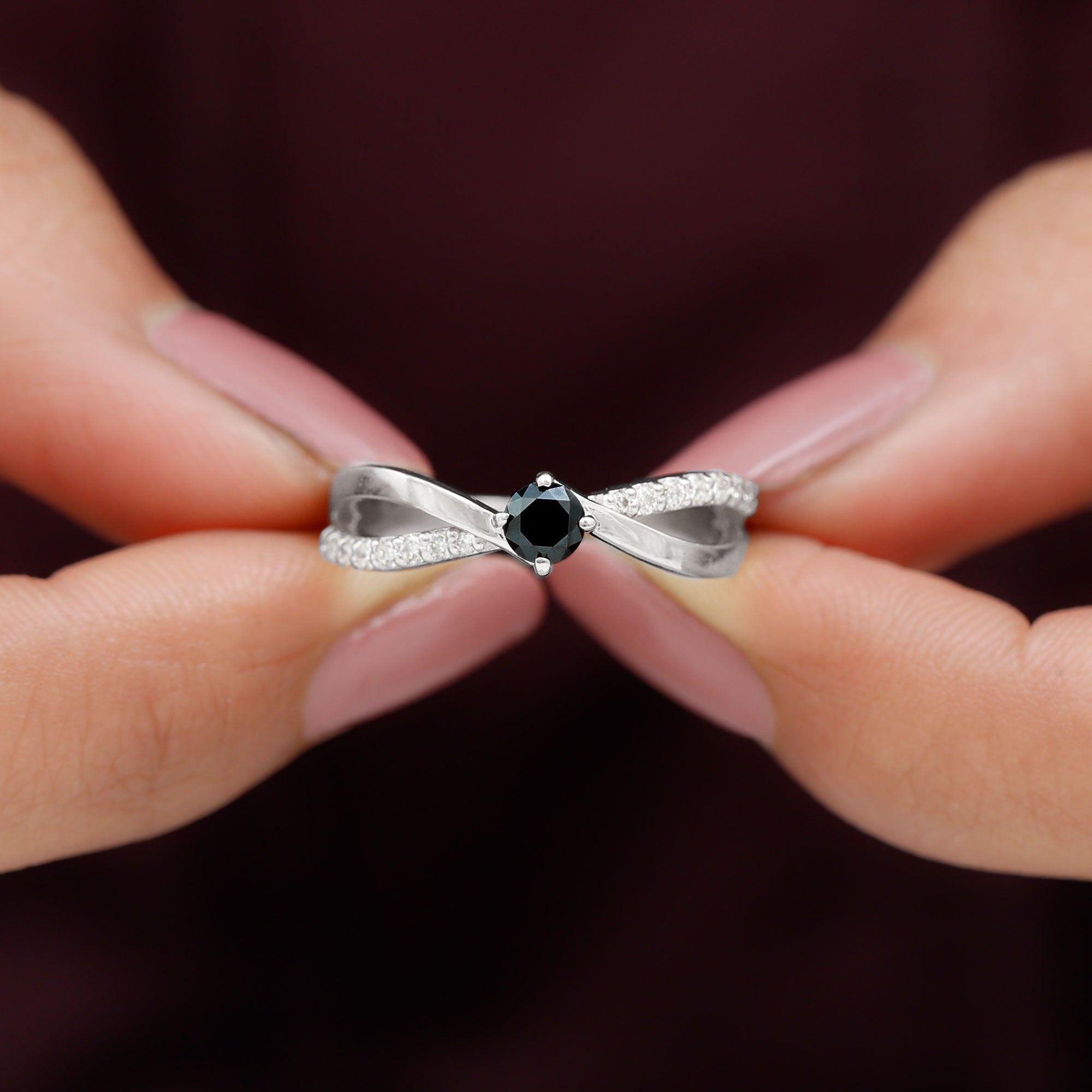 1/2 CT Black Spinel Solitaire and Diamond Infinity Ring
